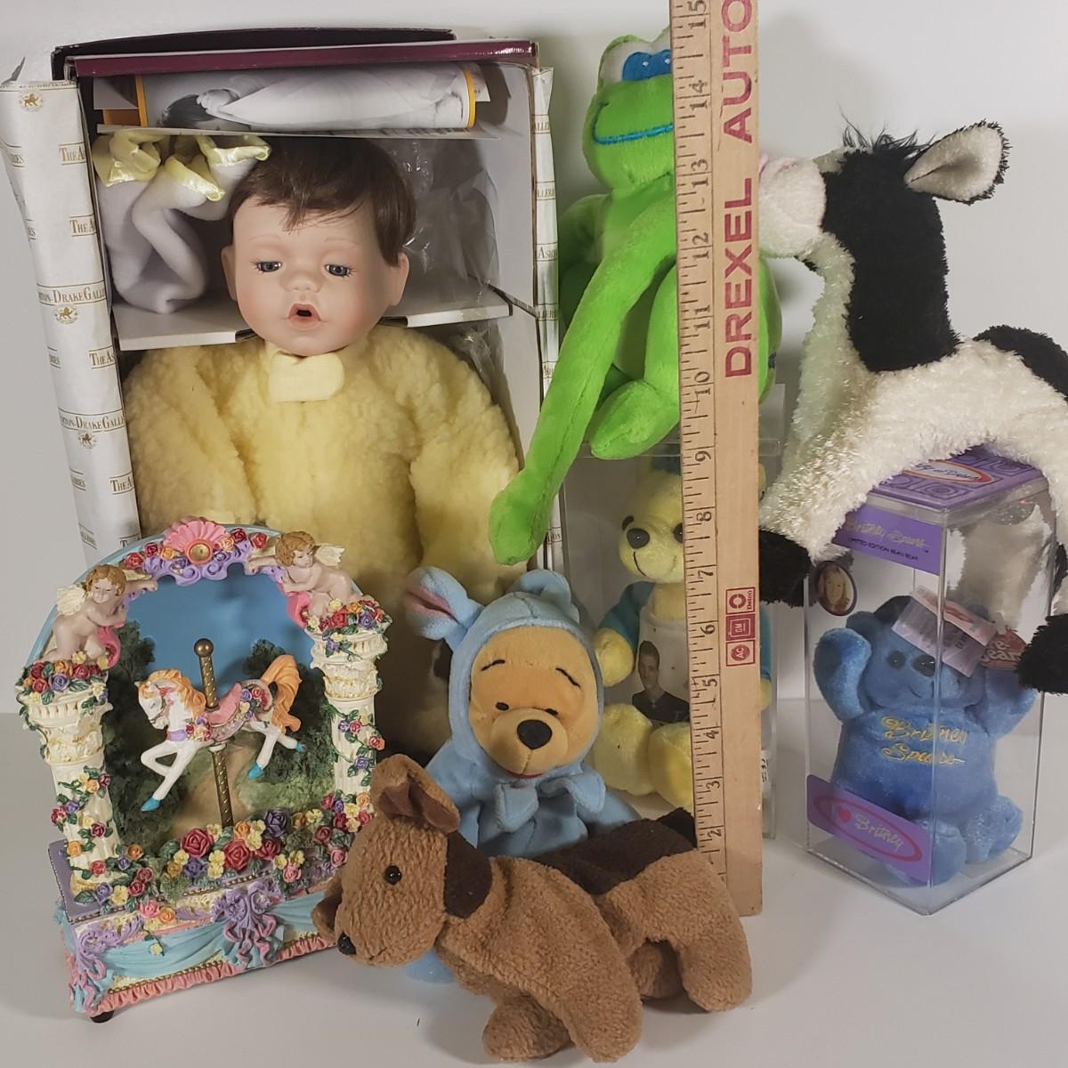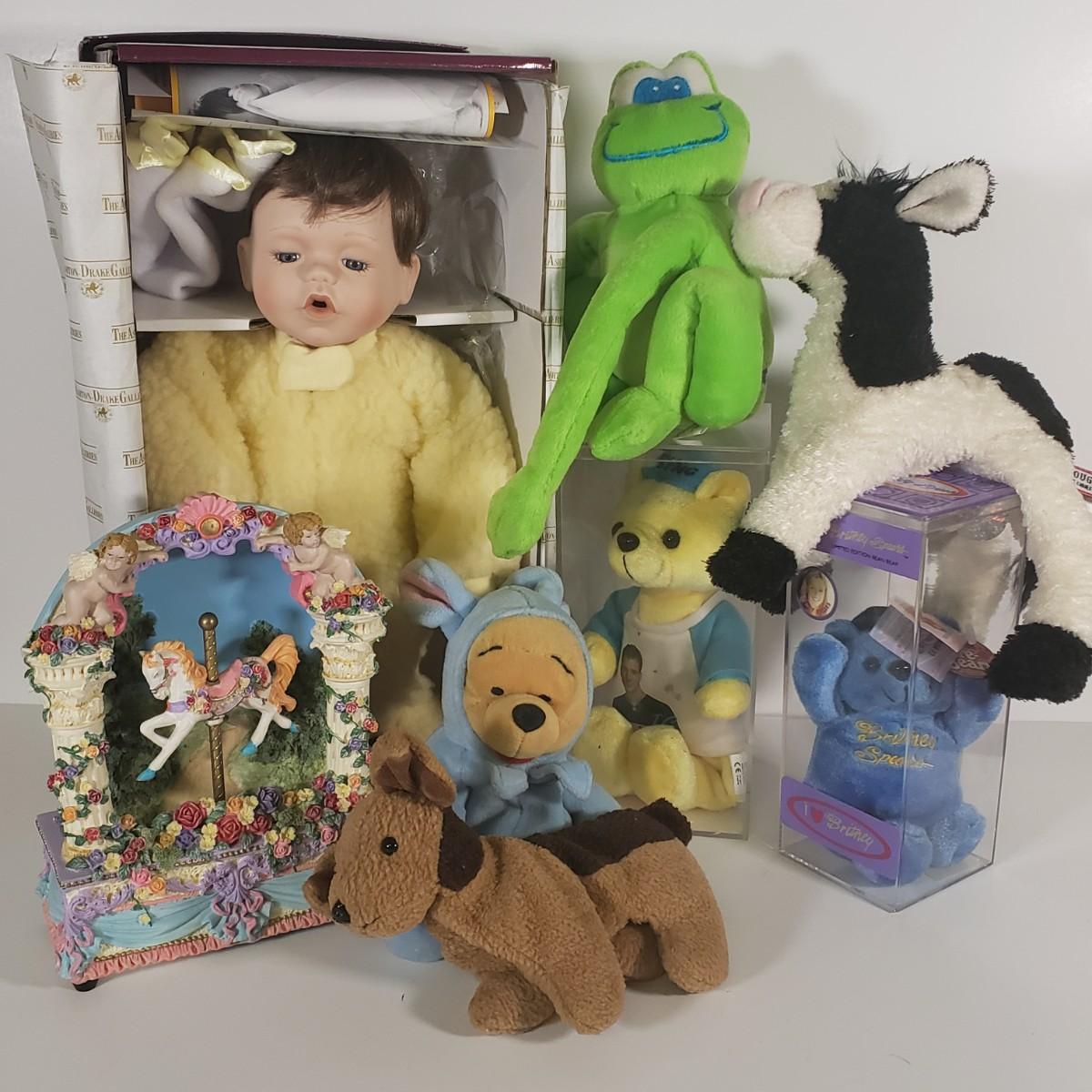 LOT 113B: Vintage Britney Spears/NSync Bears, Ashton Drake Doll, Carousel Music Box & More