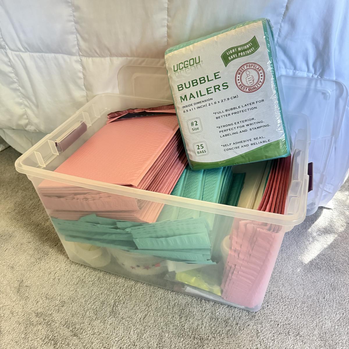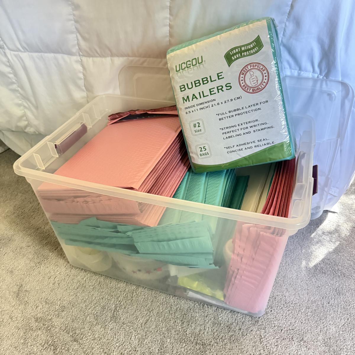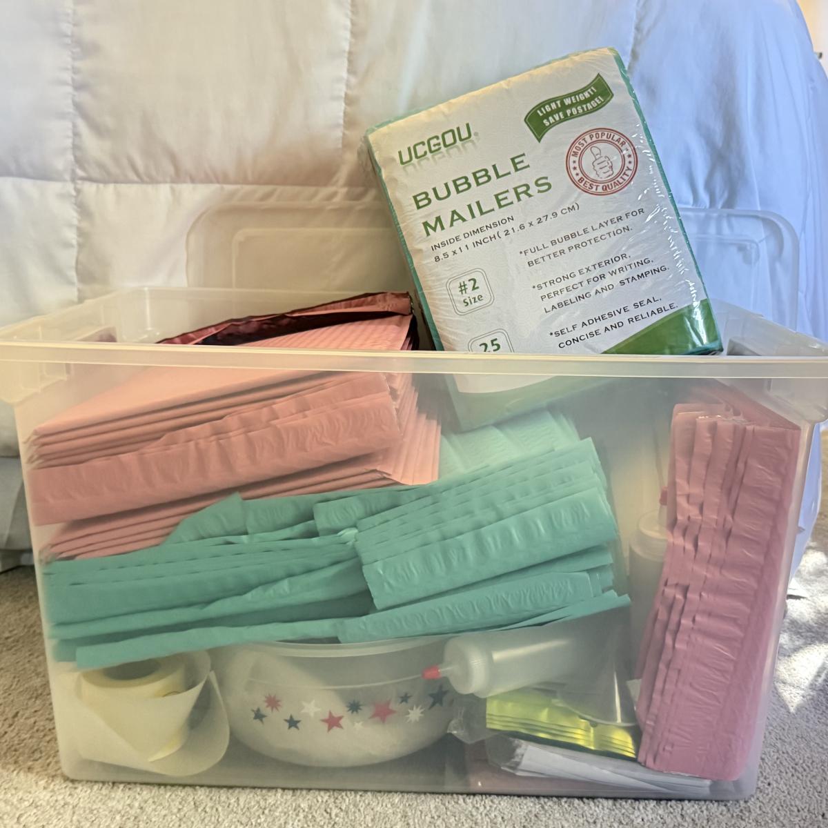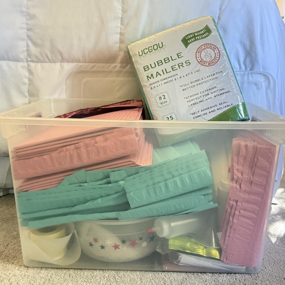 LOT 135U: Bin of Unused Bubble Mailers & Tie Dye Essentials