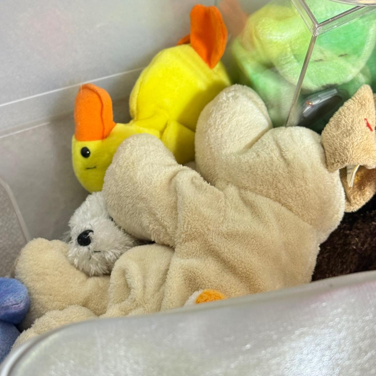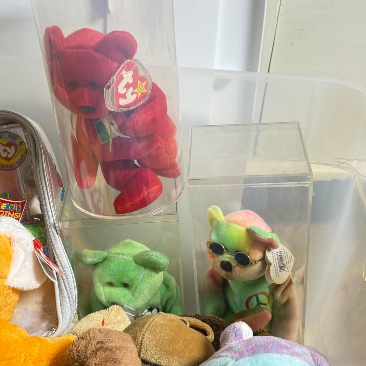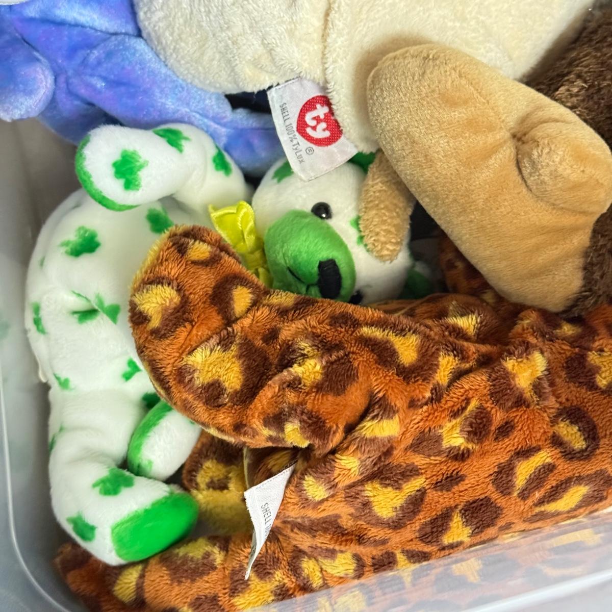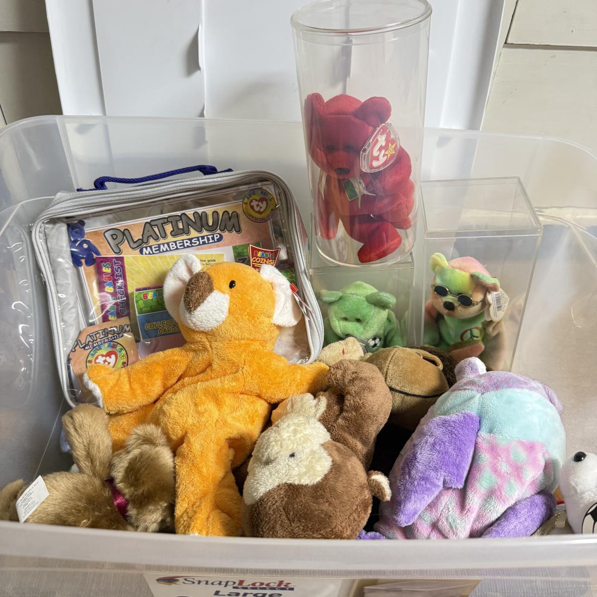 LOT 136B: Bin of Ty Beanie Babies, Big Beanies & Platinum Membership Lunch Box