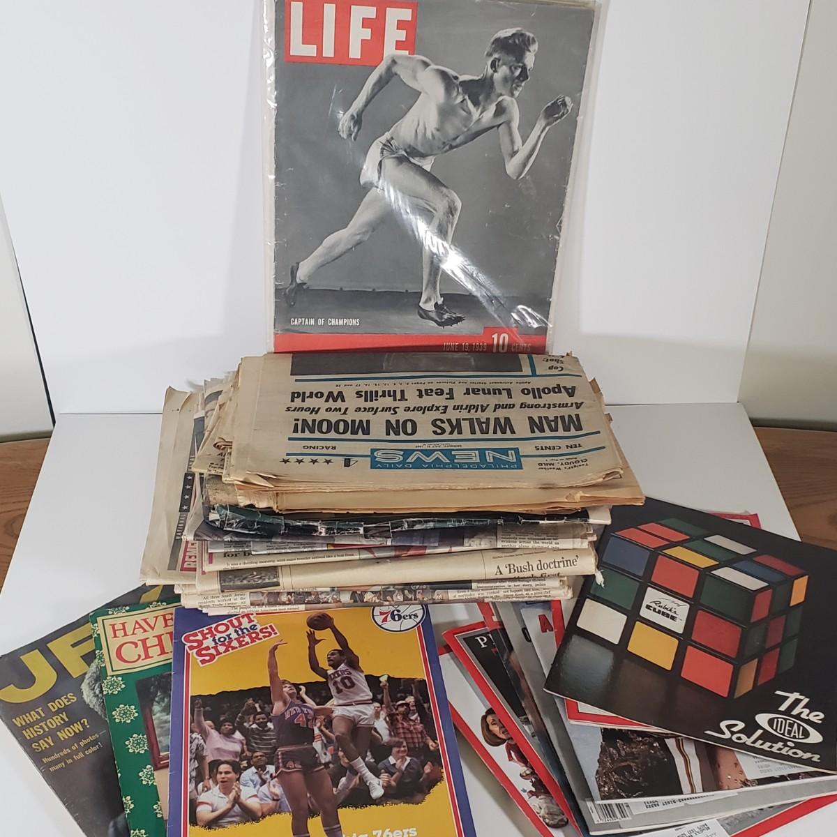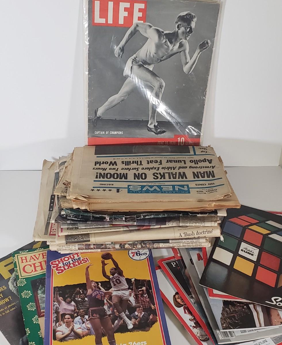 LOT 143B: Historical Newspapers & Magazines with Rubiks Cube Ideal Solution Book