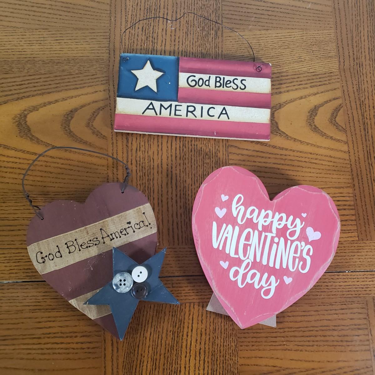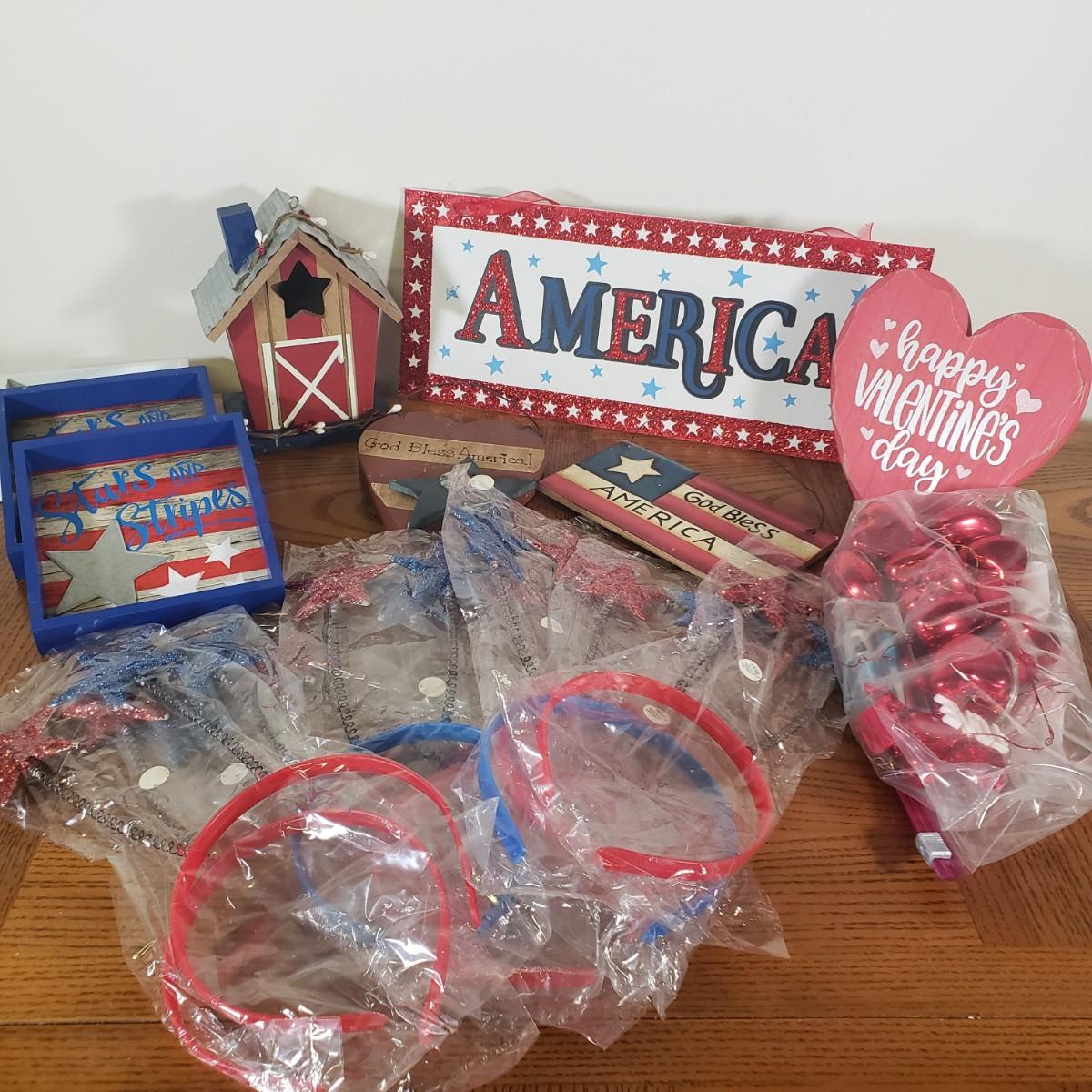 LOT 146B: Rustic Home Decor Assortment for Valentine's & Independence Day