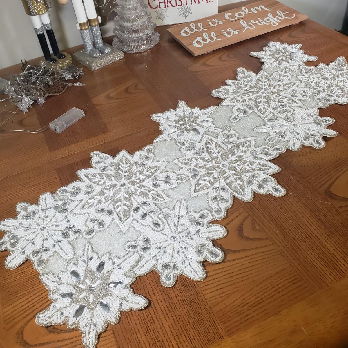 LOT 147B: Winter Wonderland Holiday Decor with Beautiful Beaded Table Runner