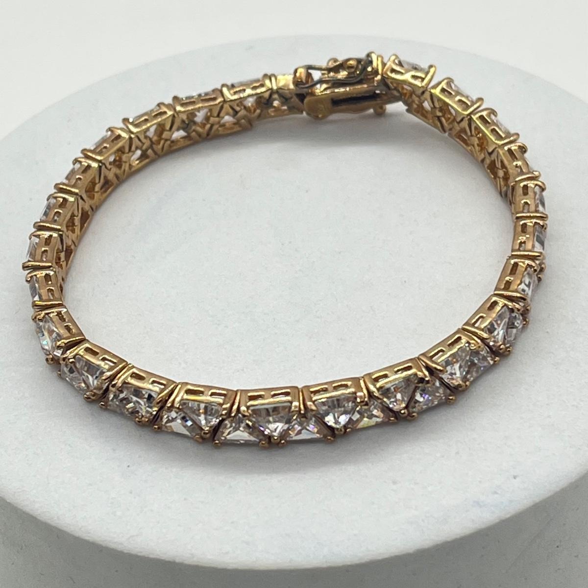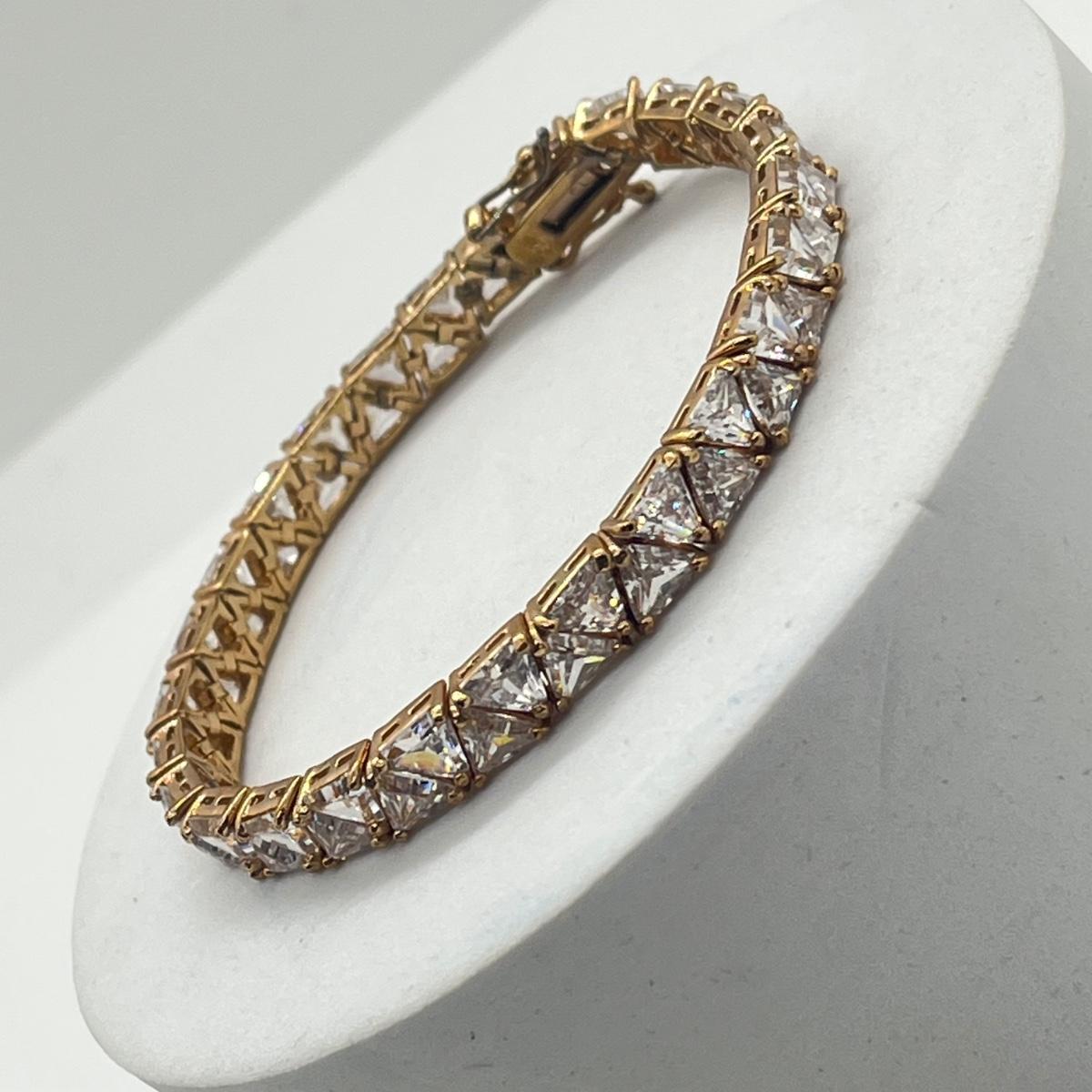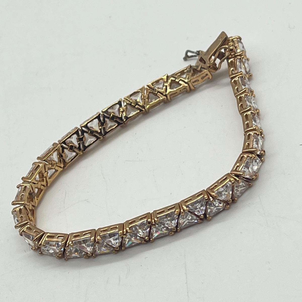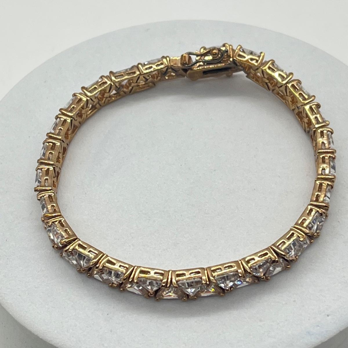 LOT 2: 925 Gold Vermeil 8" Trillion Cut Cubic Zirconia Tennis Bracelet - 26 GTW