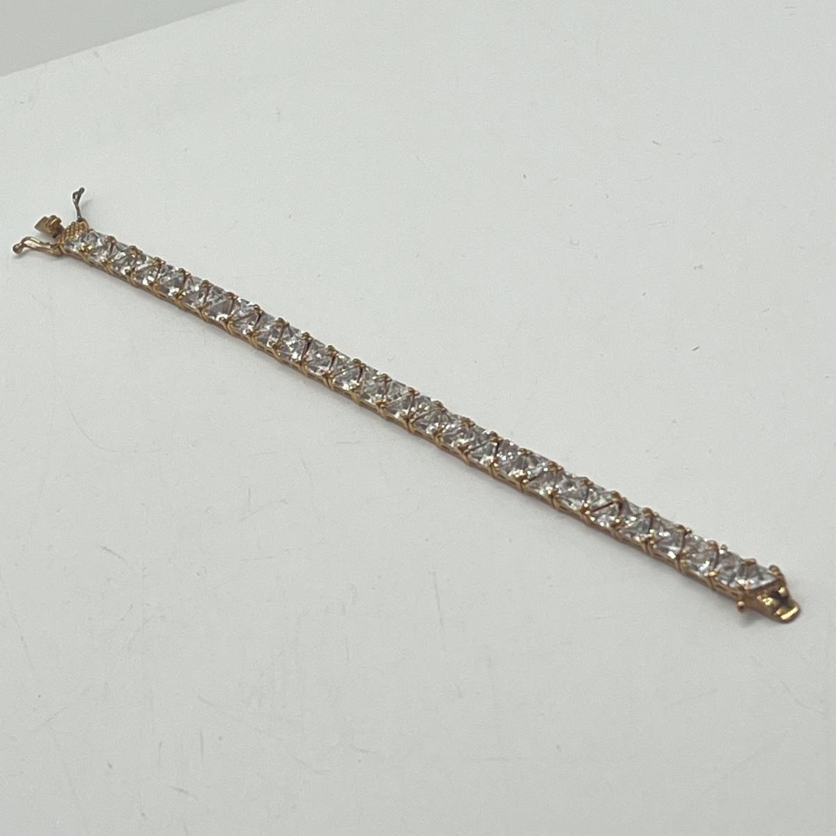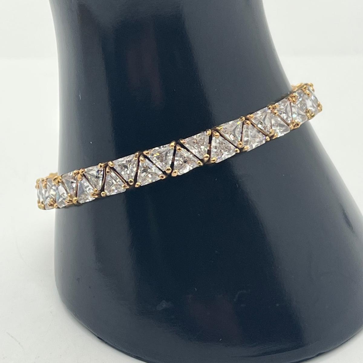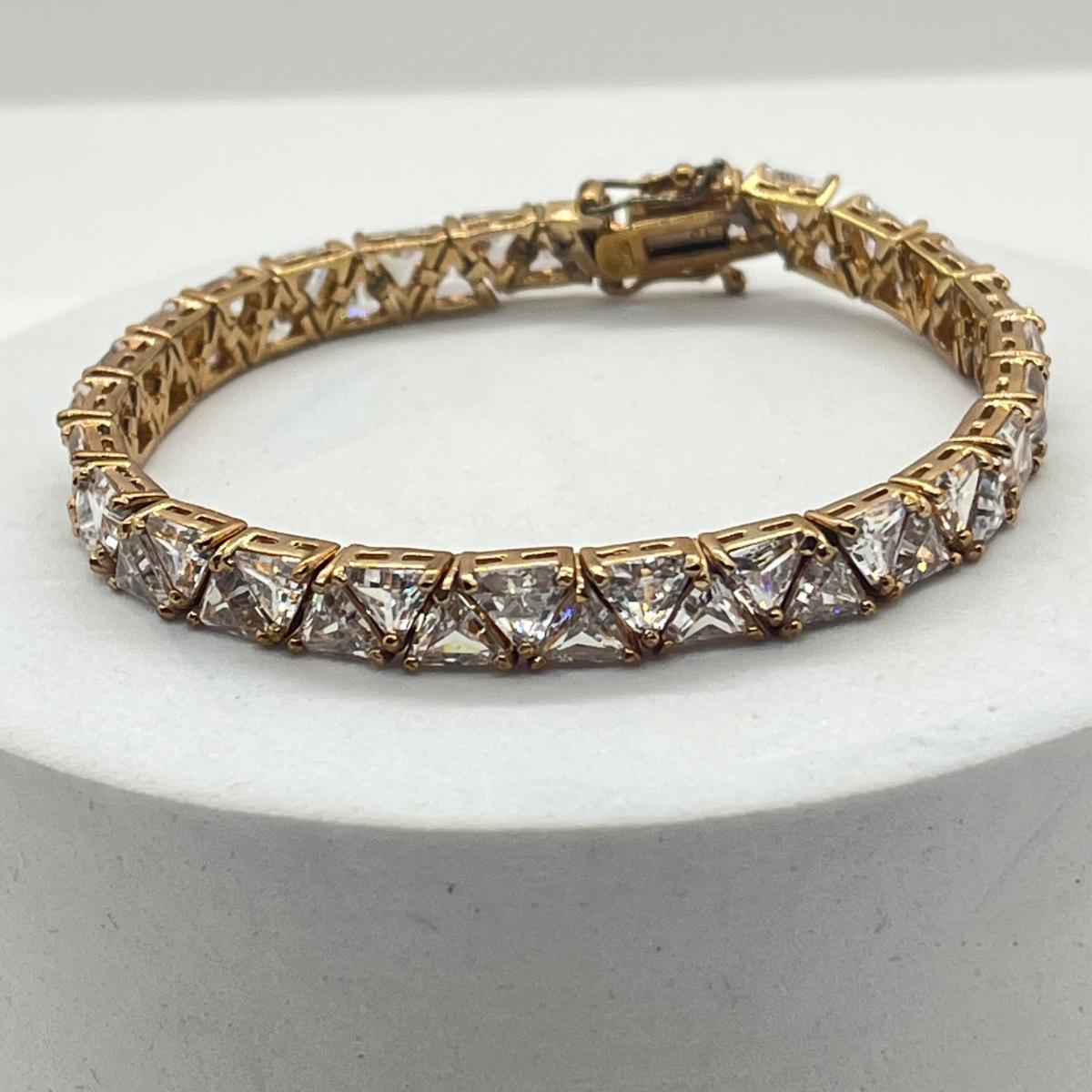 LOT 2: 925 Gold Vermeil 8" Trillion Cut Cubic Zirconia Tennis Bracelet - 26 GTW