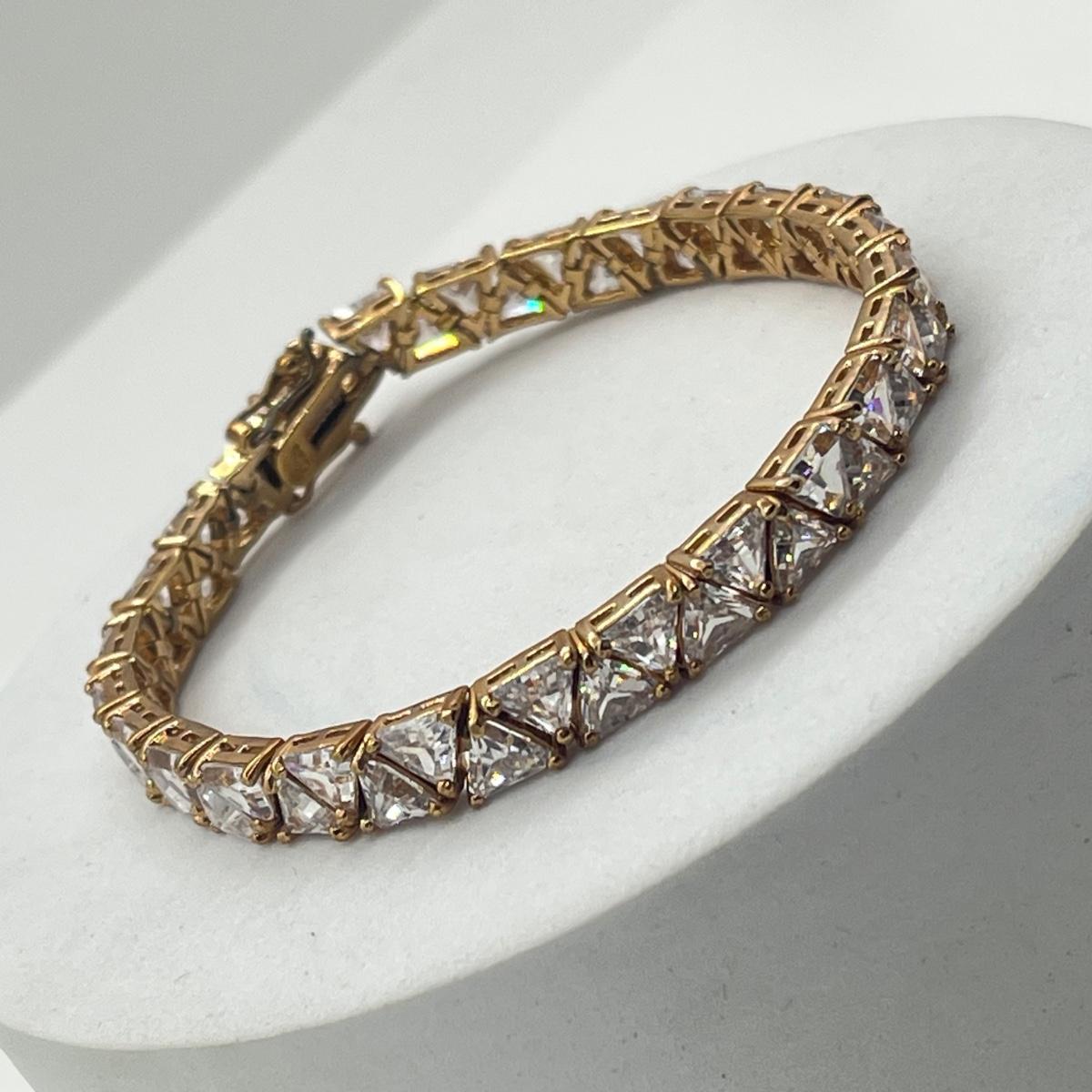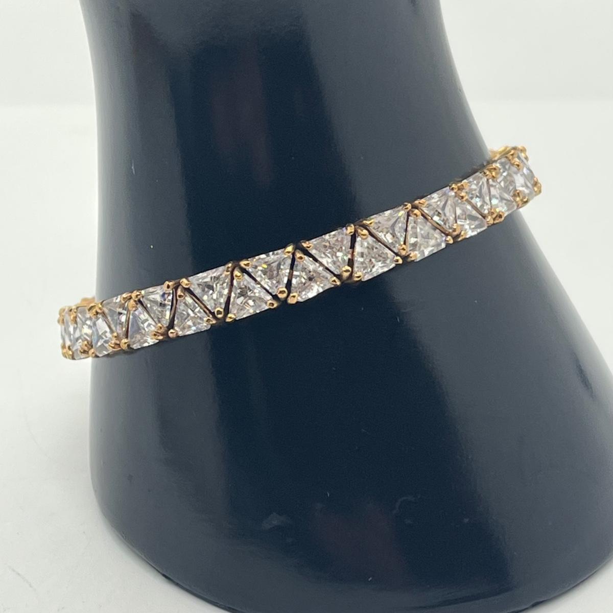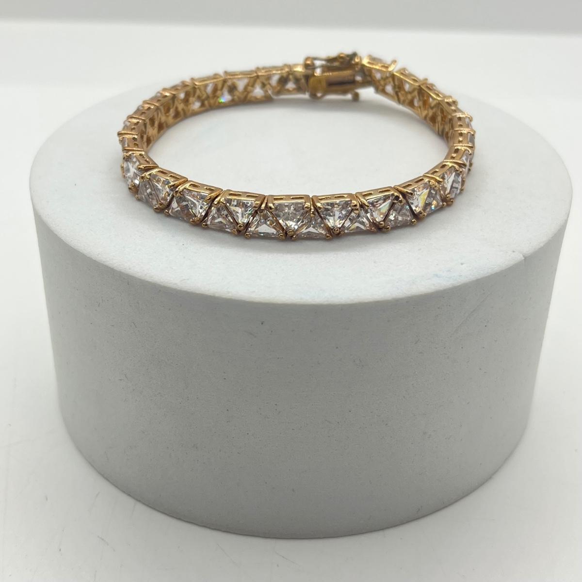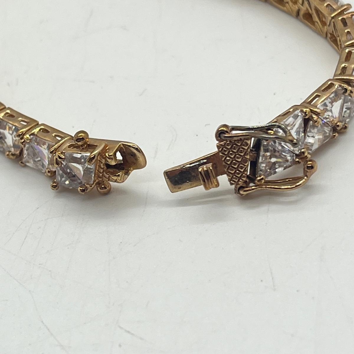 LOT 2: 925 Gold Vermeil 8" Trillion Cut Cubic Zirconia Tennis Bracelet - 26 GTW