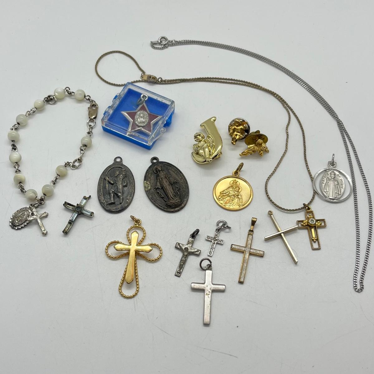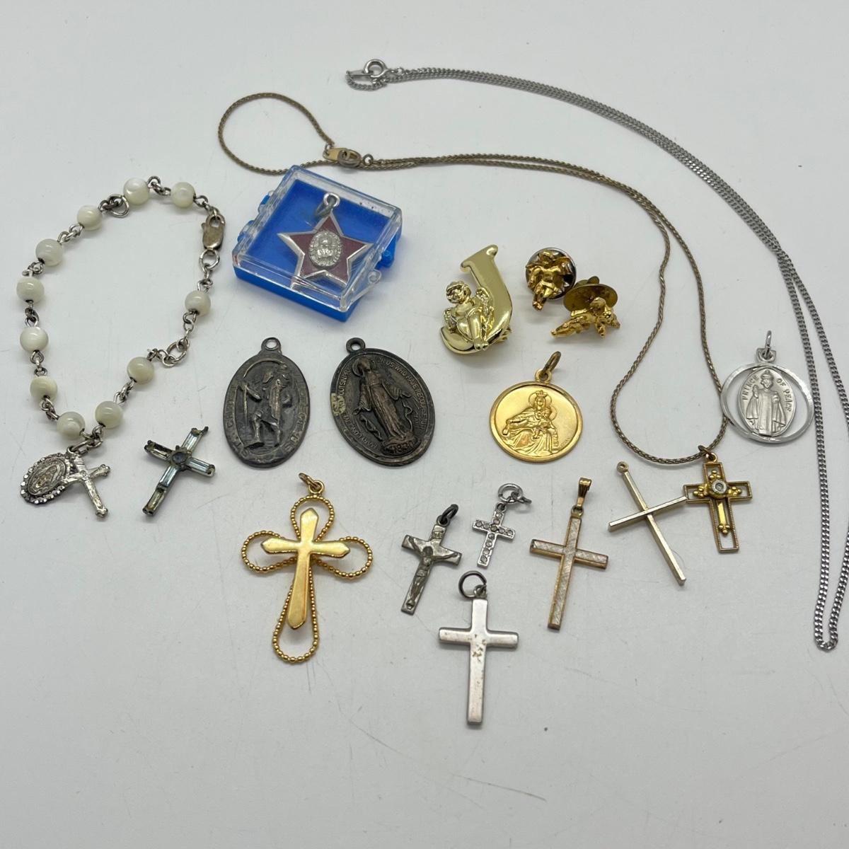 Lot 21: Religious Collection: Crosses, Medals, Prayer Beads and More