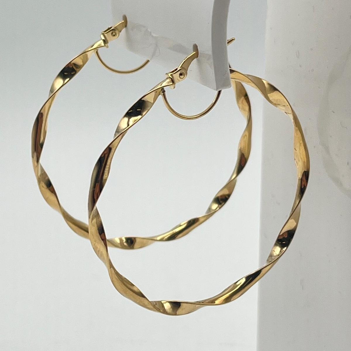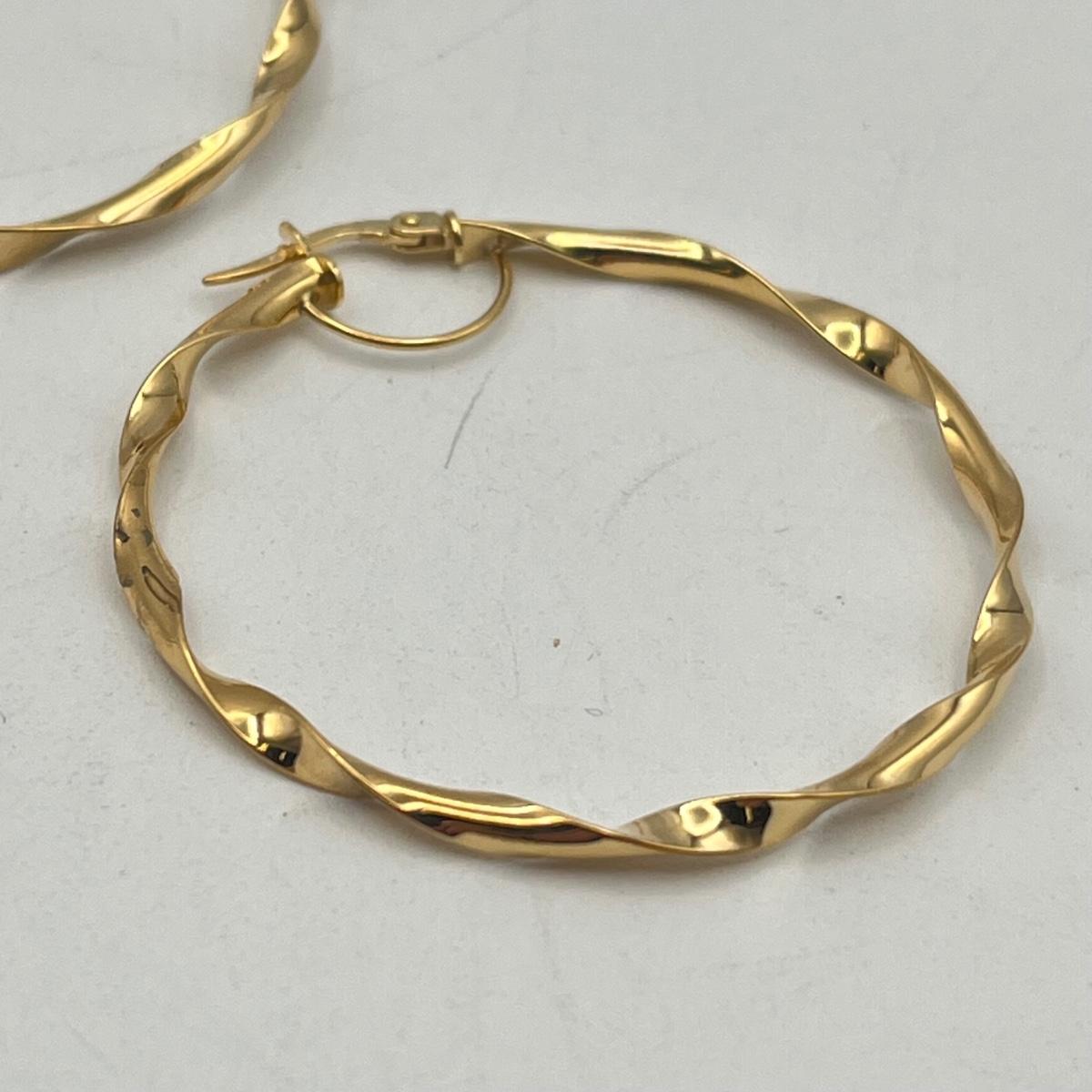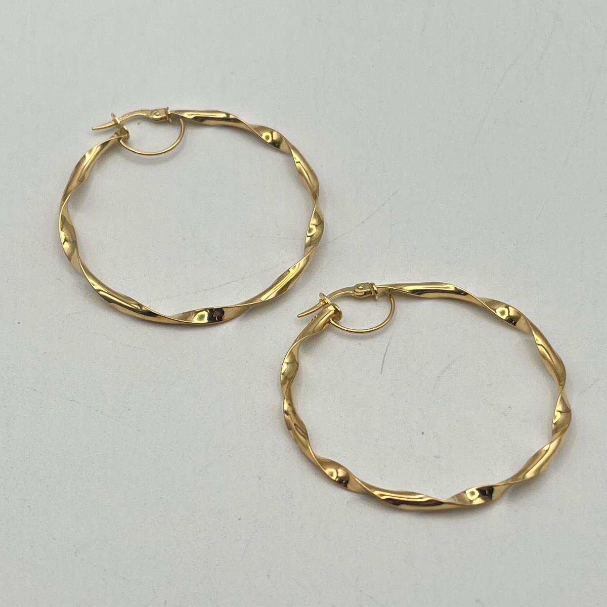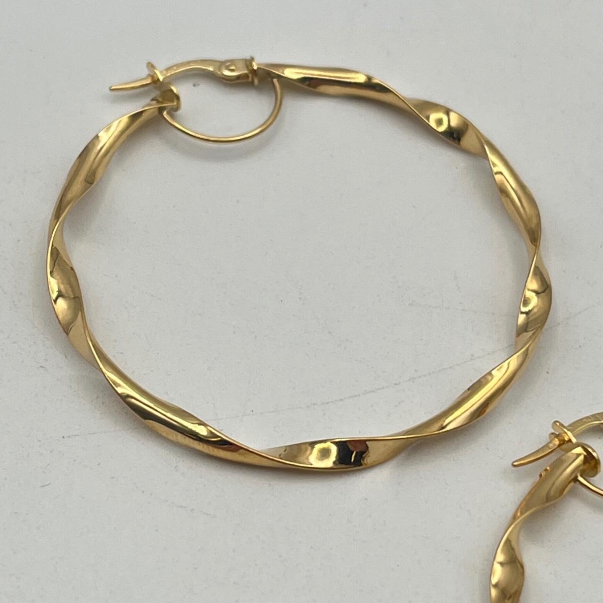 LOT 42: 14K Yellow Gold Twisted Hoop Earrings - 2.3 grams