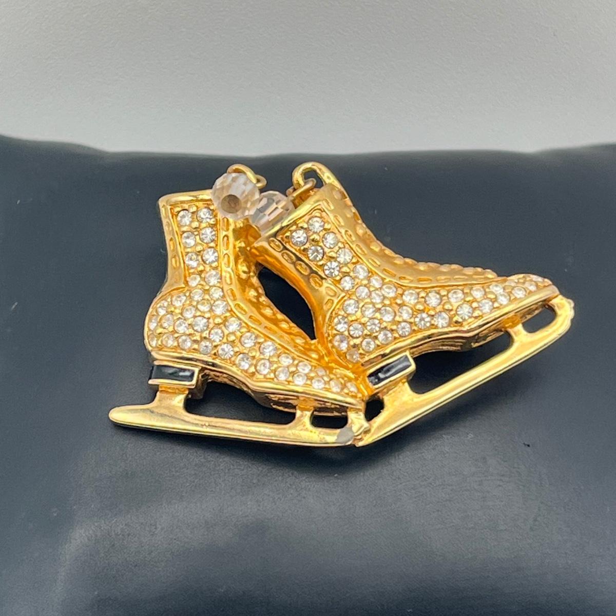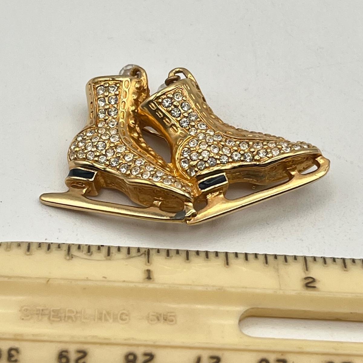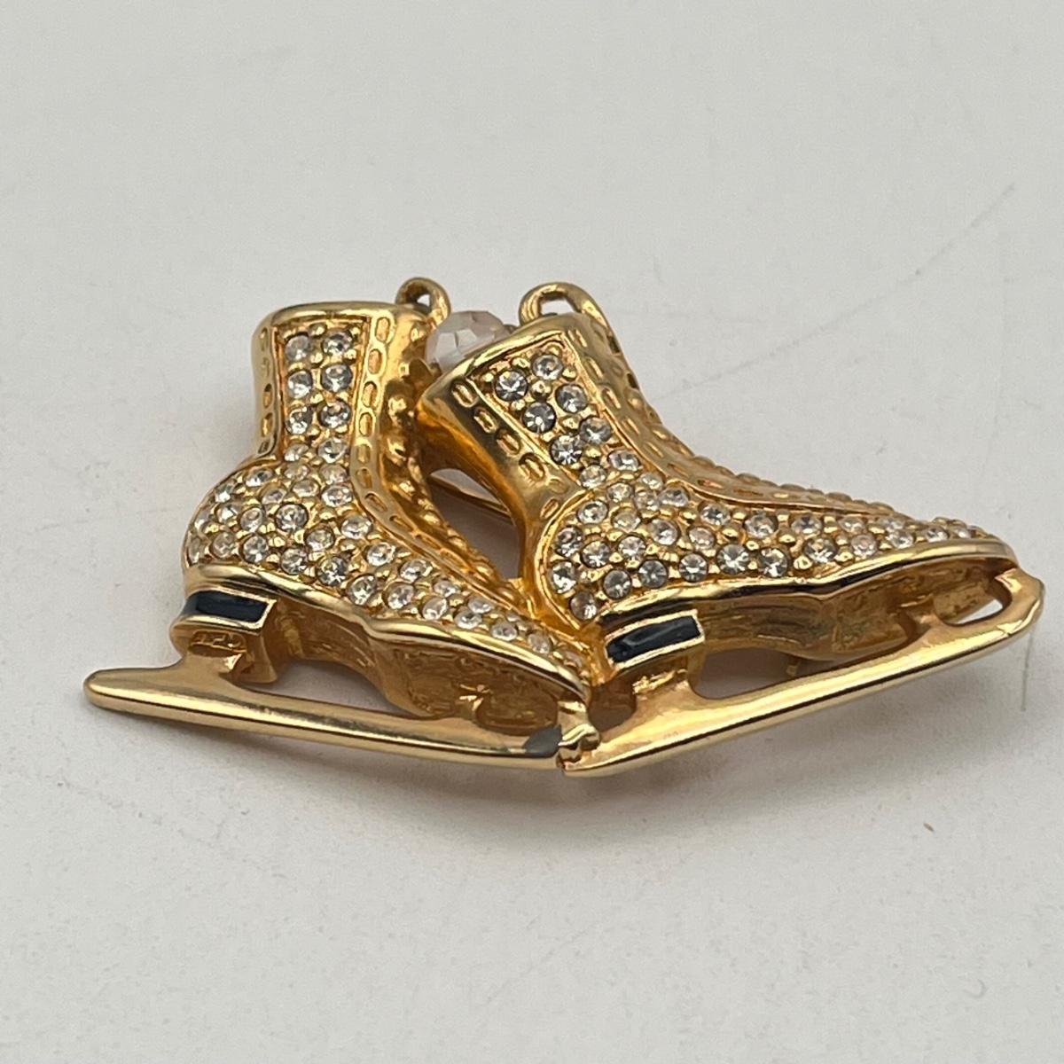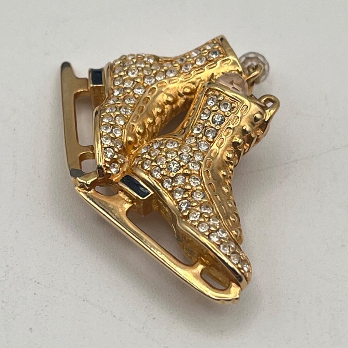 LOT 45: Swarovski Goldtone Pave Crystal Ice Skates Pin