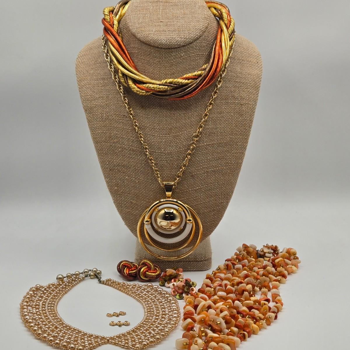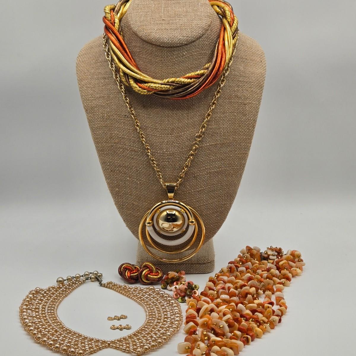 LOT 86: Vintage Rope Necklace with Matching Earrings, Pendant Necklace, Clip Earrings, and More