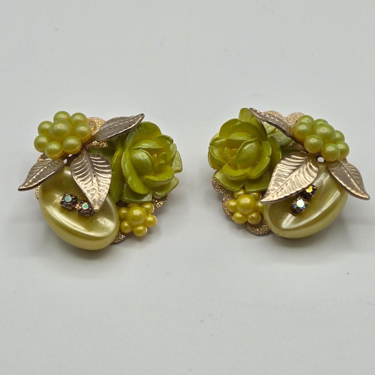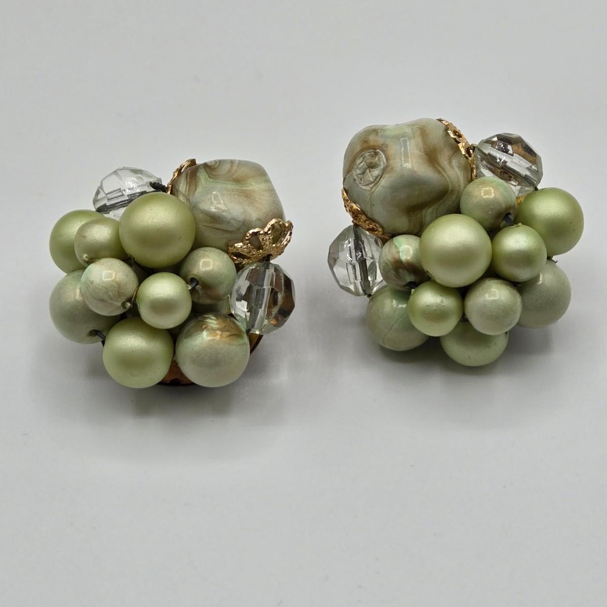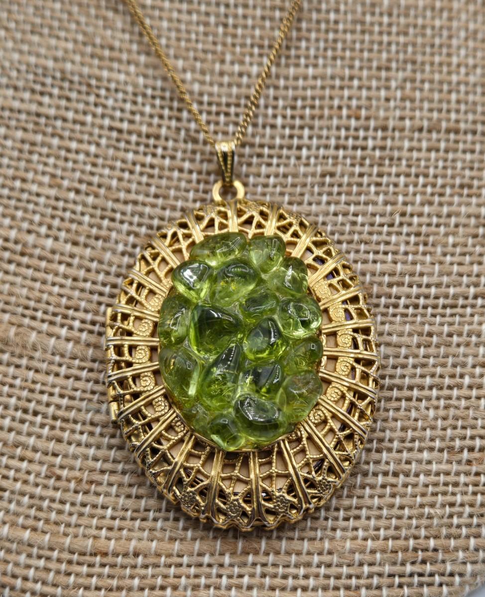 LOT 91: Beautiful Vintage Green Bead Necklace, Gold-tone Chain with Multiple Charms, Clip Earrings, and More