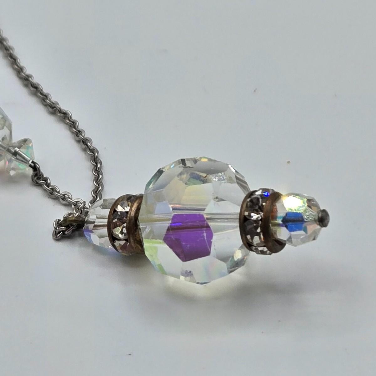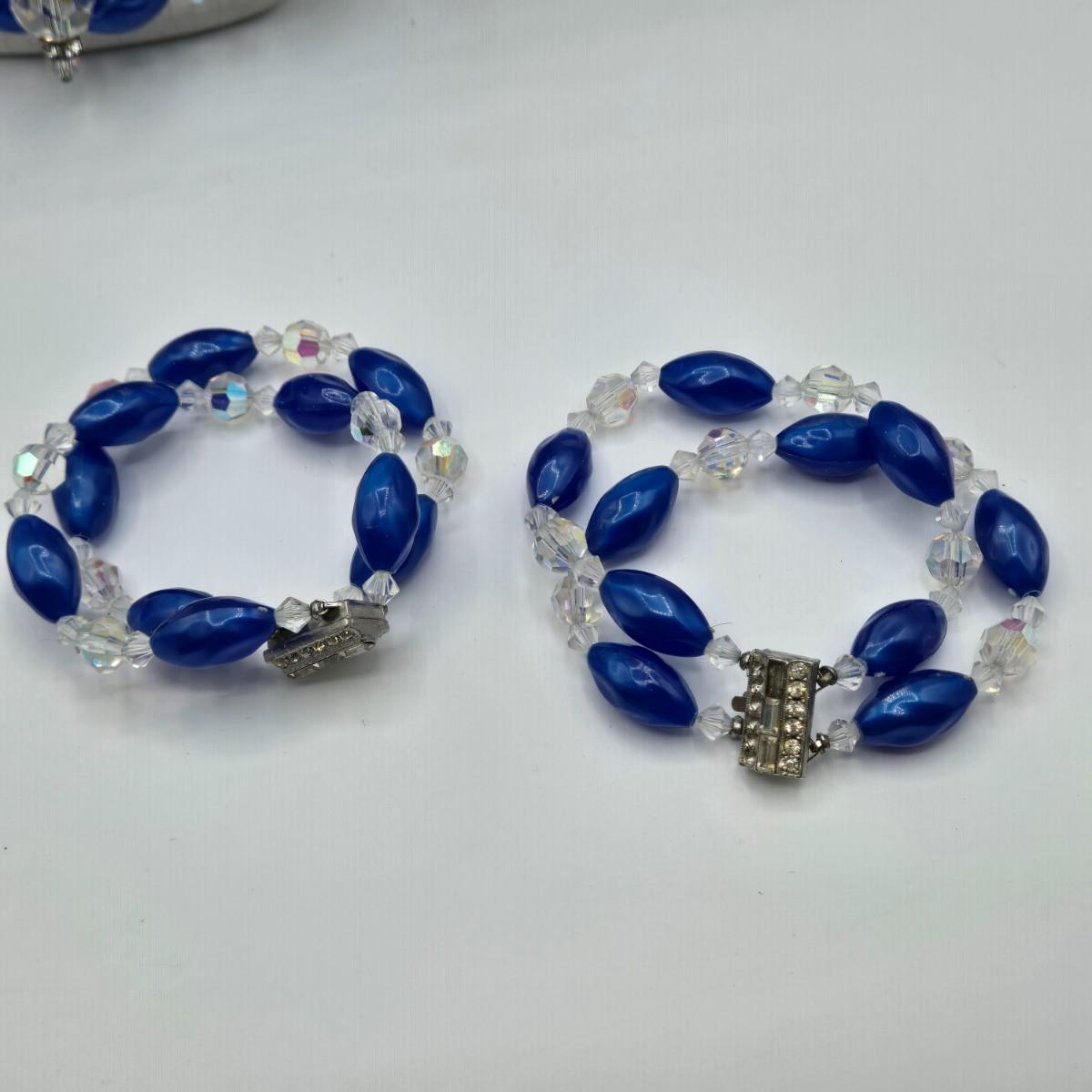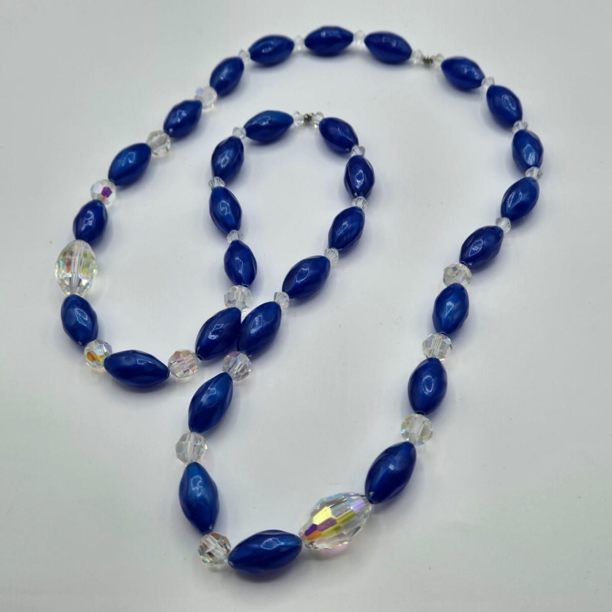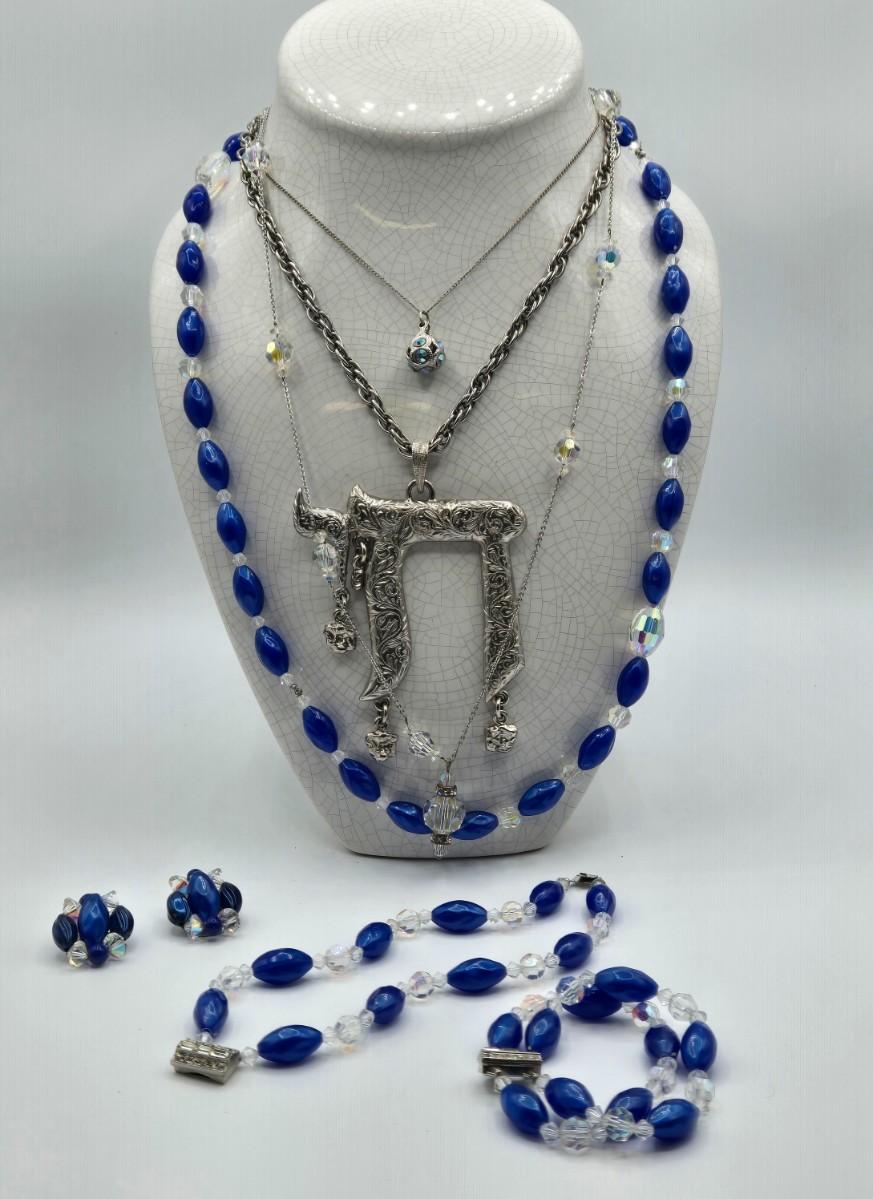LOT 92: Vintage Blue Beaded Necklace with Matching Earrings and Bracelets, Silver-tone Chain Necklace with Large Pendant, and More