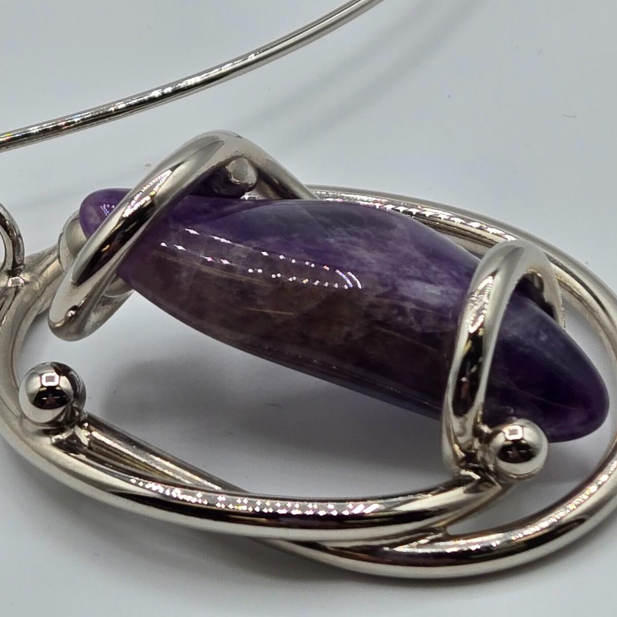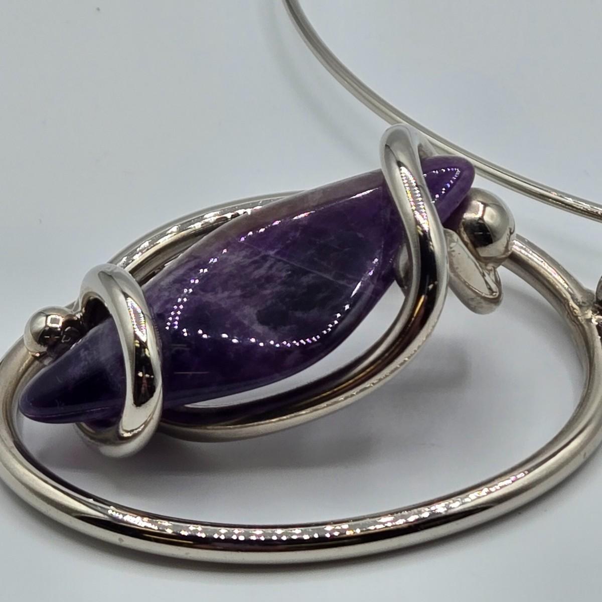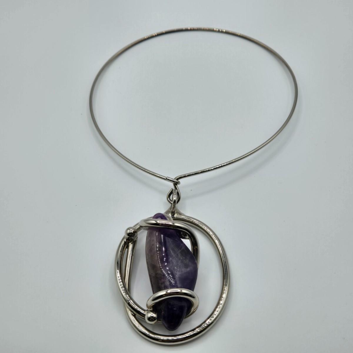 LOT 97: Beautiful Vintage Silver-tone Necklace with Purple Stone