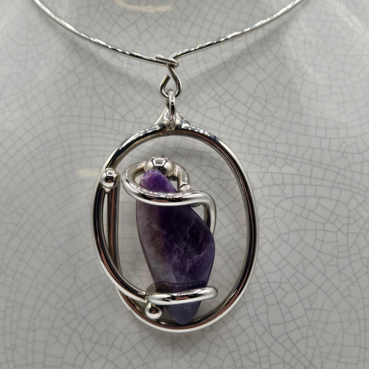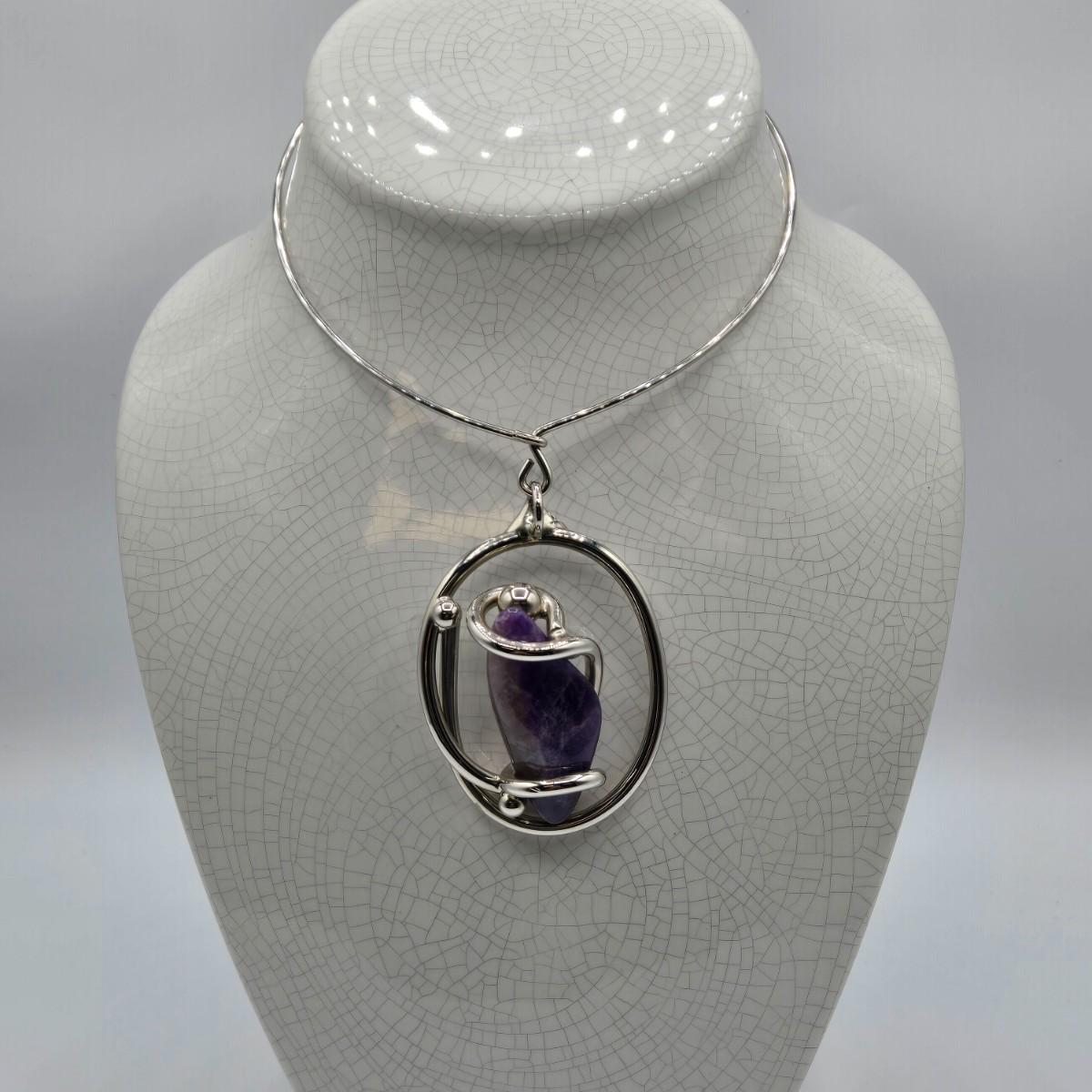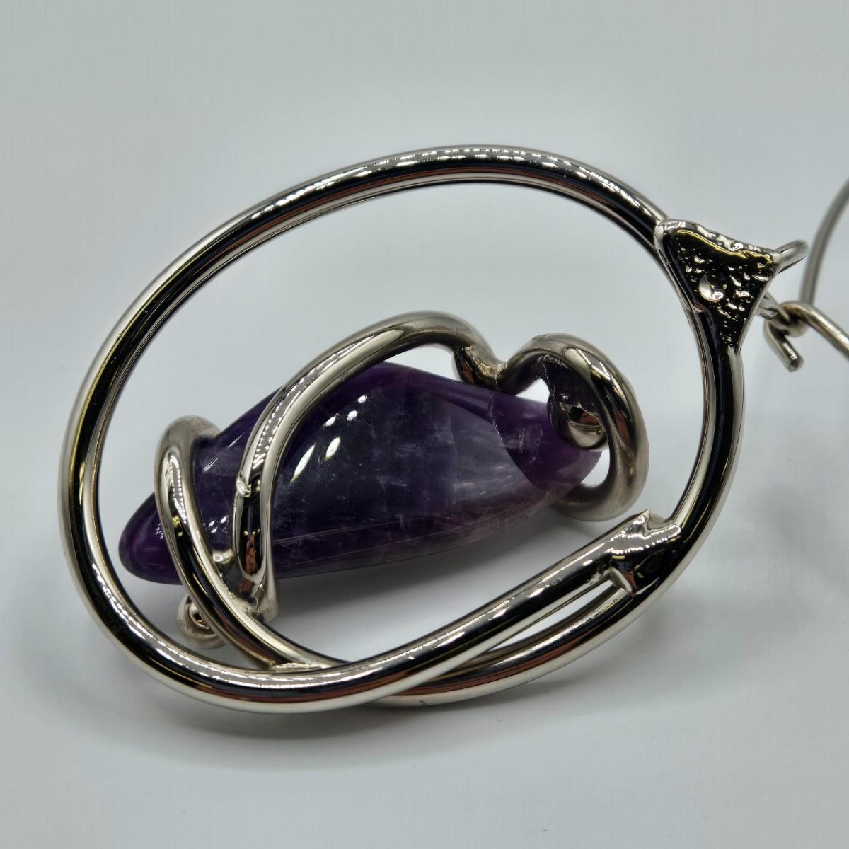 LOT 97: Beautiful Vintage Silver-tone Necklace with Purple Stone