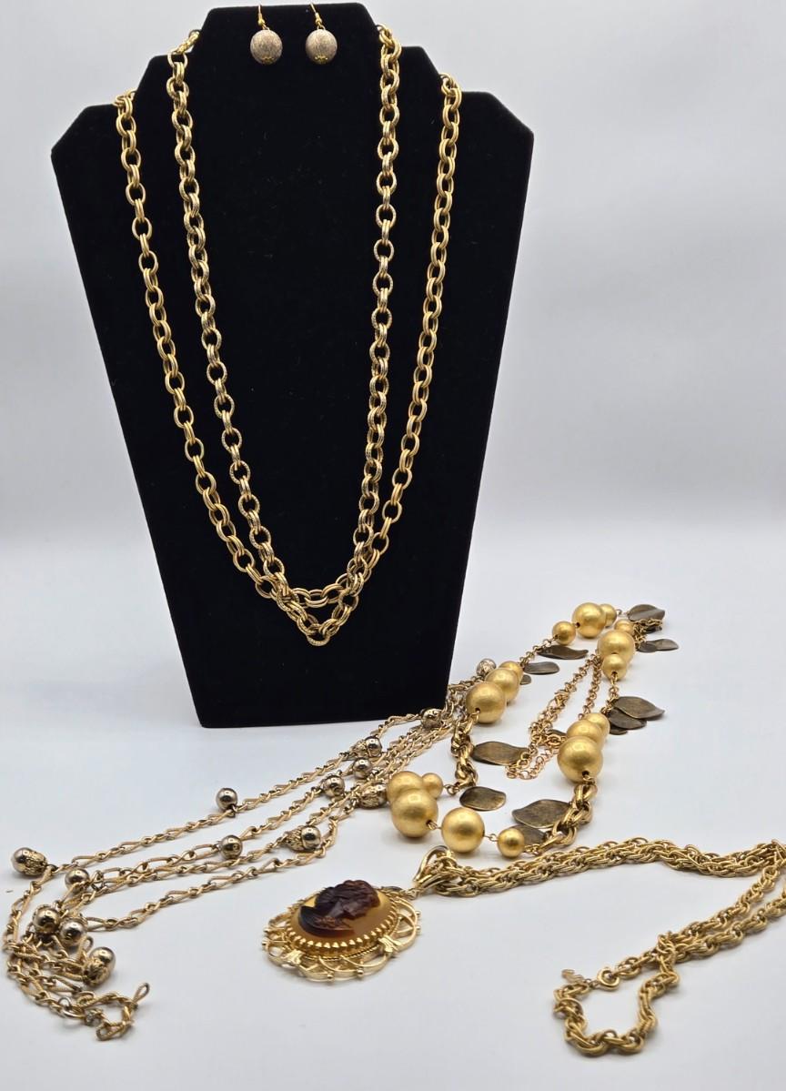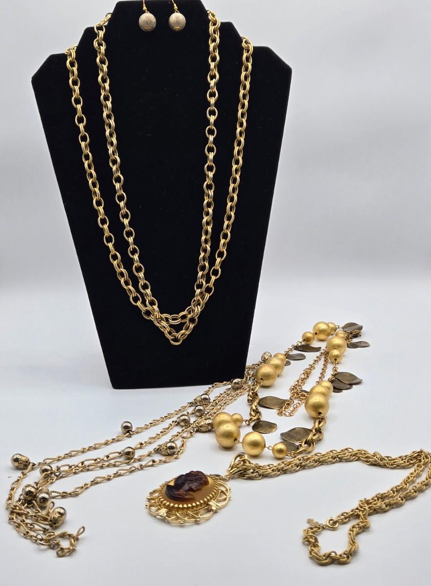 LOT 99: Multiple Gold-tone Necklaces and Chains and Pair of Earrings