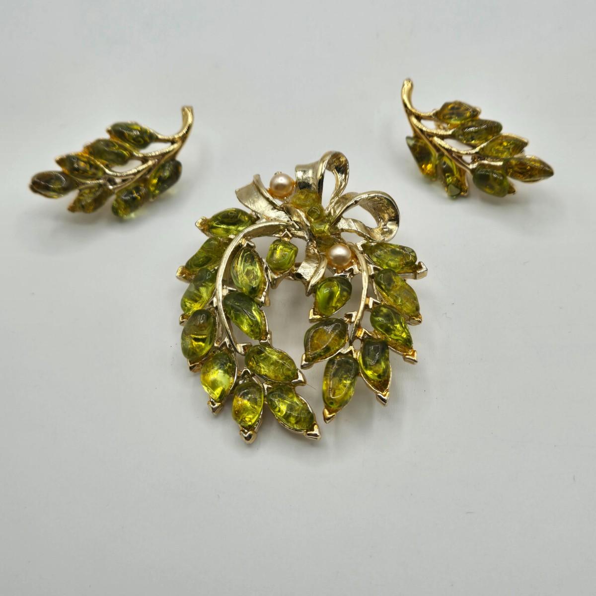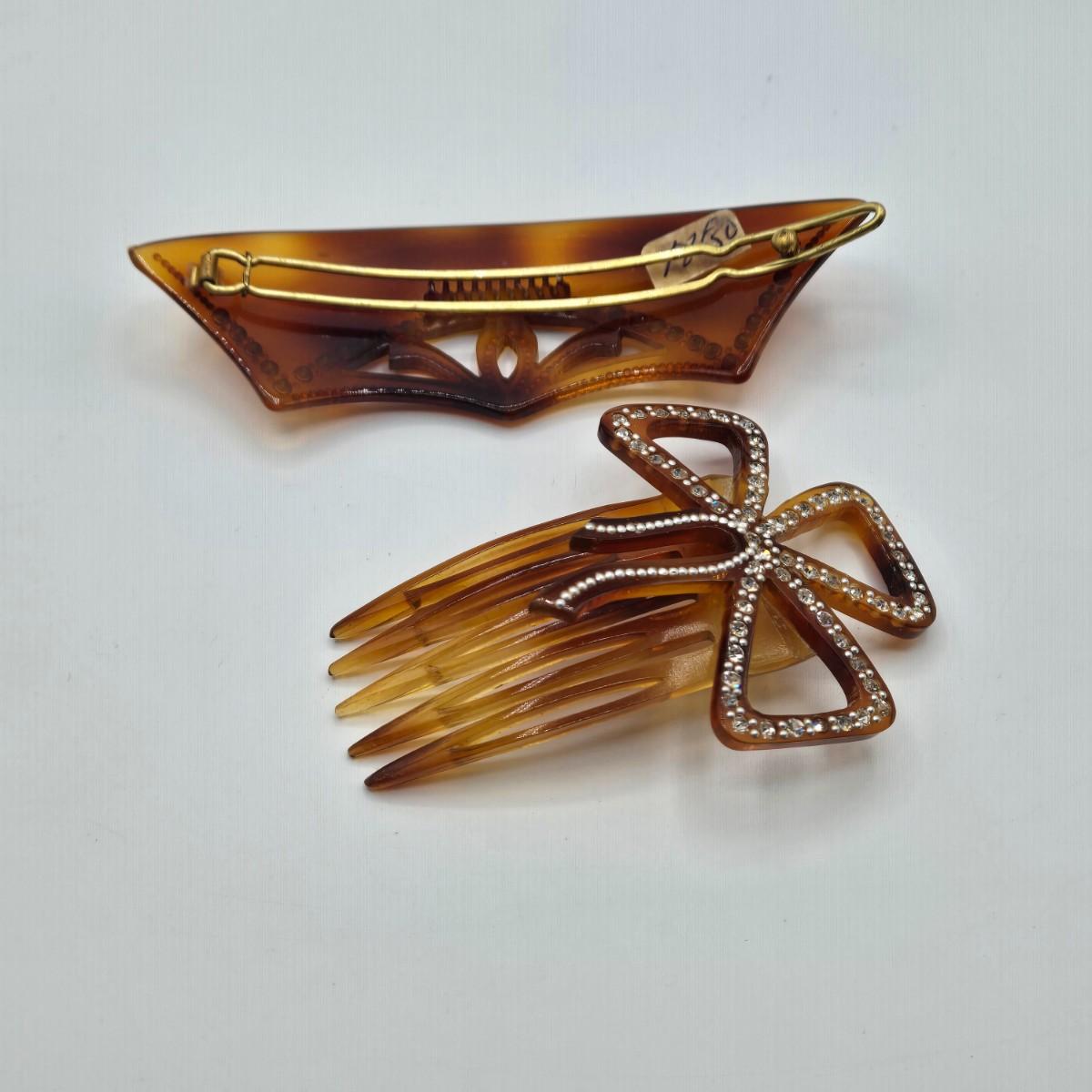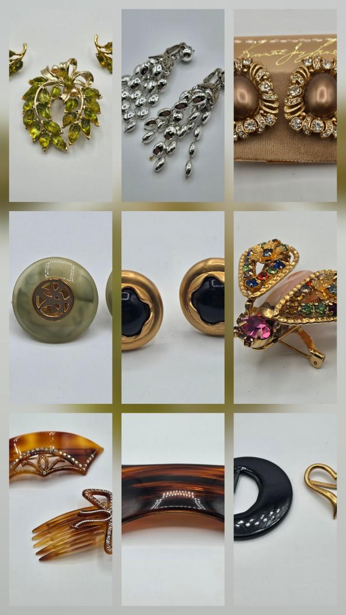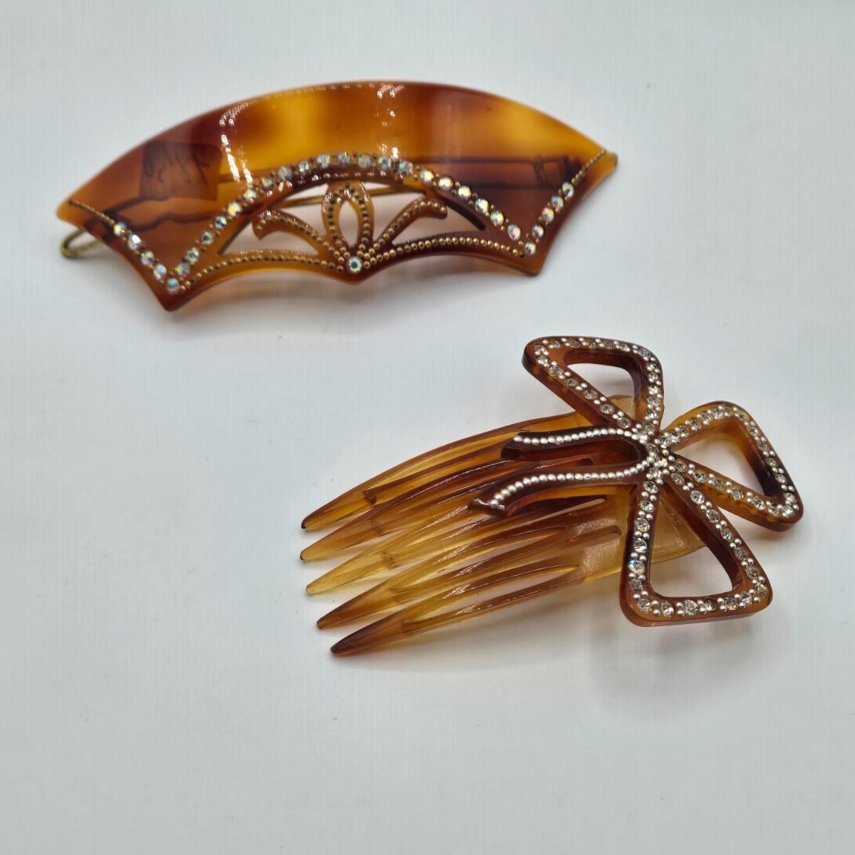 LOT 120: Fashionable Hair Combs, Barrett, Brooches with Matching Clip Earrings, and More