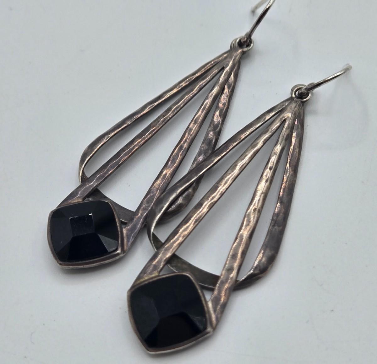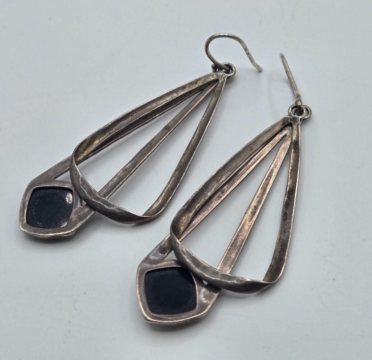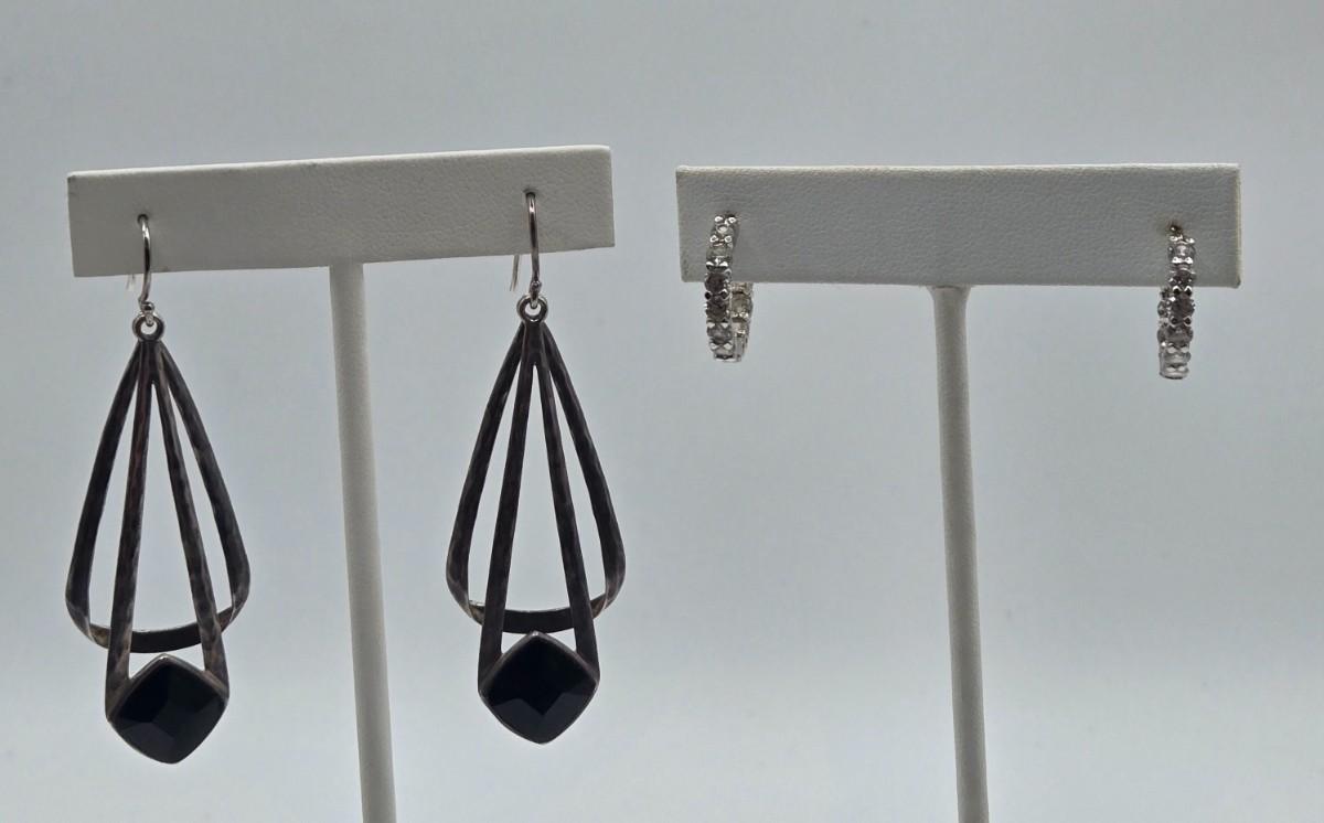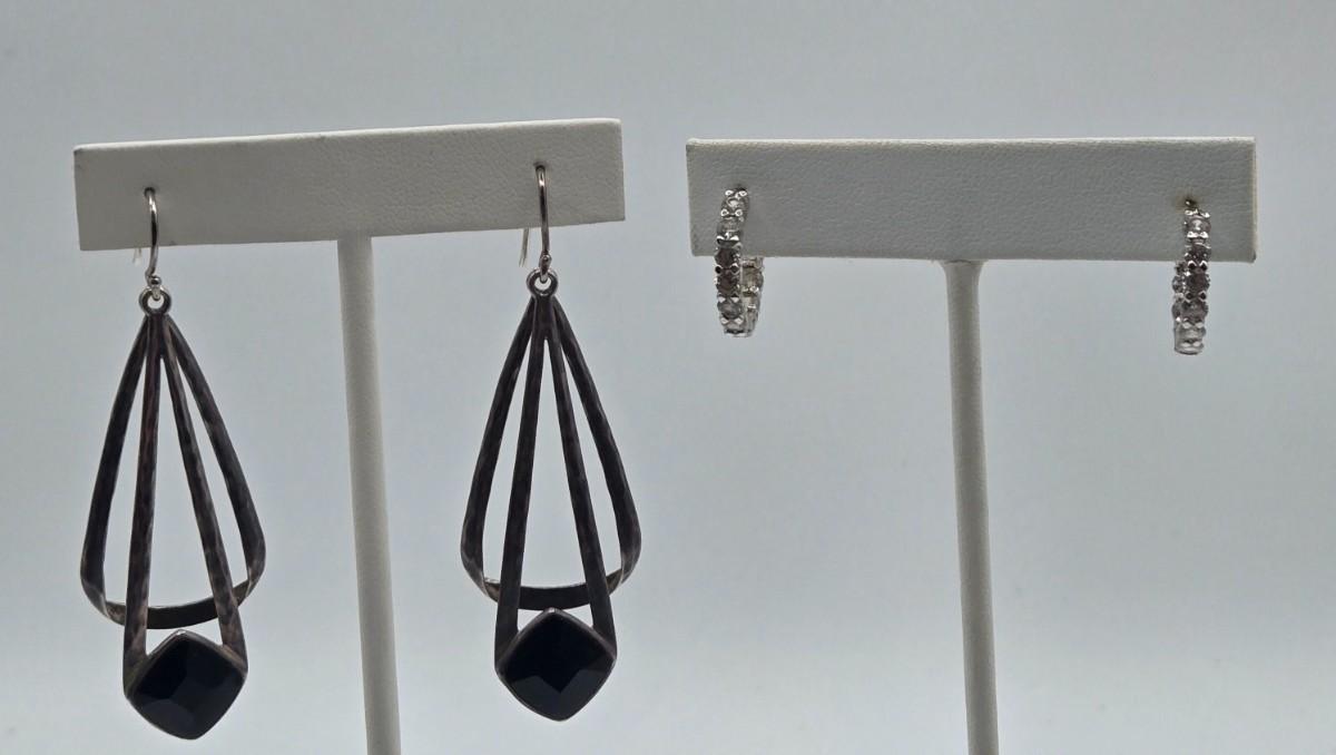 LOT 131: Sterling Silver Dangle Earrings 8.6gtw and 925 Silver Hoop Earrings with CZ 3.5gtw