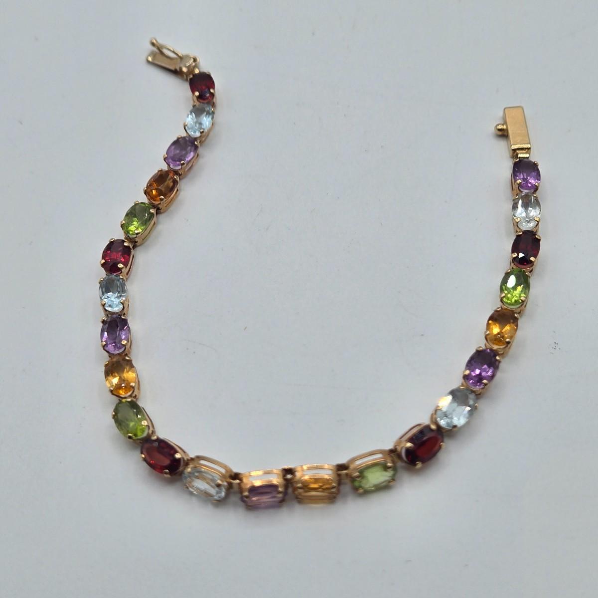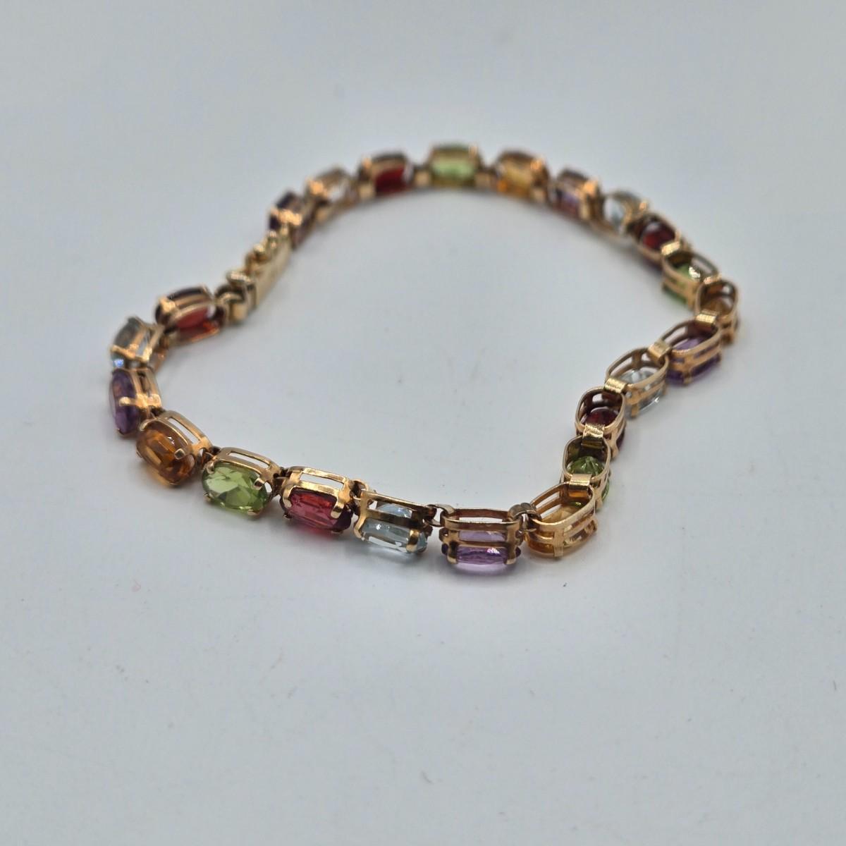 LOT 136: 14K Gold Semi Precious Gem Stone Bracelet/ 7 inches/ 6.2gtw