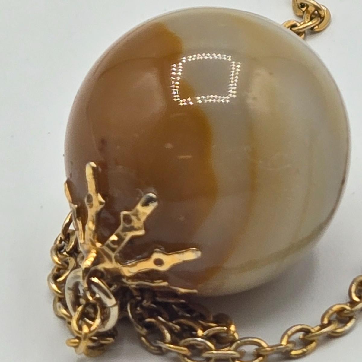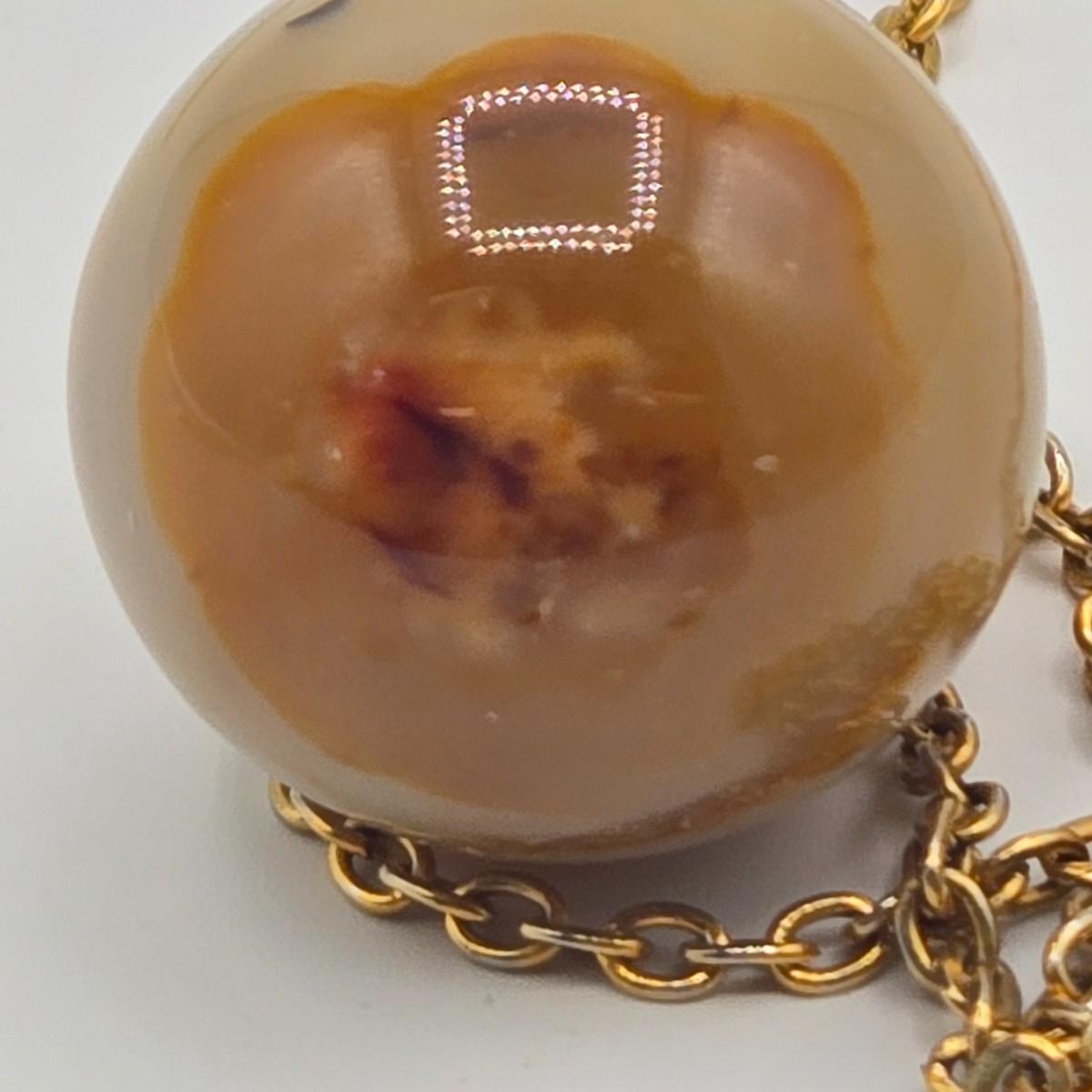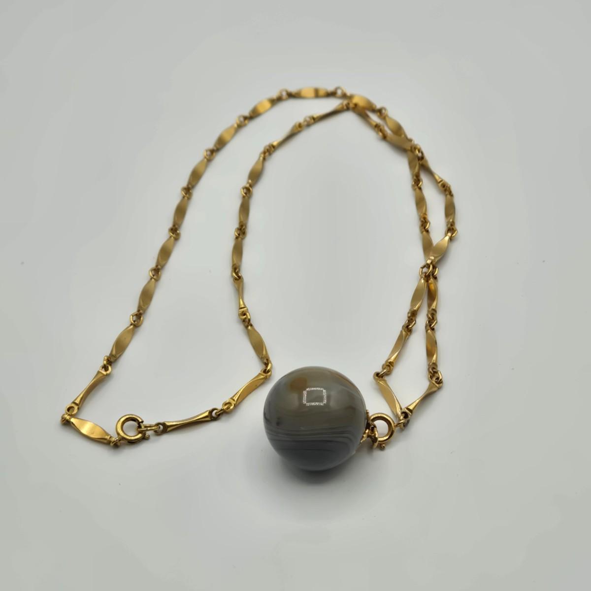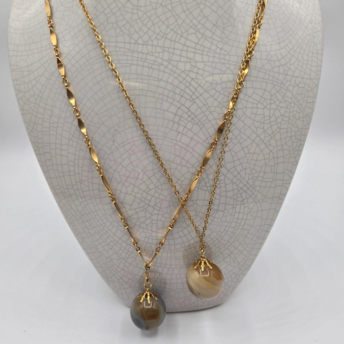 LOT 139: Two Round Polished Agate Pendants on Gold-tone Chains