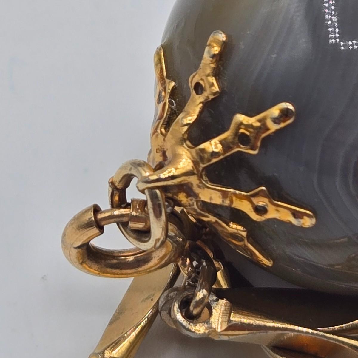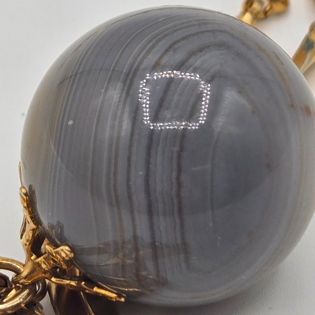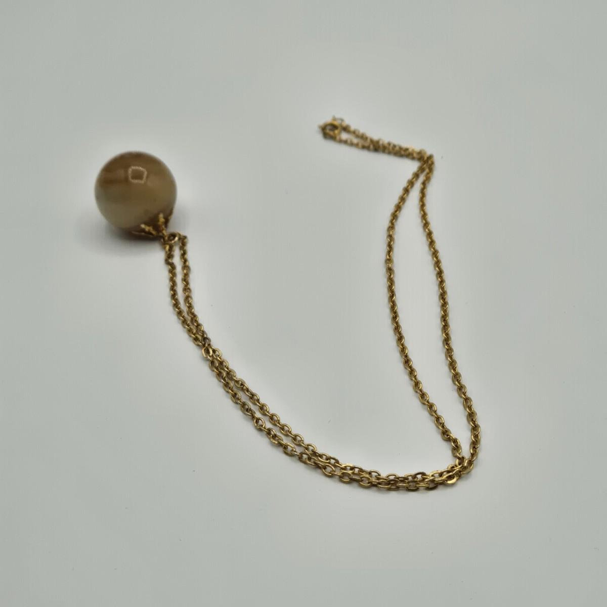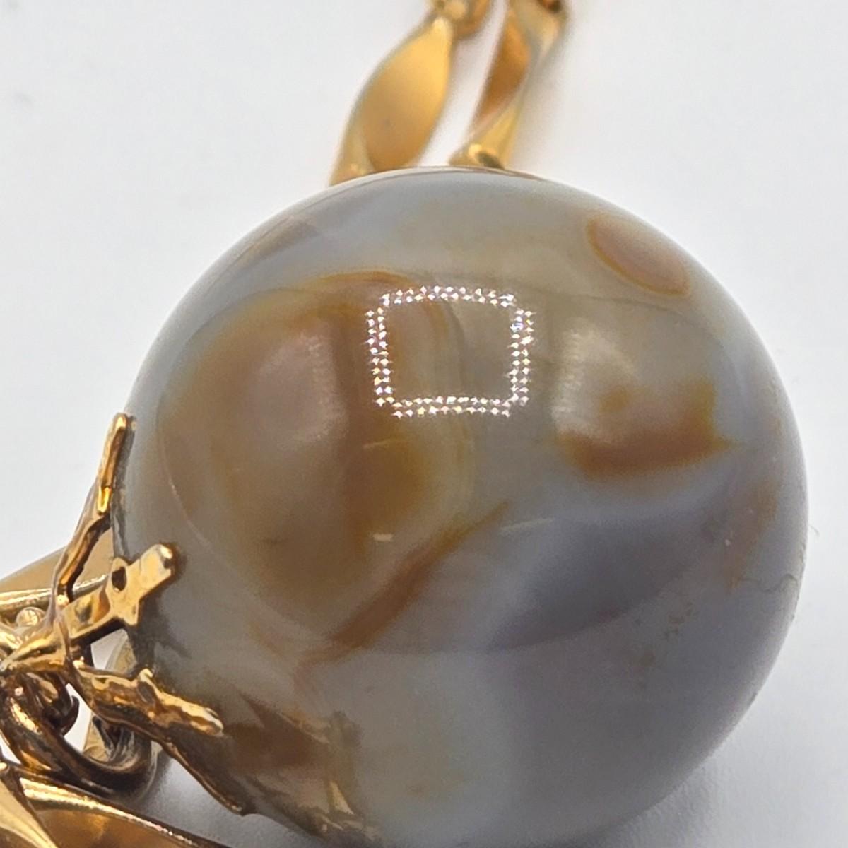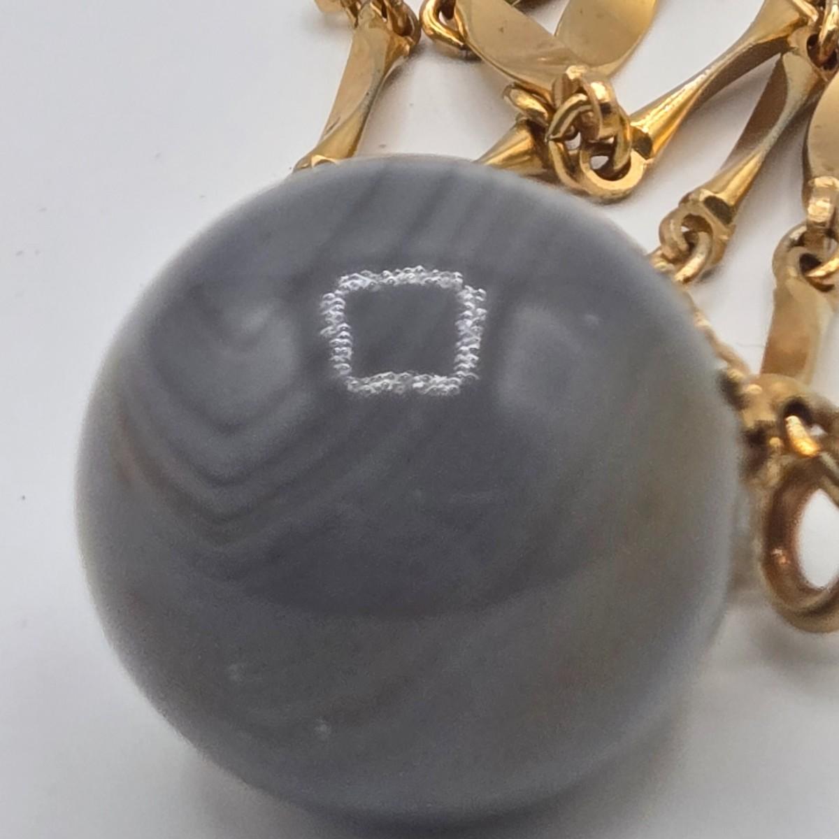 LOT 139: Two Round Polished Agate Pendants on Gold-tone Chains