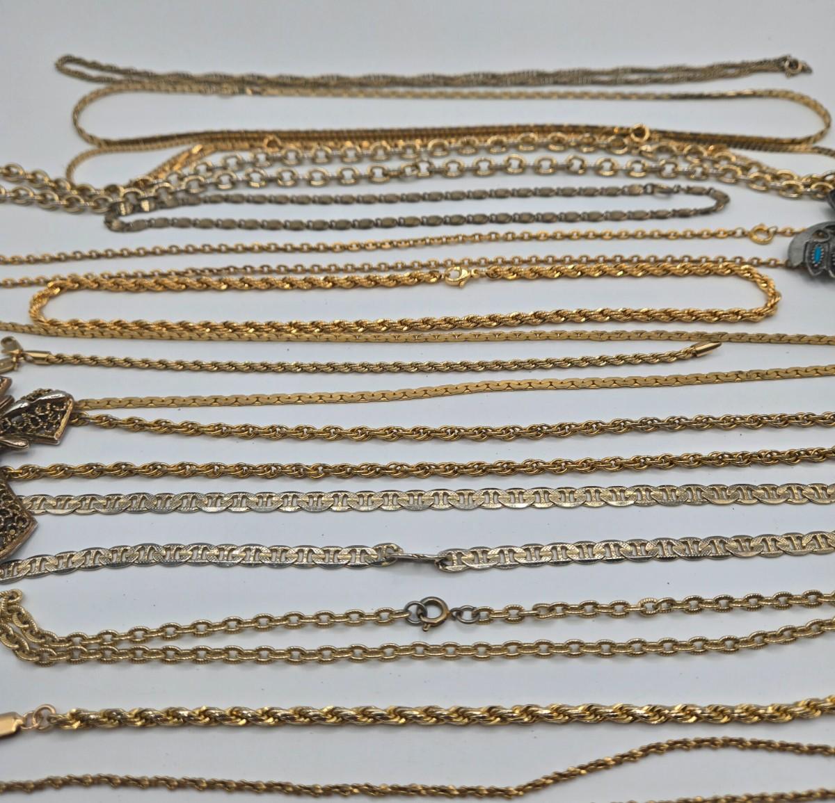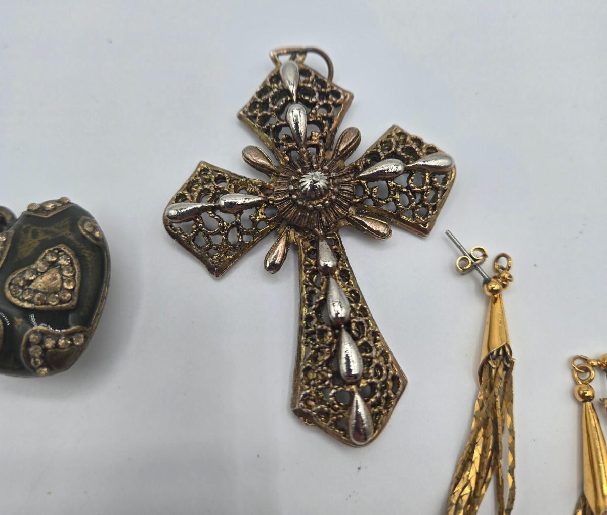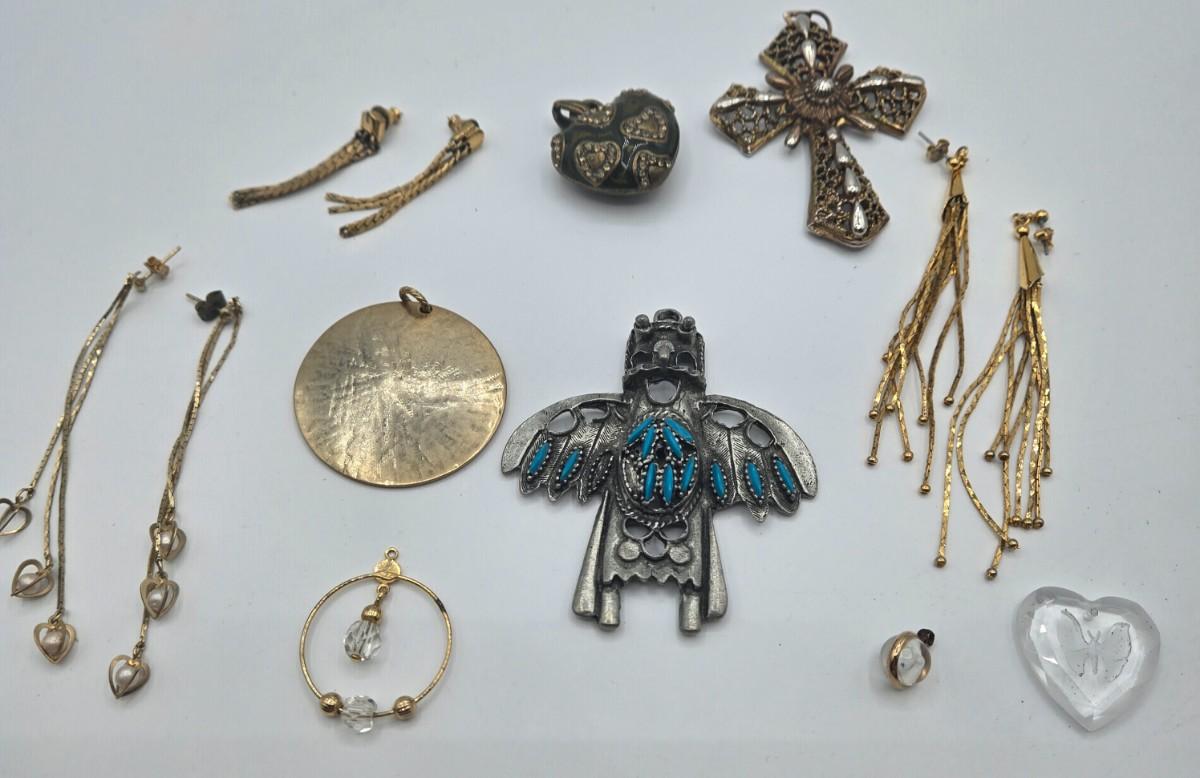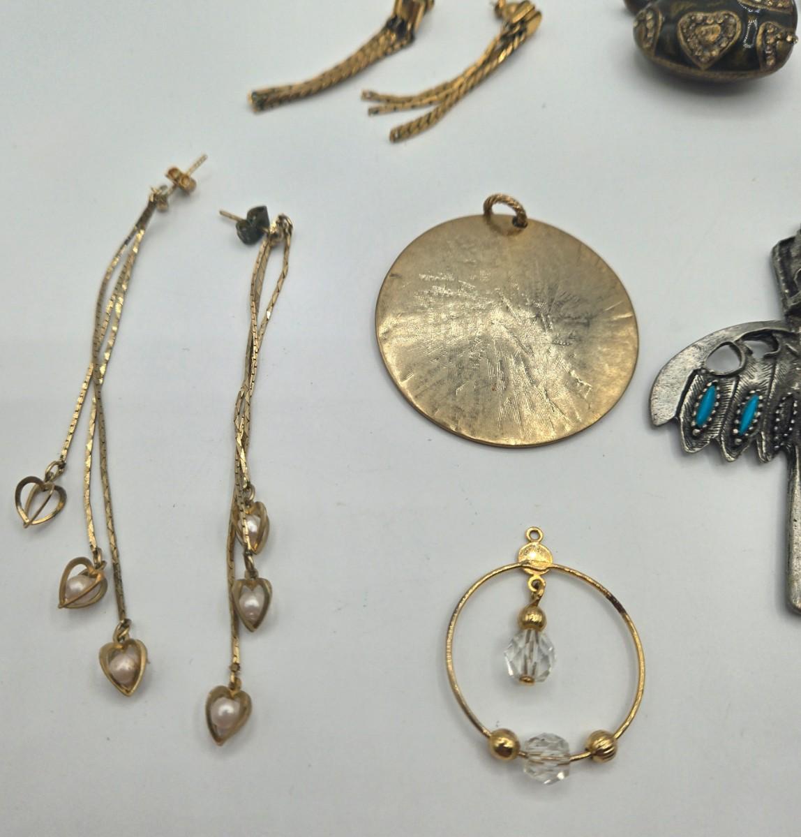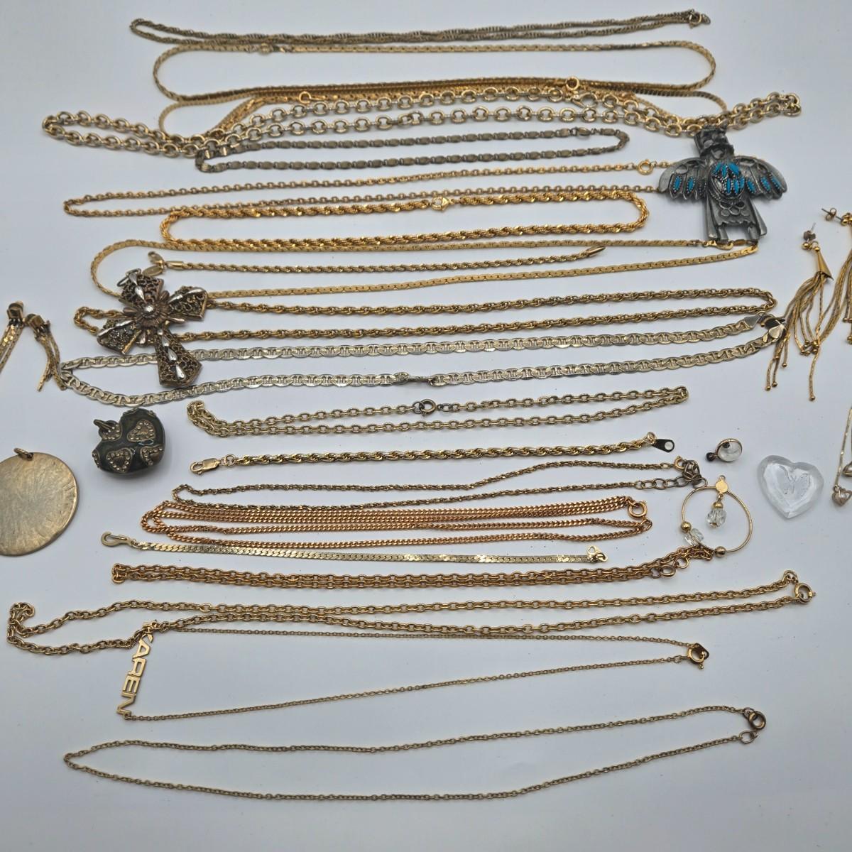LOT 146: Numerous Gold-tone Chains, Variety of Charms & Pendants, and Three Pairs of Pierced Earrings