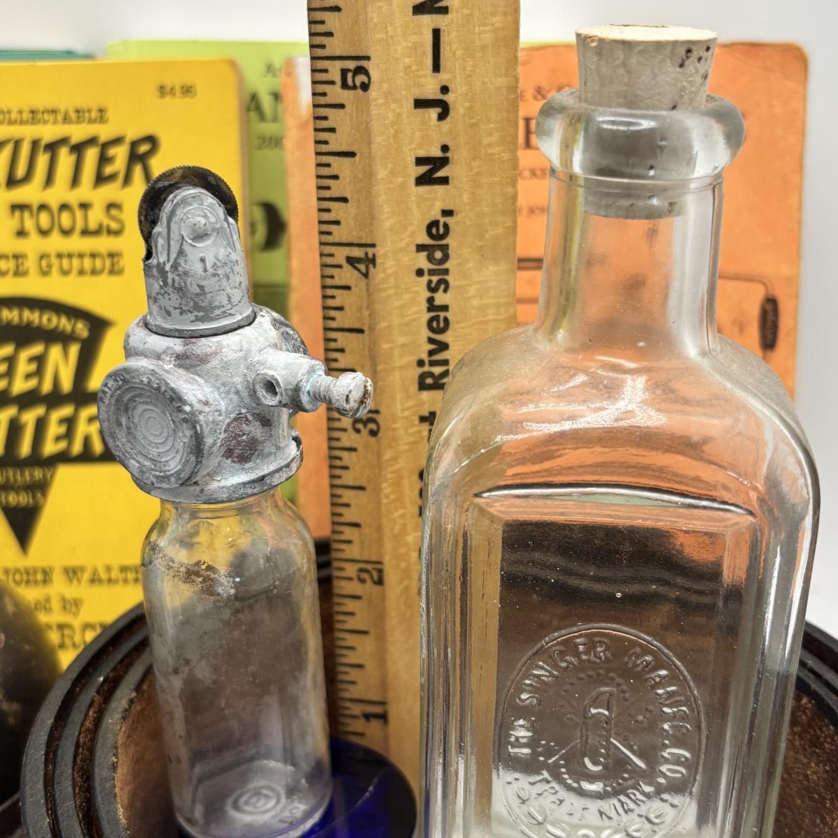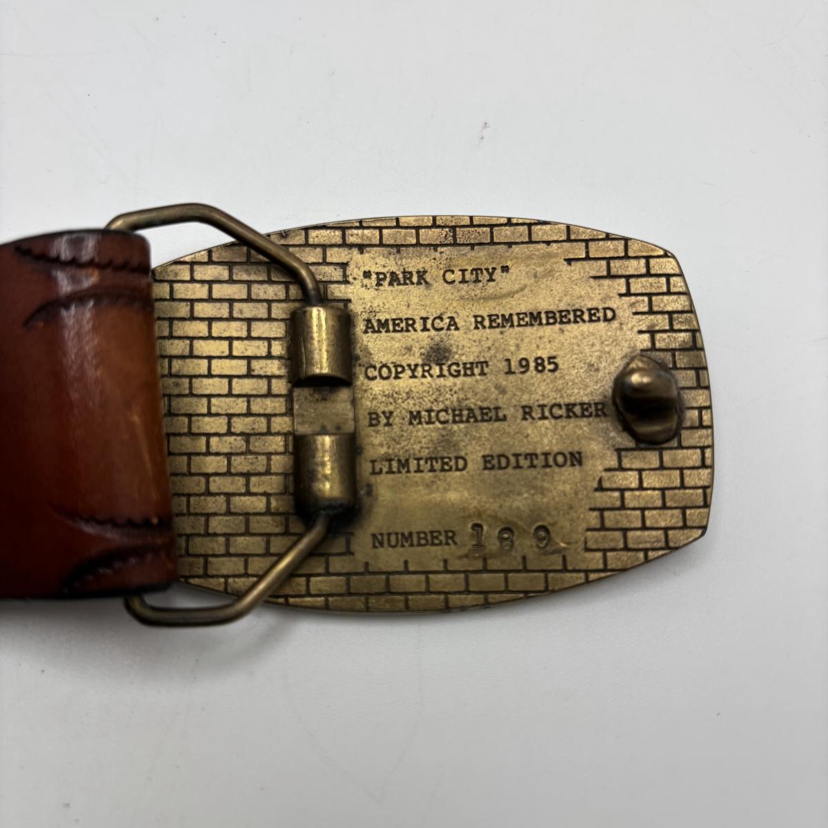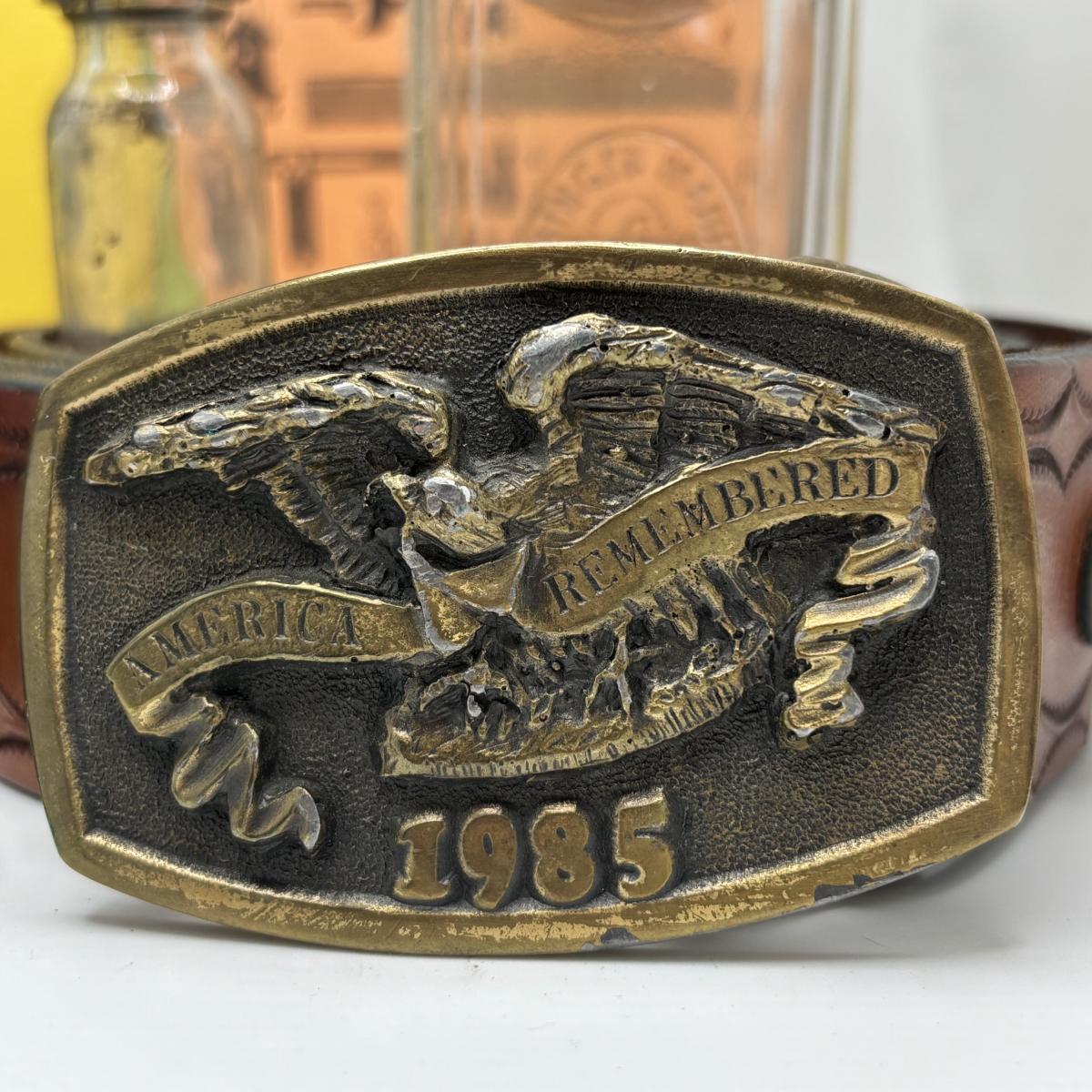 LOT 248: America Remembered 1985 Park City Belt Buckle, Pin Striping Tool, Glass Dog Perfume Bottle & More