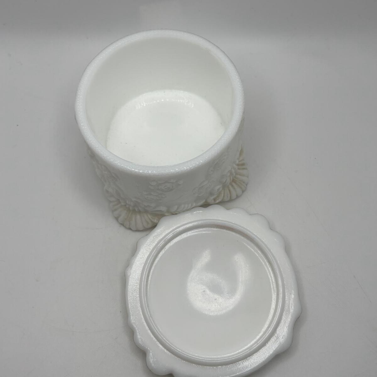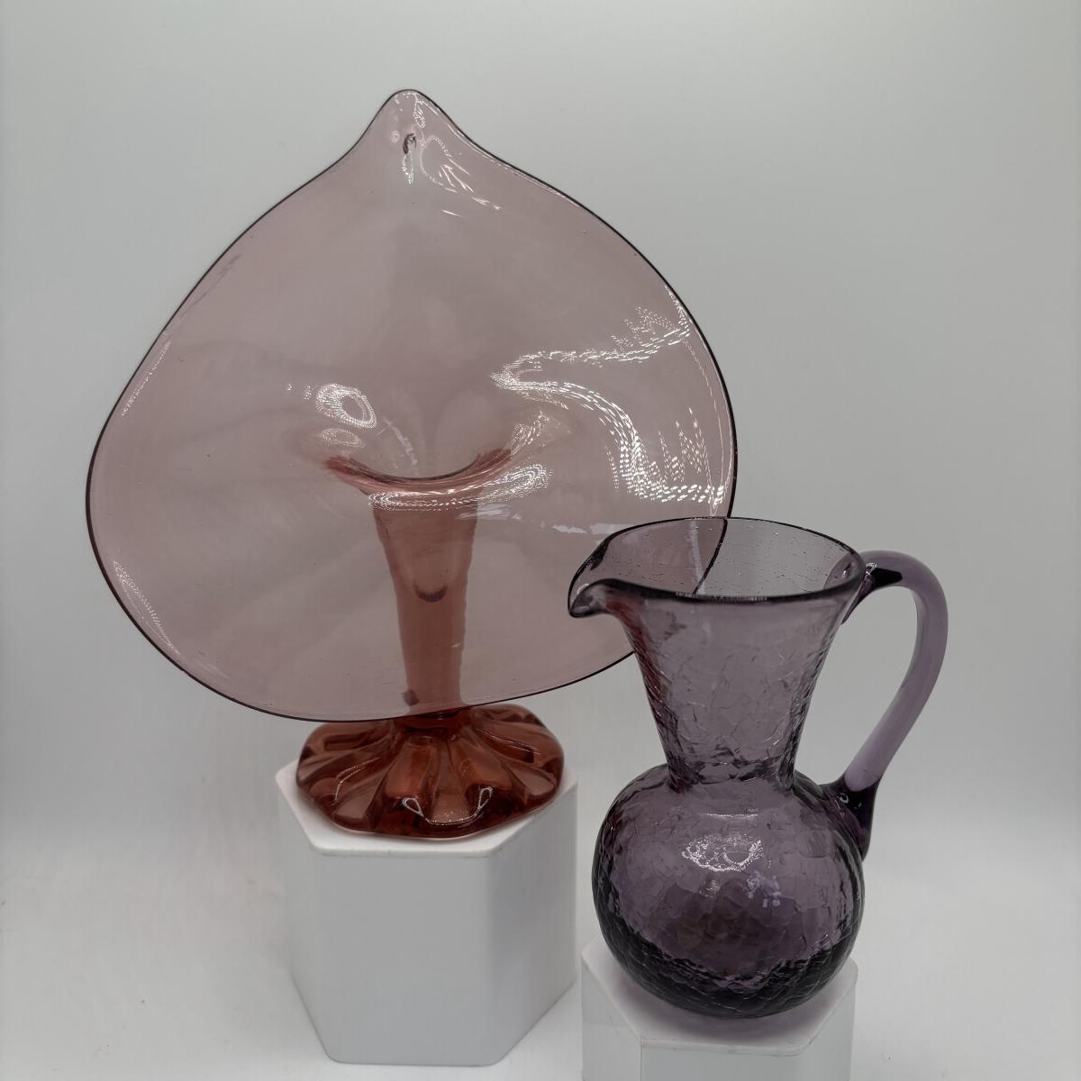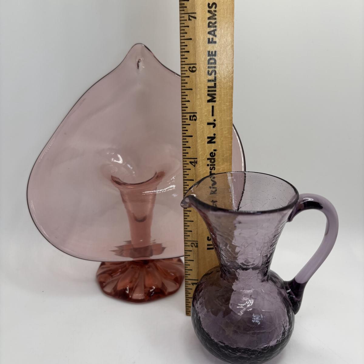 LOT 253: Hand Painted Trinket Dish, Purple Pitcher Plant Vase, Painted Milk Glass Trinket Box & More