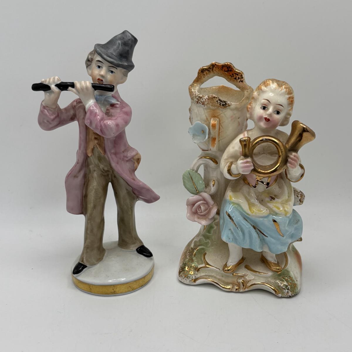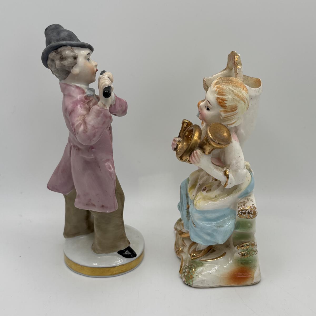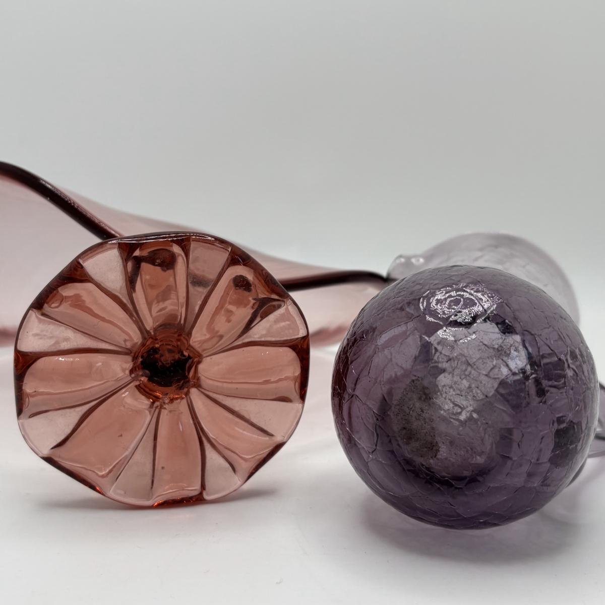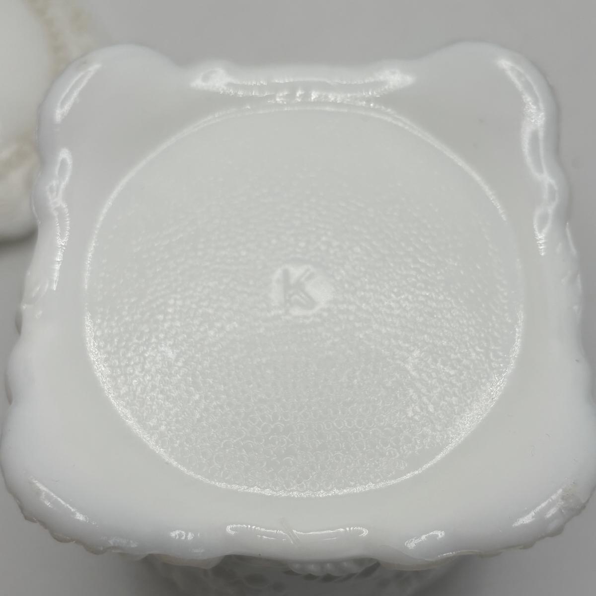 LOT 253: Hand Painted Trinket Dish, Purple Pitcher Plant Vase, Painted Milk Glass Trinket Box & More