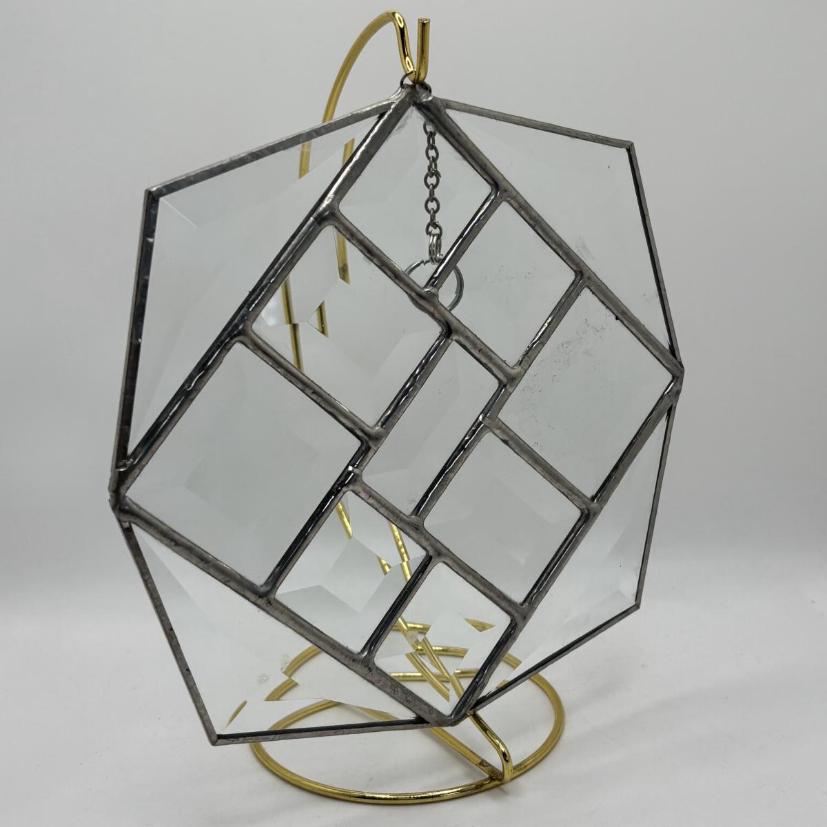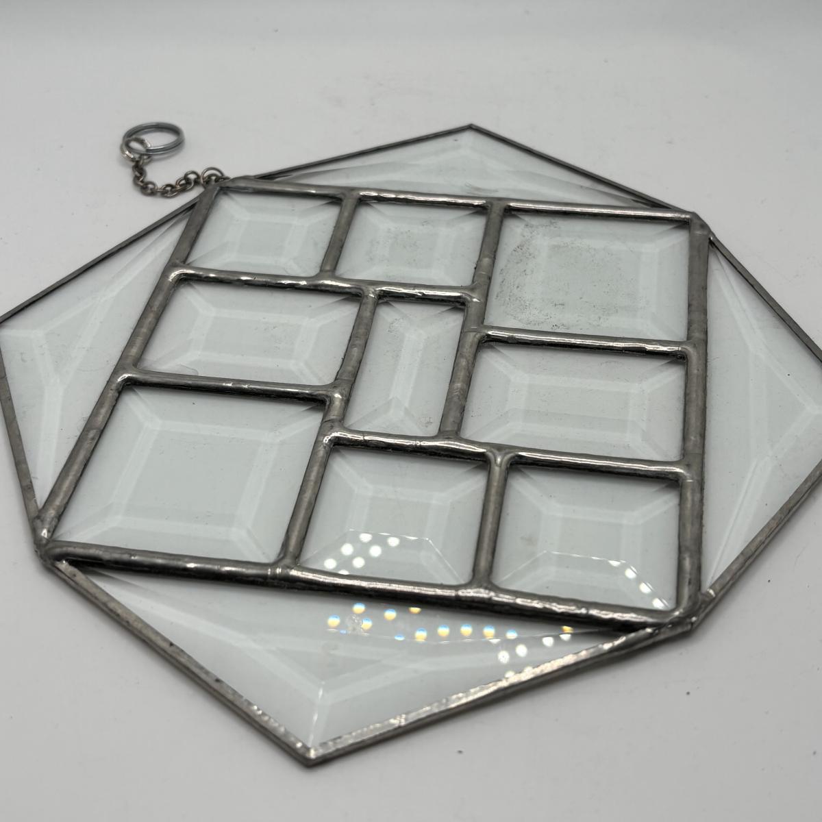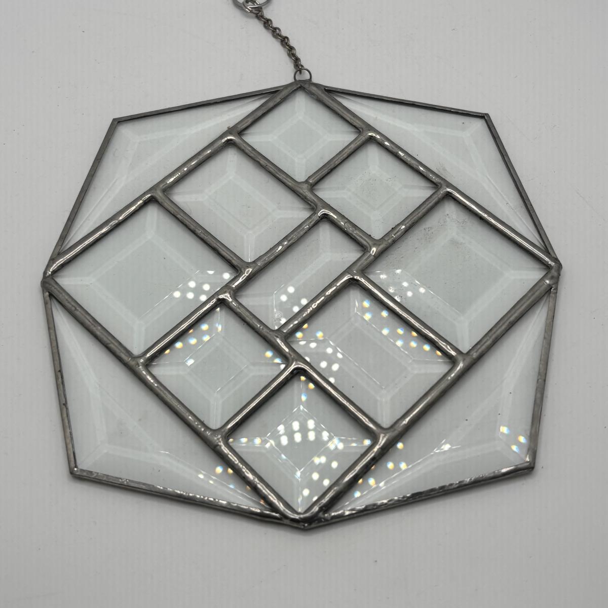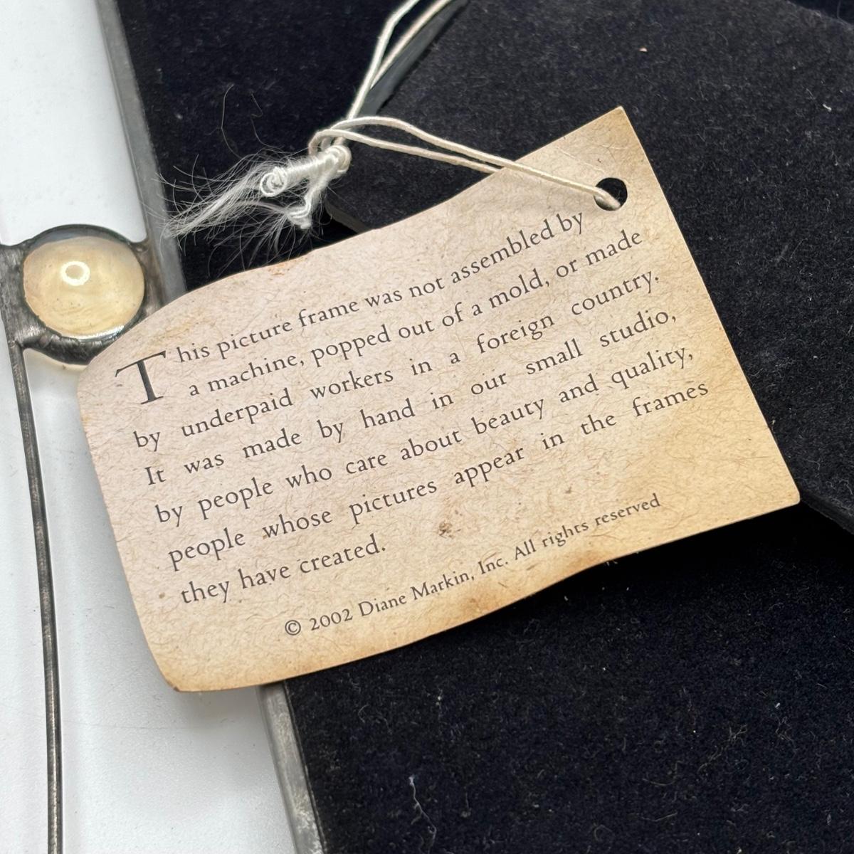 LOT 255: Art Glass Collection: Stained Glassed Diane Markin Picture Frame, Beveled Diamond Cluster-Stained Glass Panel, Green Teal Pitcher & Orange Empire Glass Pitcher