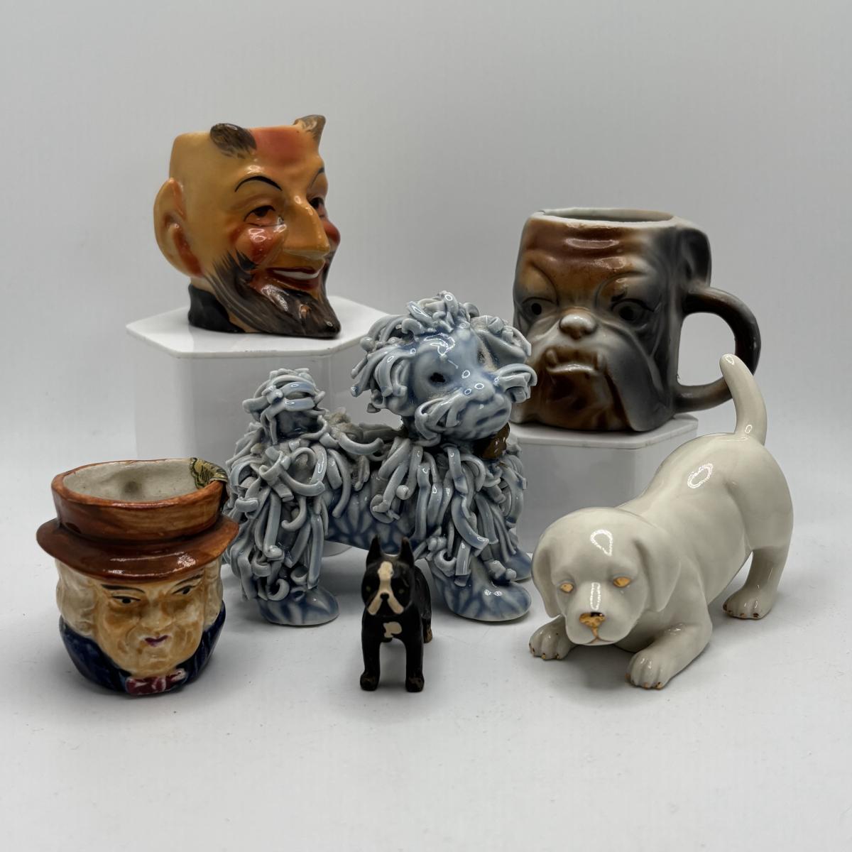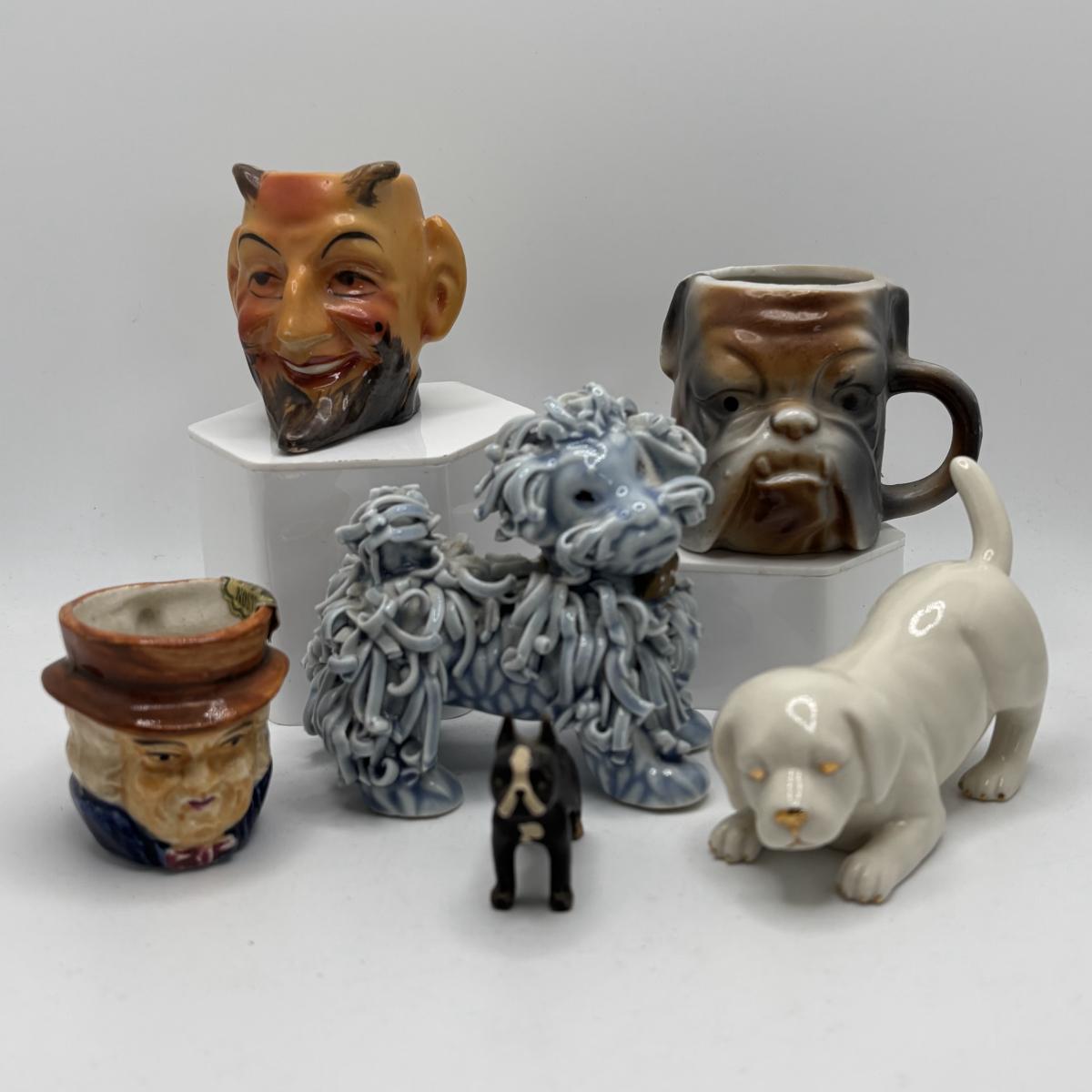 LOT 256: Vintage Blue Spaghetti Poodle Figure, Lenox Dog,Miniature Tobey Mugs