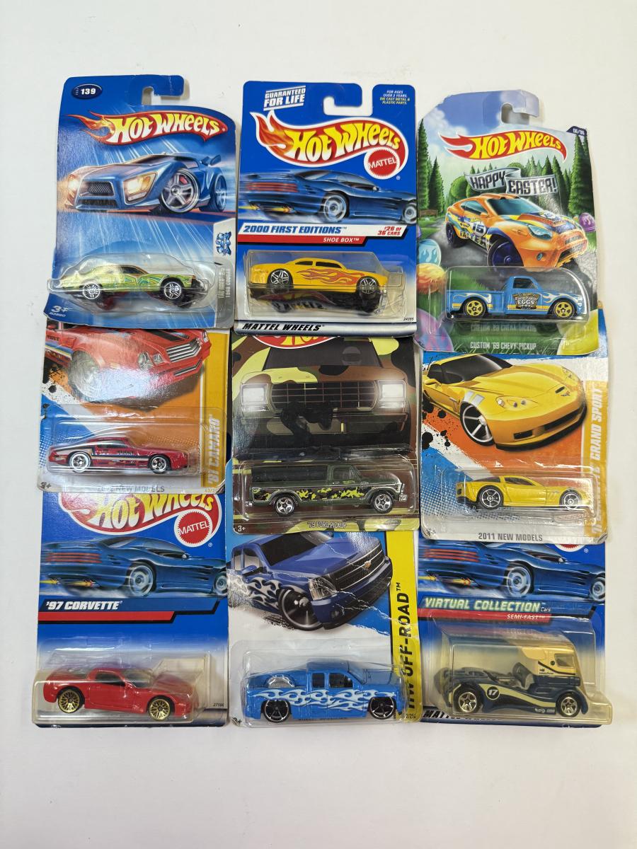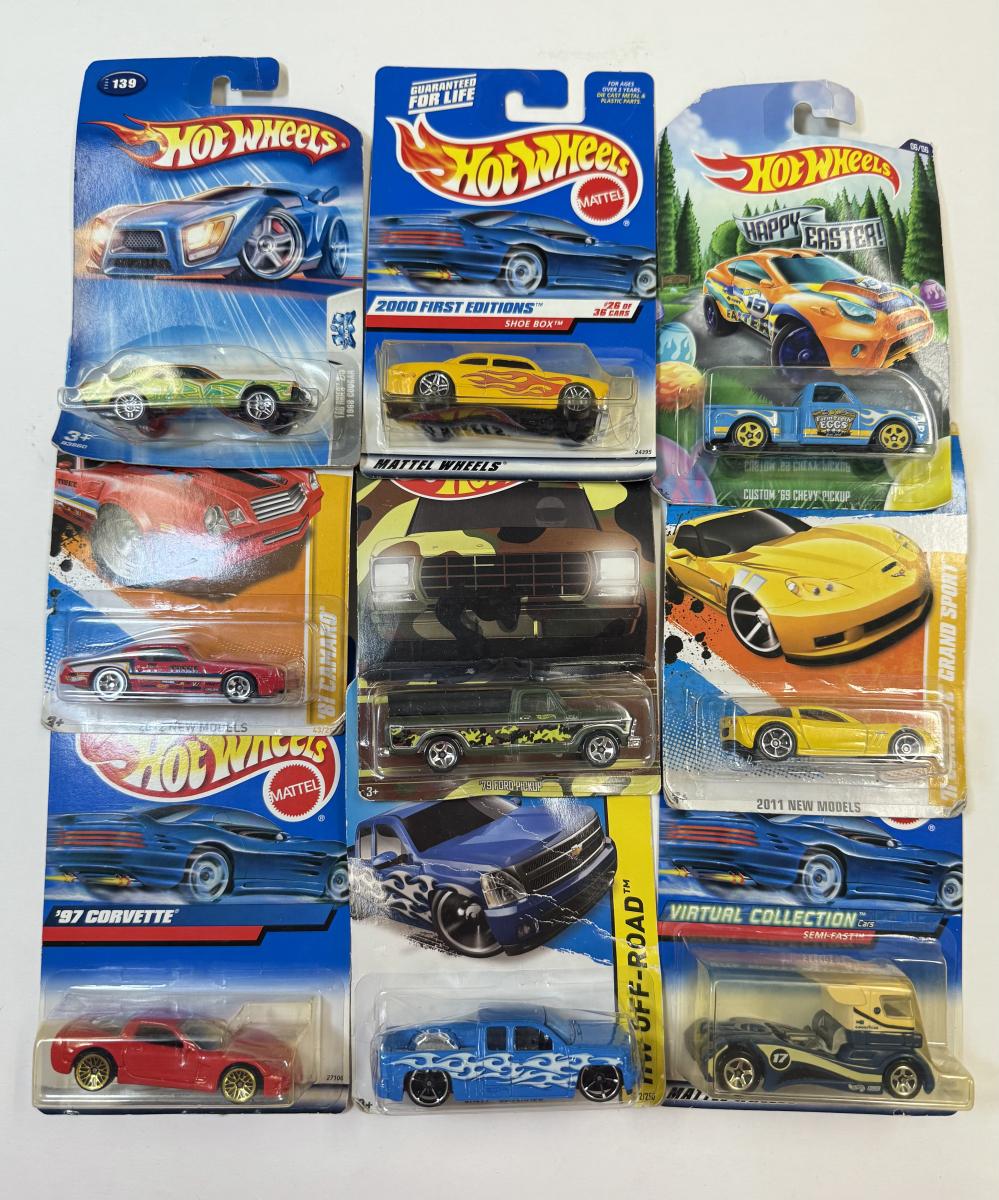 LOT 45: Mattel Hot Wheels Cars in Packaging: Happy Easter Egg Truck, 2000 First Editions, Virtual Collection & More