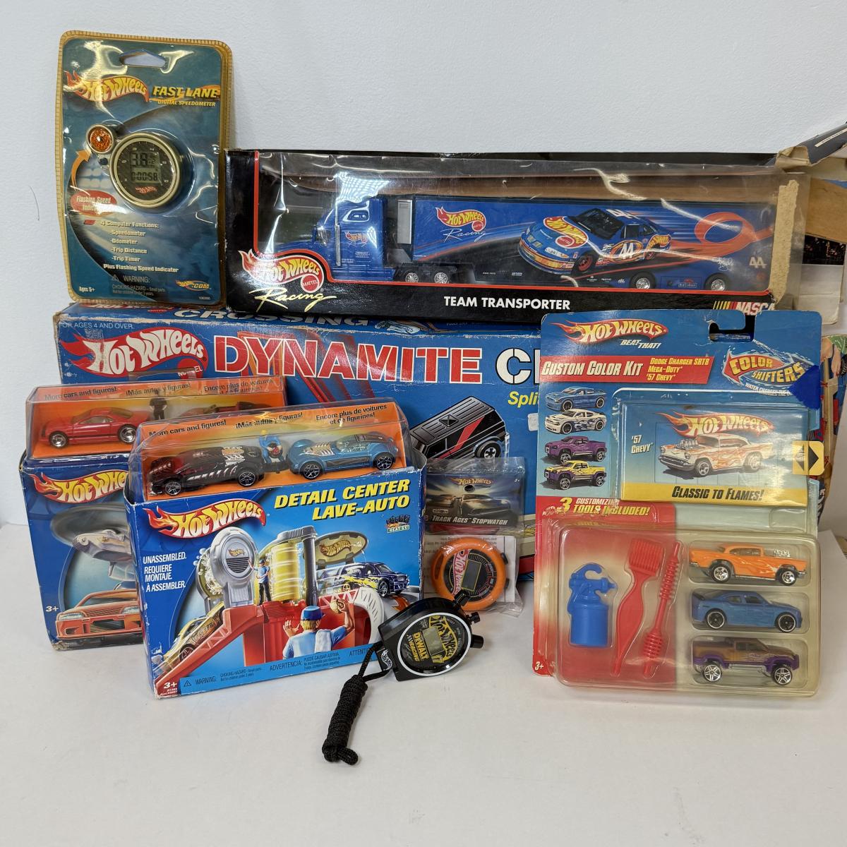 LOT 105: Big Hot Wheels Collection: Packaged Sets, Dewalt Stopwatch & More