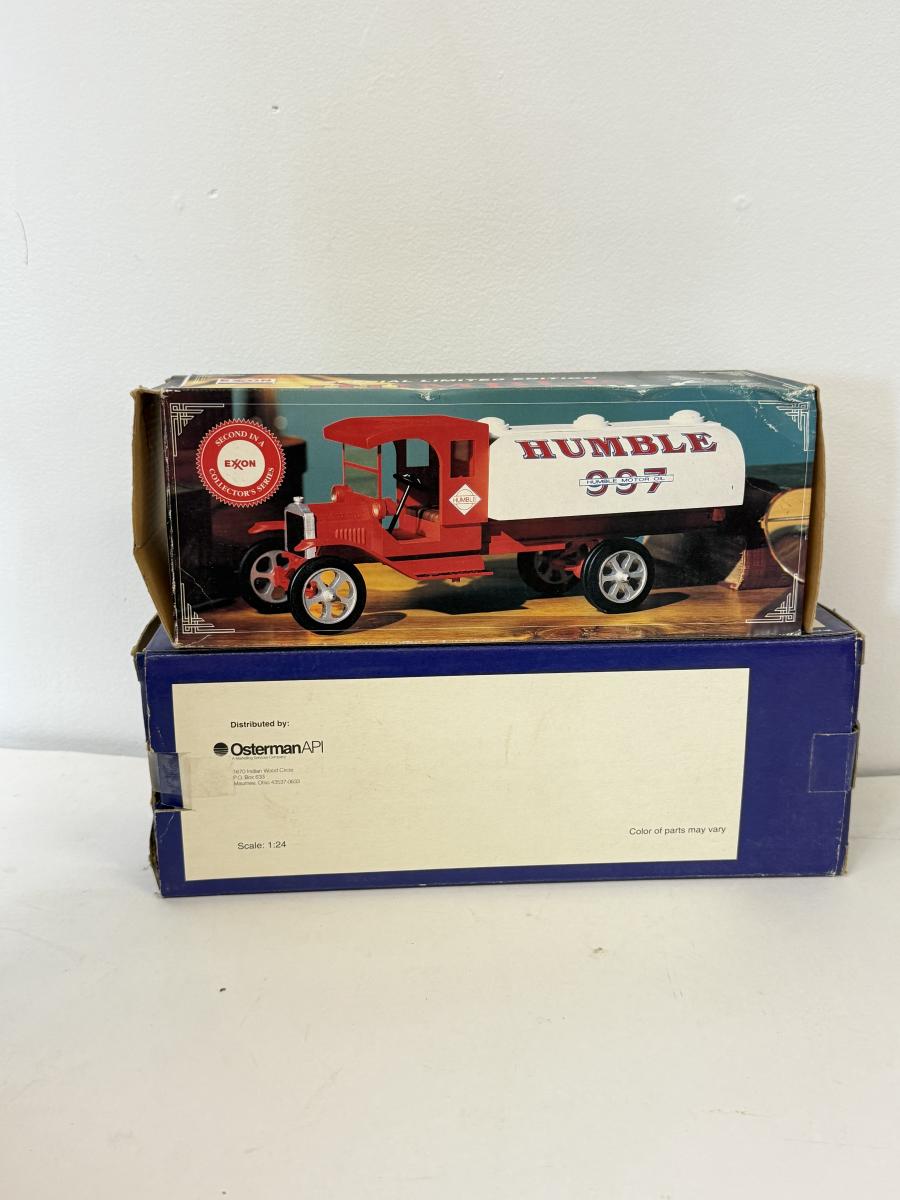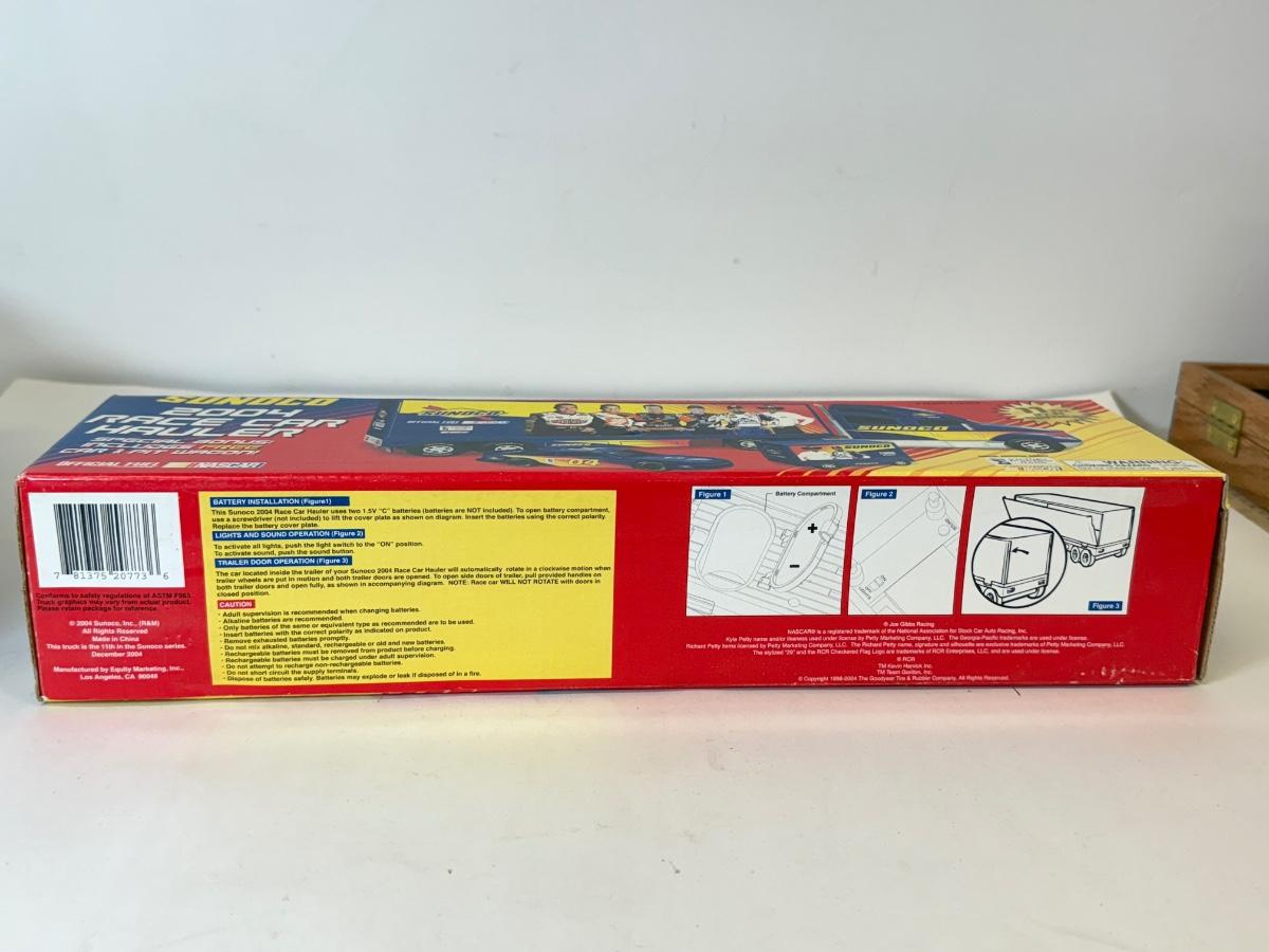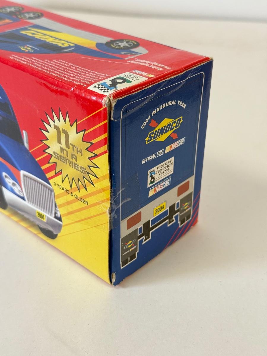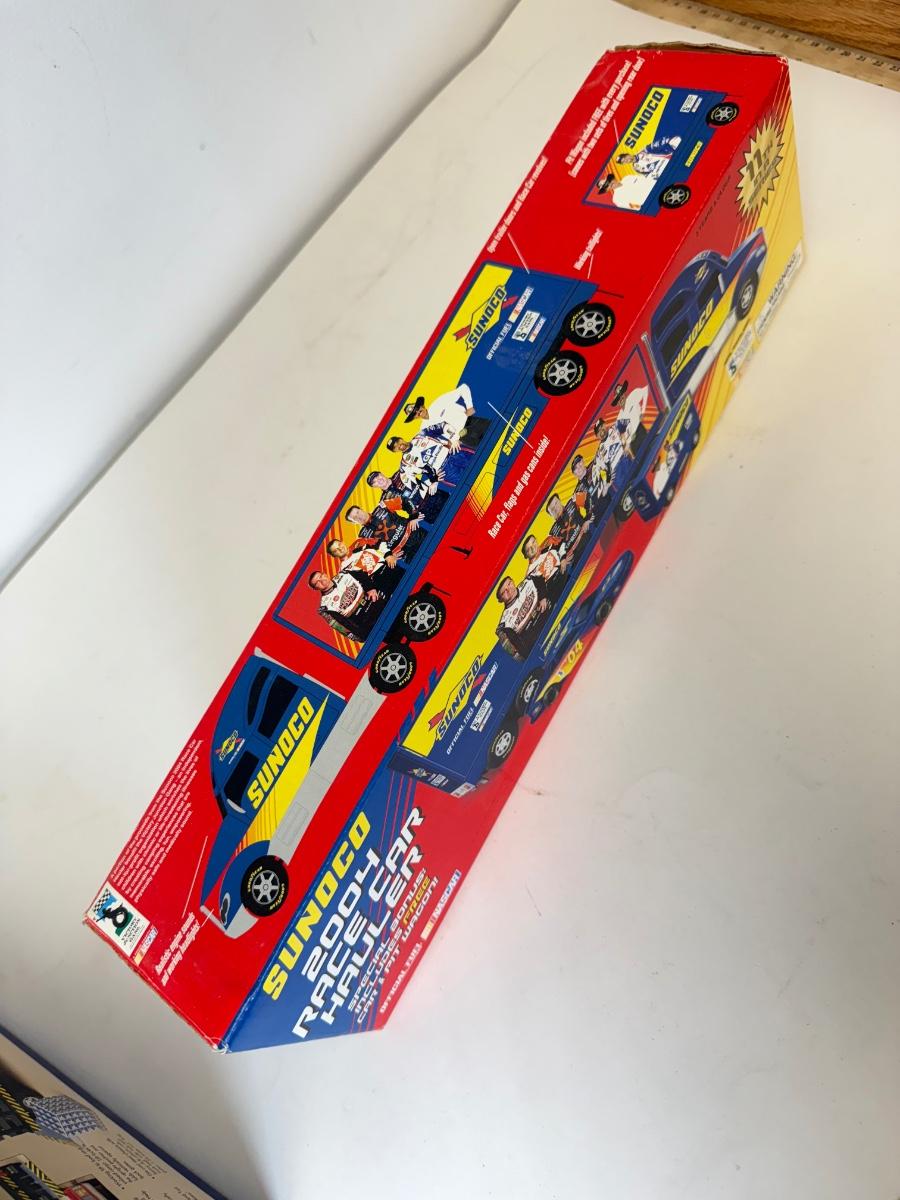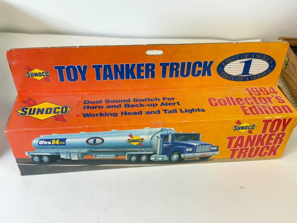 LOT 107: Sunoco Toy Tanker Truck, 2004 Race Car Hauler, Mobile Racing Truck, Humble Toy Tanker Truck & Mobil Collectible Toy Truck