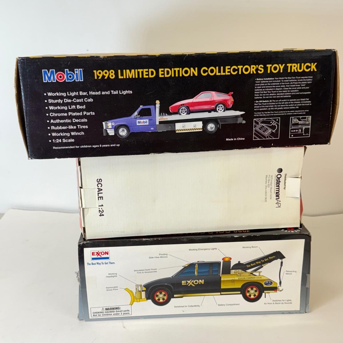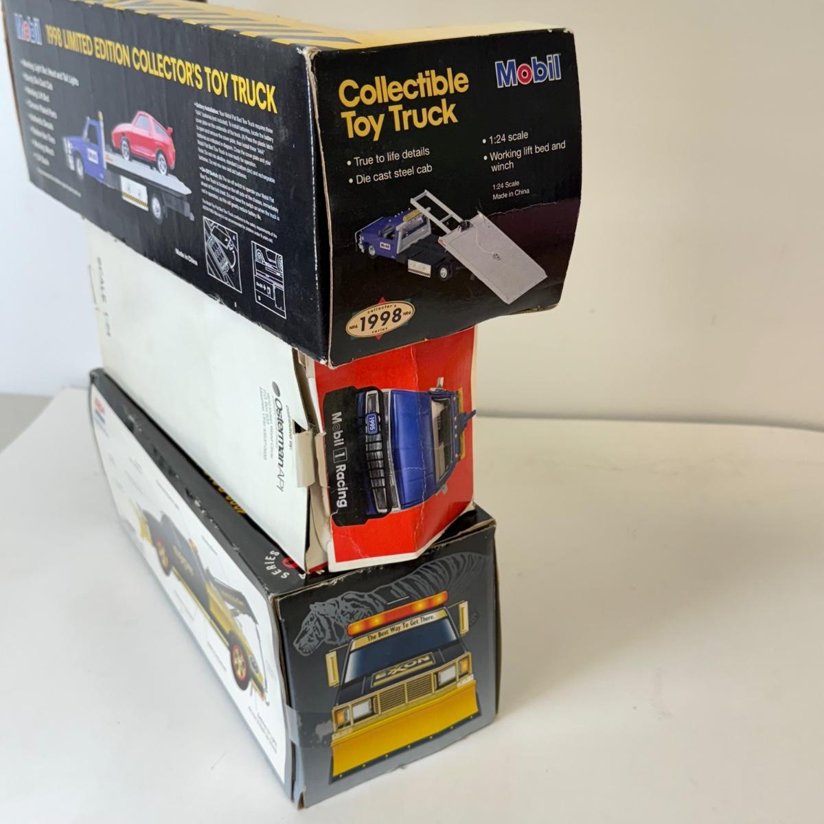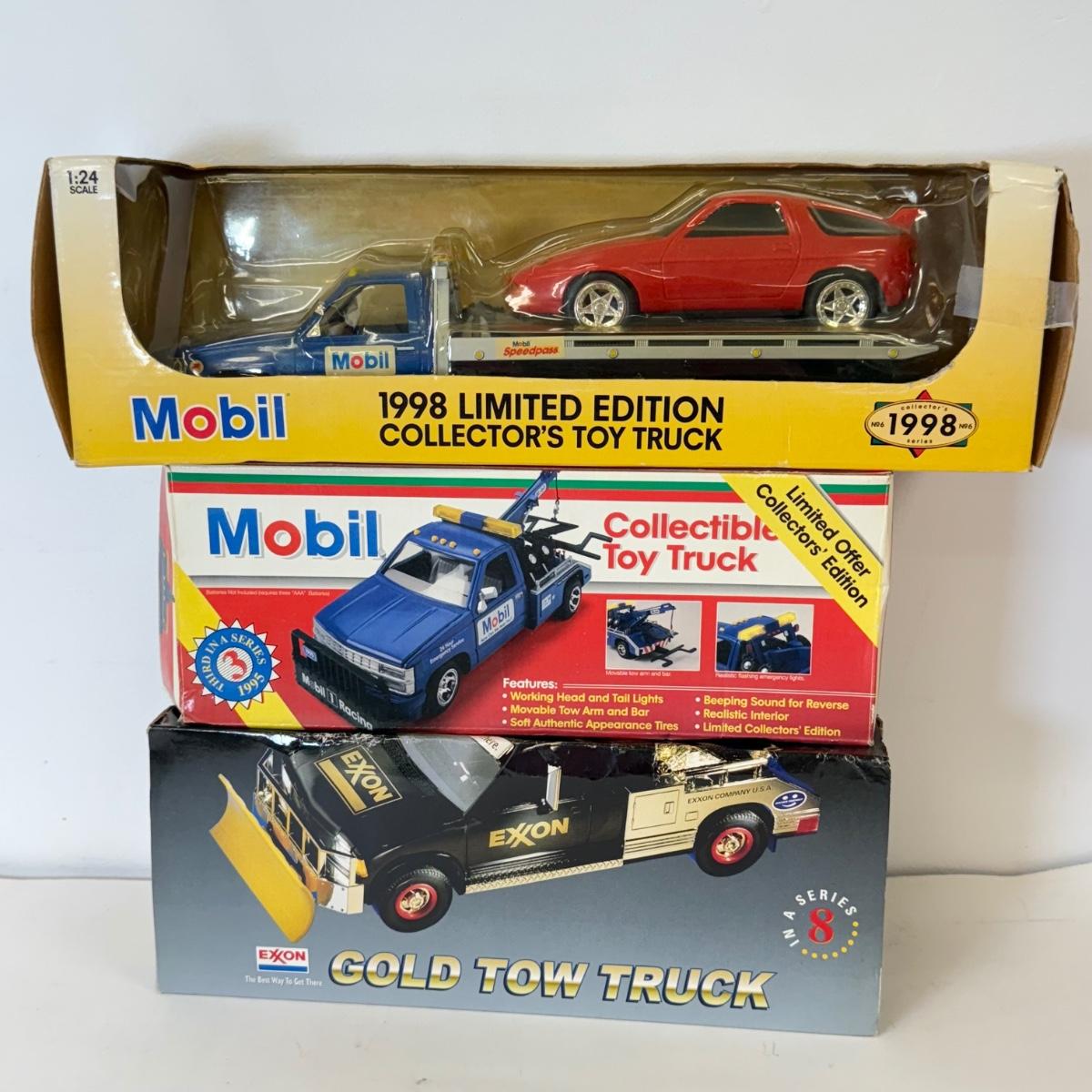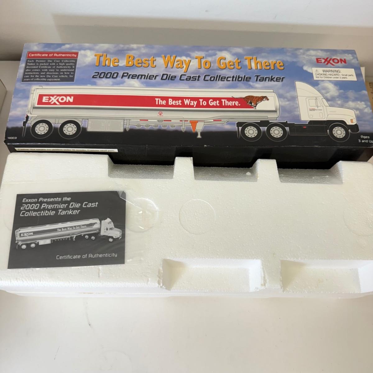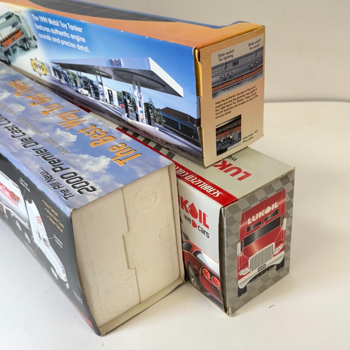 LOT 108: Exxon Diesel Cast Tanker Truck, Lukoil Corvette Carrier, 1999 Mobil LE Collector Toy Truck & More