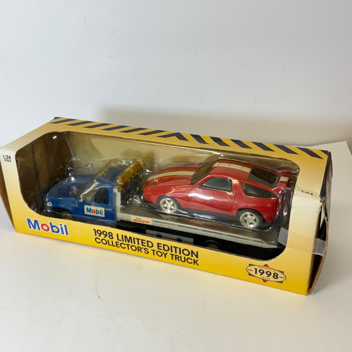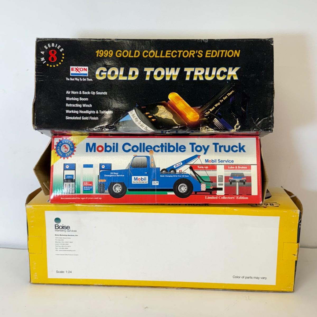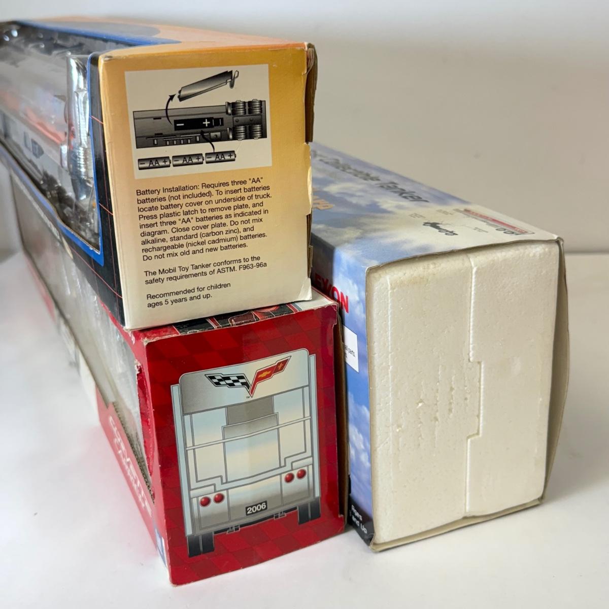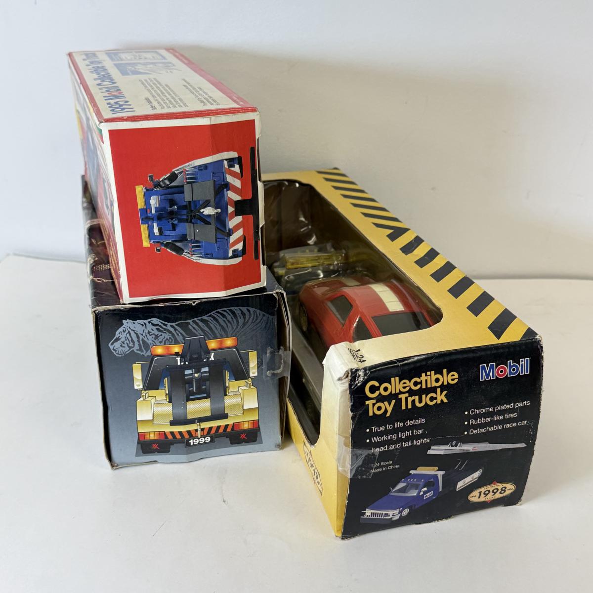 LOT 108: Exxon Diesel Cast Tanker Truck, Lukoil Corvette Carrier, 1999 Mobil LE Collector Toy Truck & More