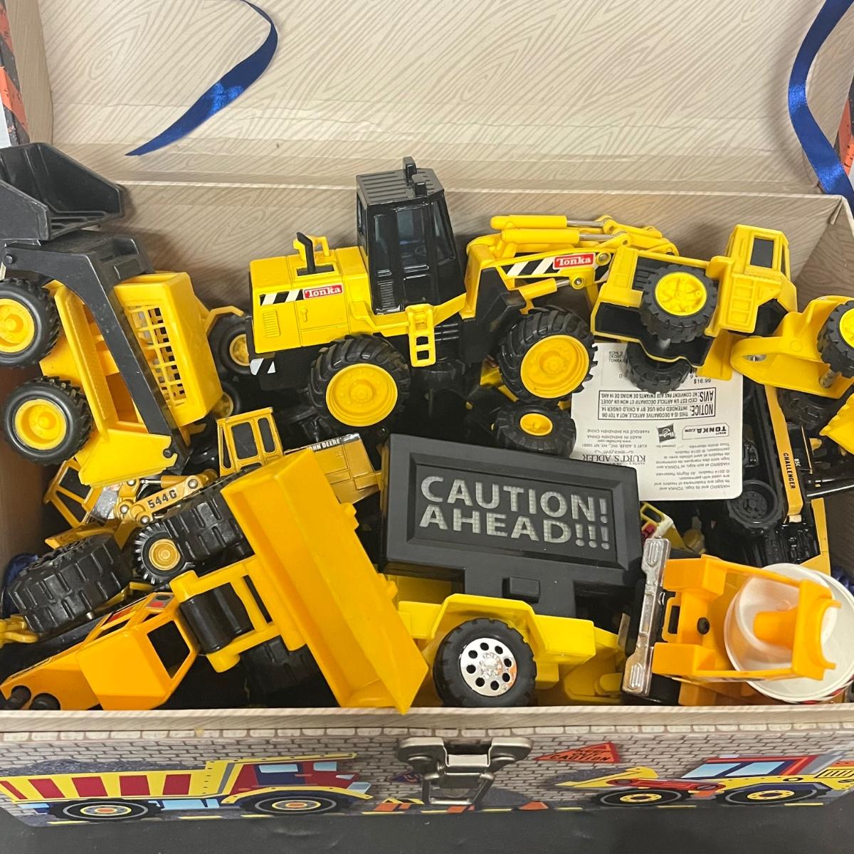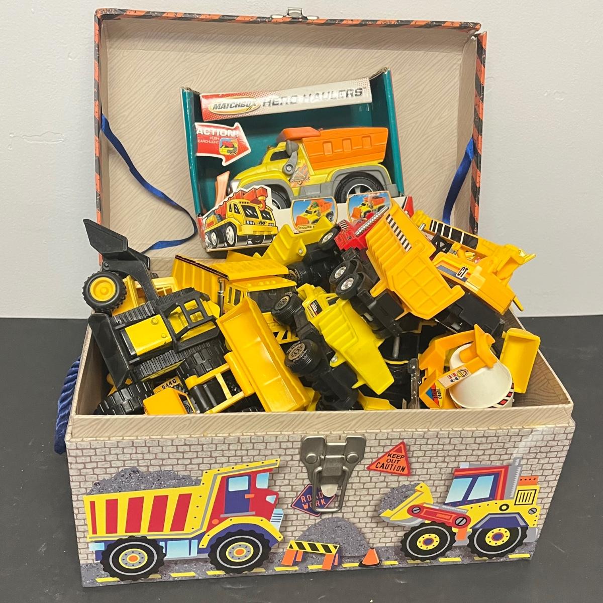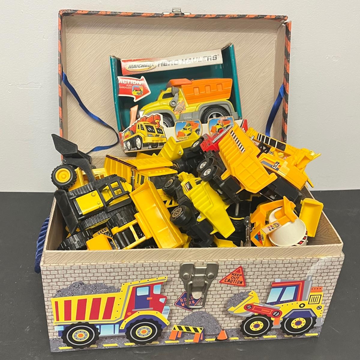 LOT 124: Bin of Construction Vehicle Toys - Tonka and More