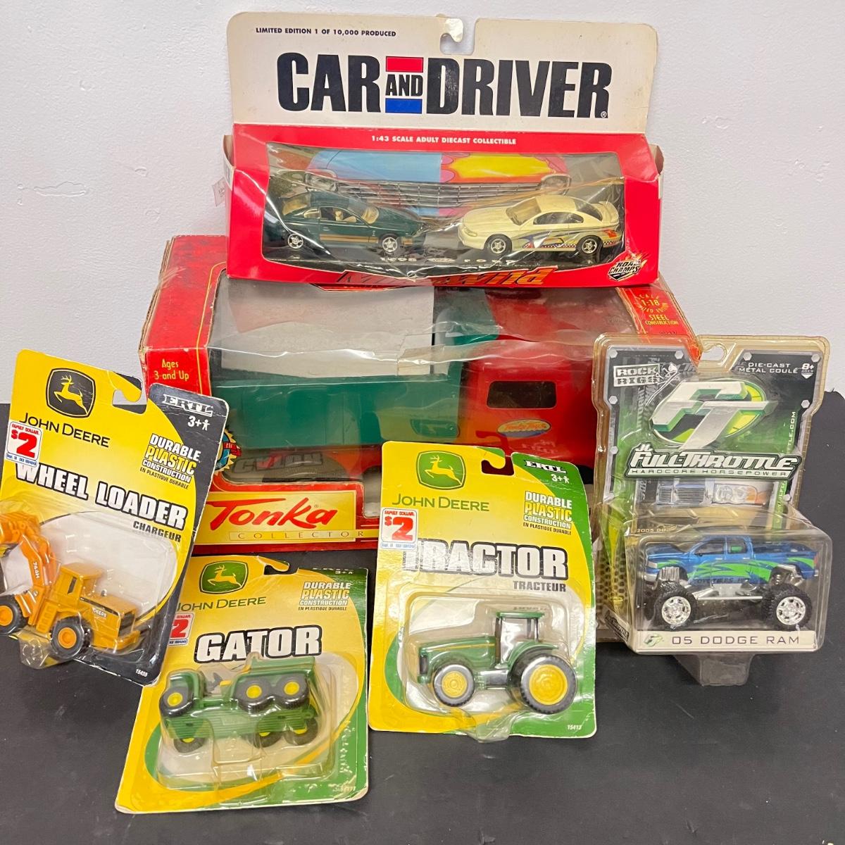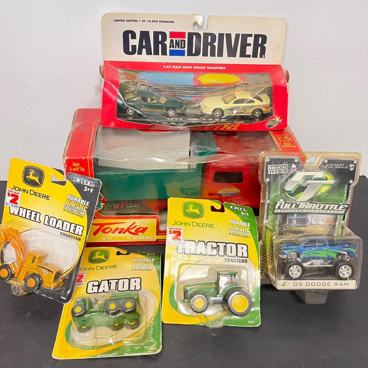 LOT 125: Various Vehicle Toys in Original Packaging - John Deere, Tonka and More