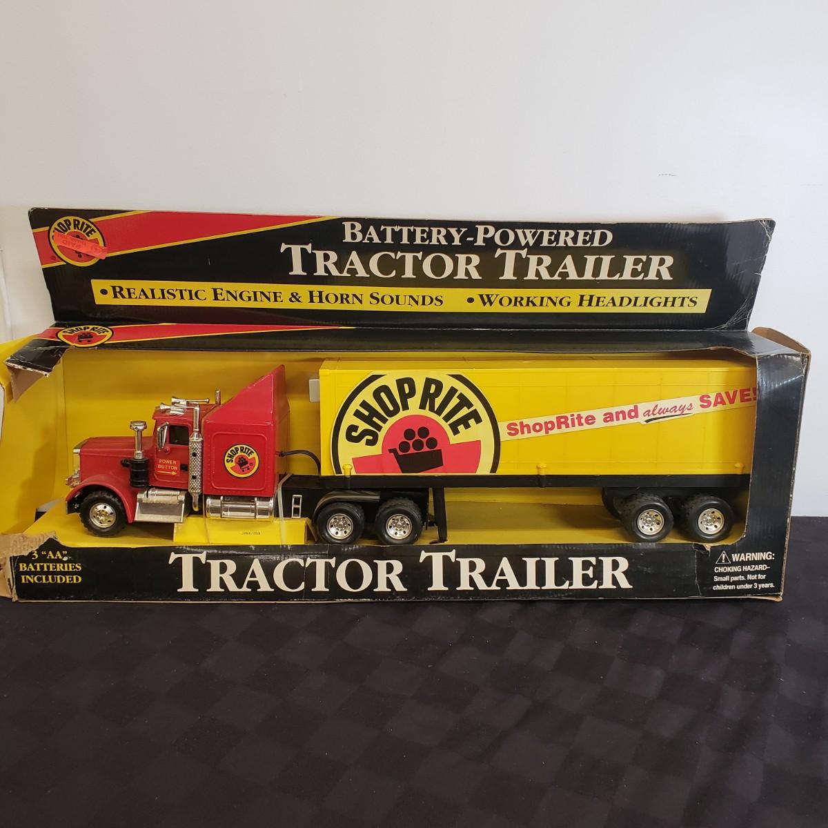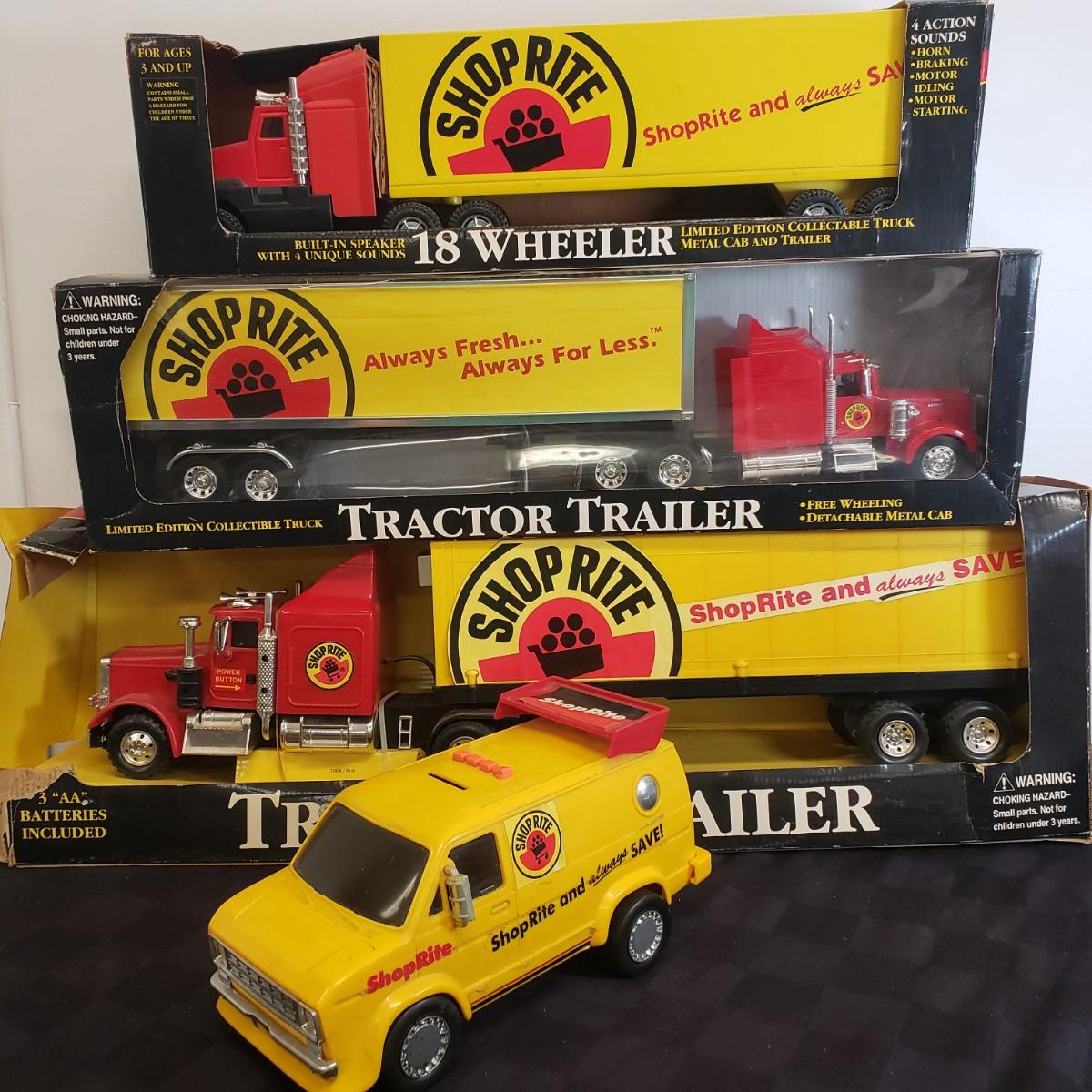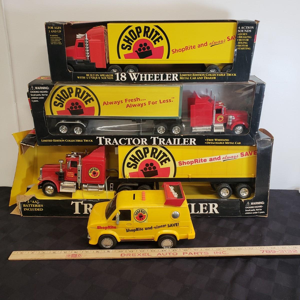 LOT 142: Vintage Shop Rite Tractor Trailers with Collectible Van Bank