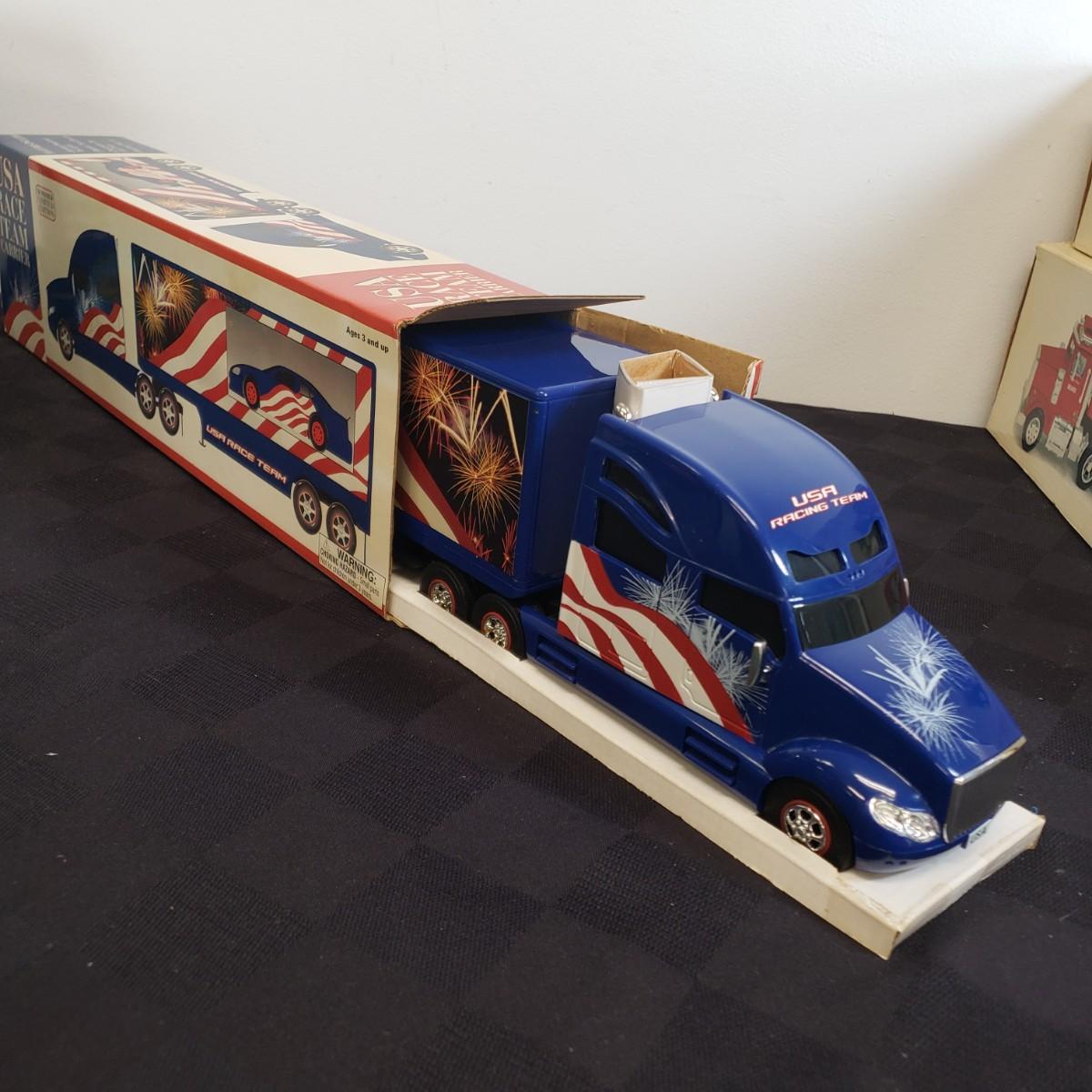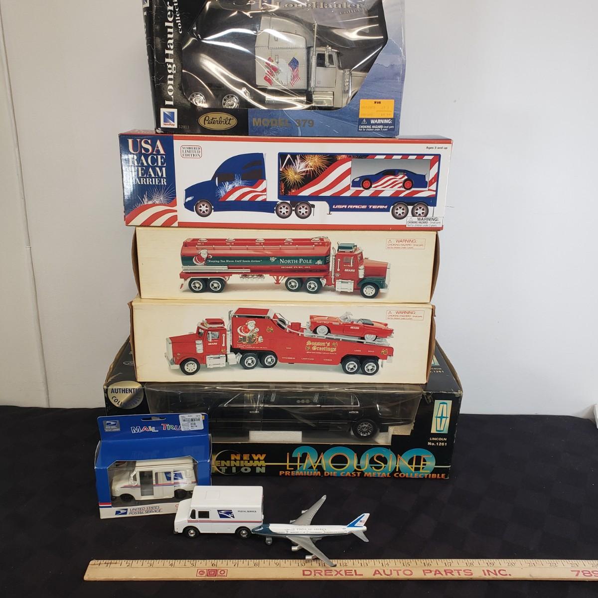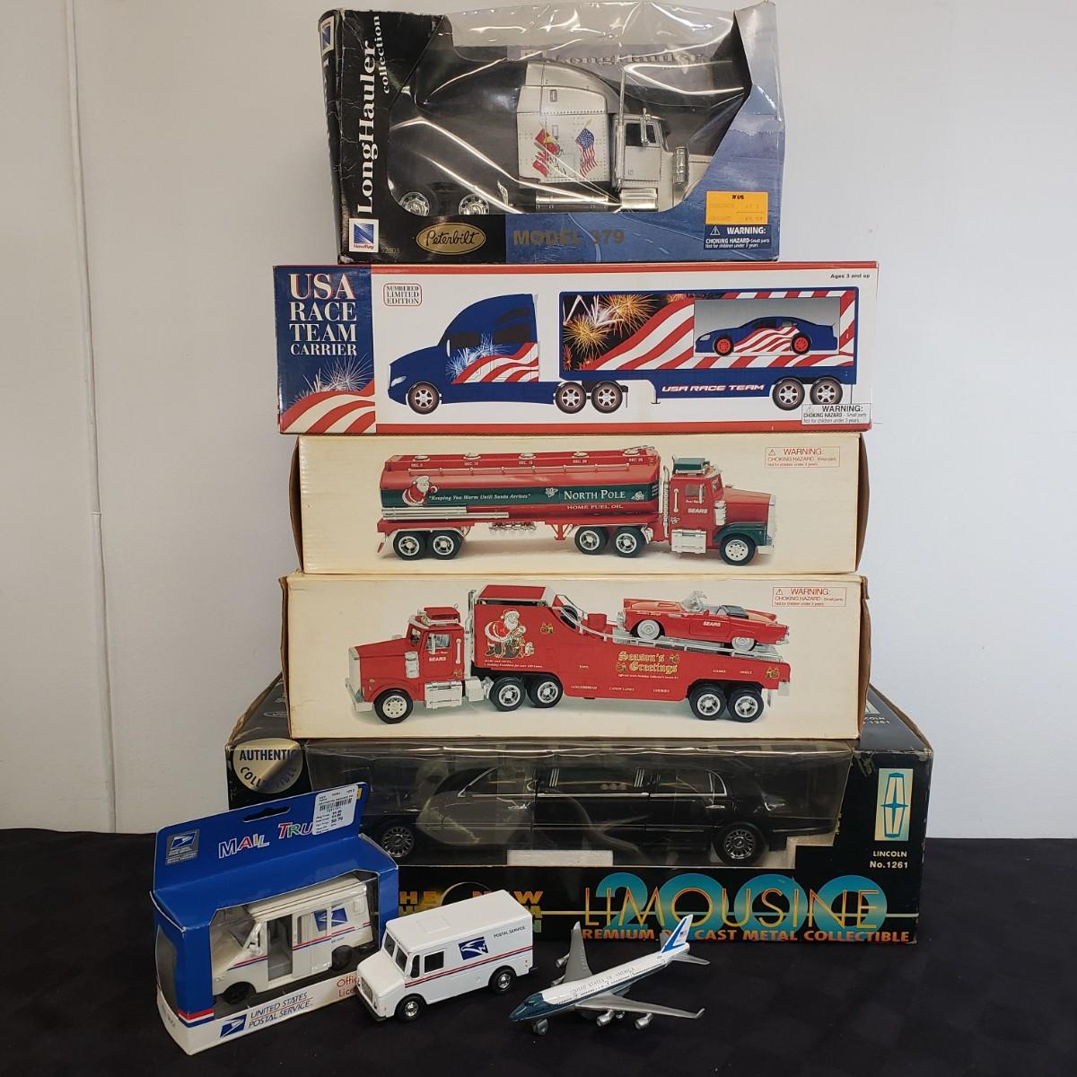 LOT 144: Taylor Trucks Christmas Sears Trucks, USA Racing Team, Peterbilt Long Hauler, 1:18 Scale Limousine & More