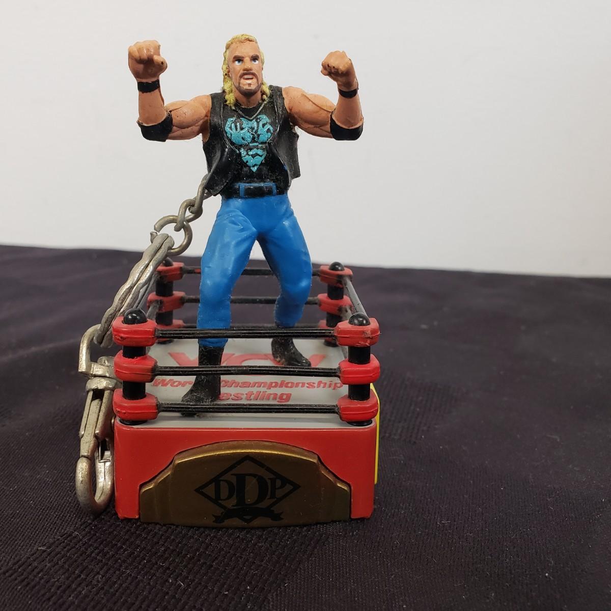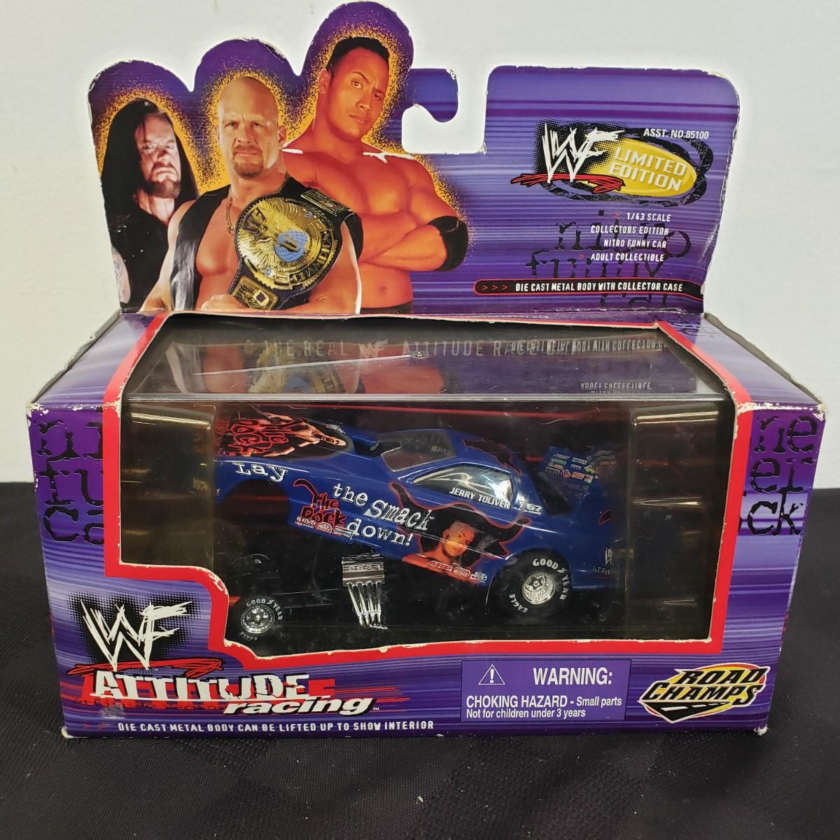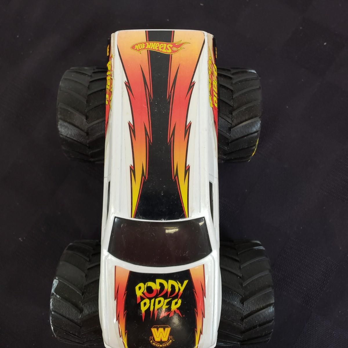 LOT 147: Vintage WWF Road Champs Cars, Roddy Piper Monster Truck, WCW Diamond Dallas Page Keychain & John Cena Action Figure