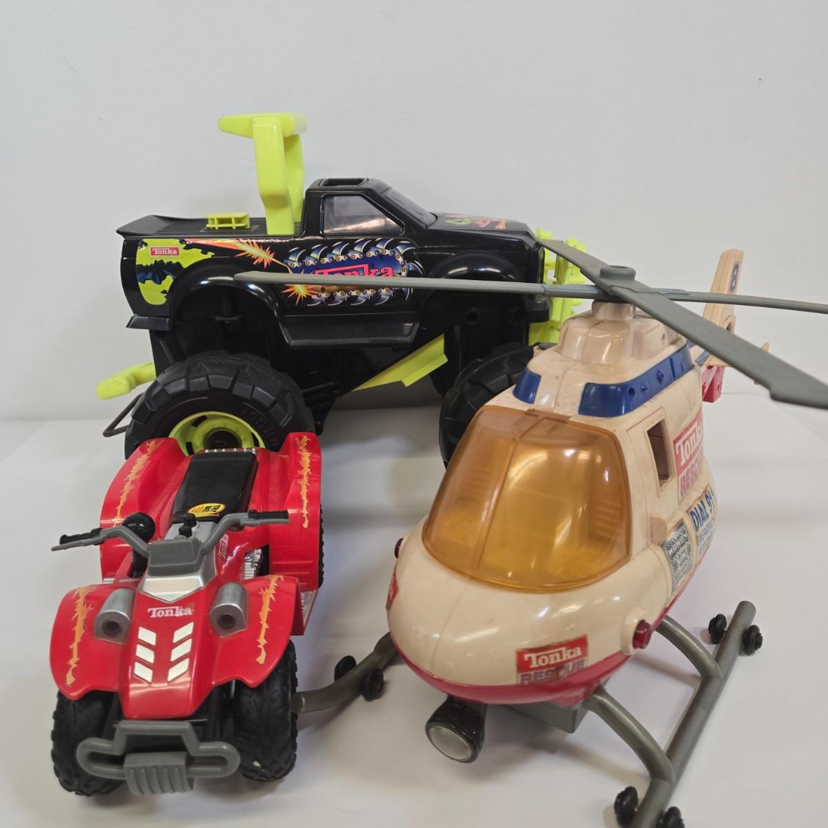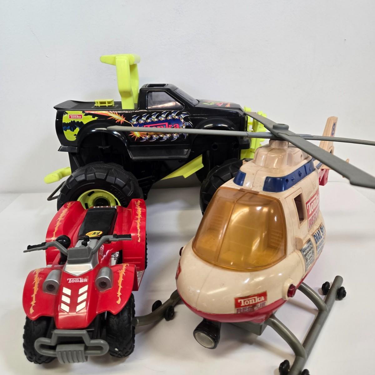 LOT 163: Tonka Monster Truck with Pull Start, Helicopter, and Four Wheeler