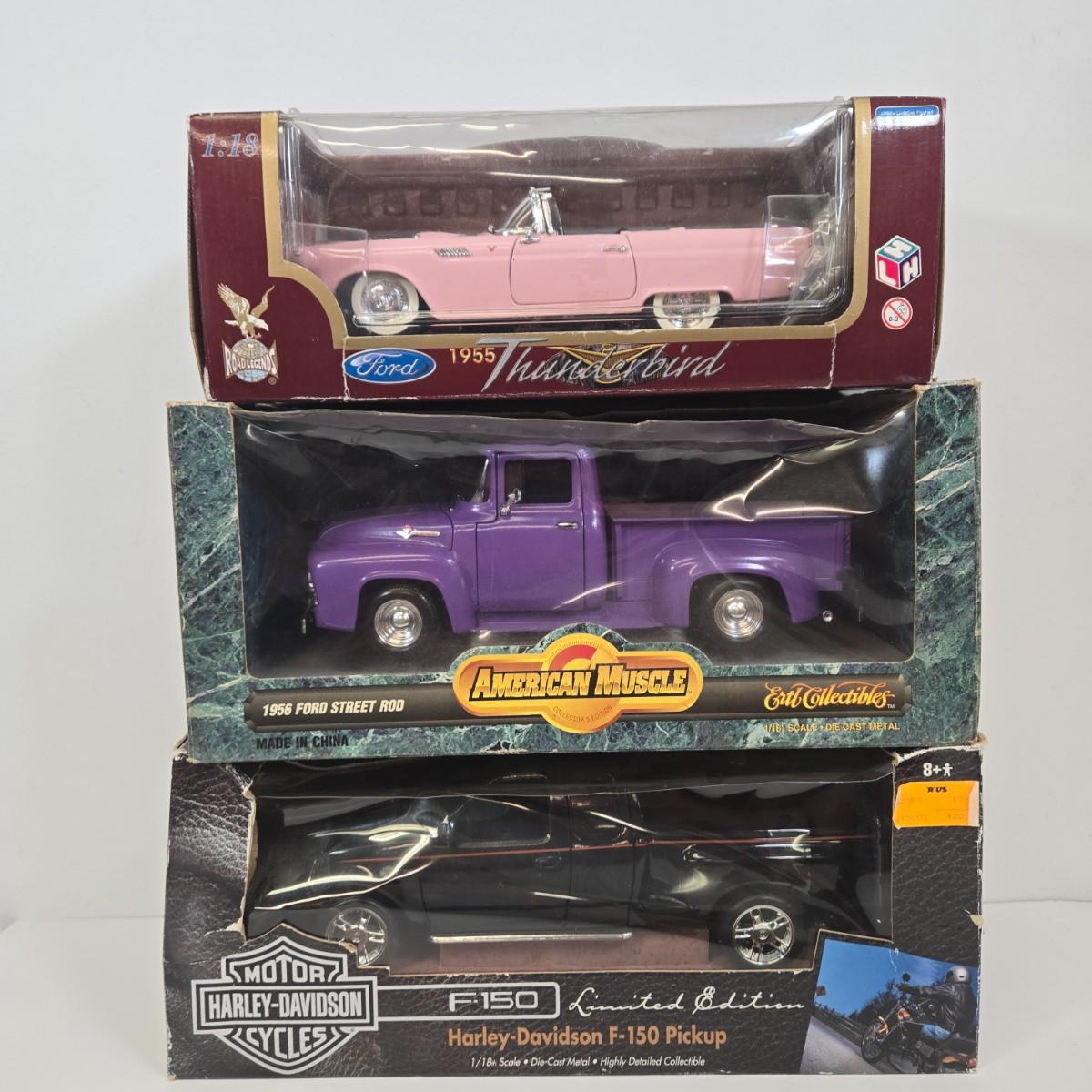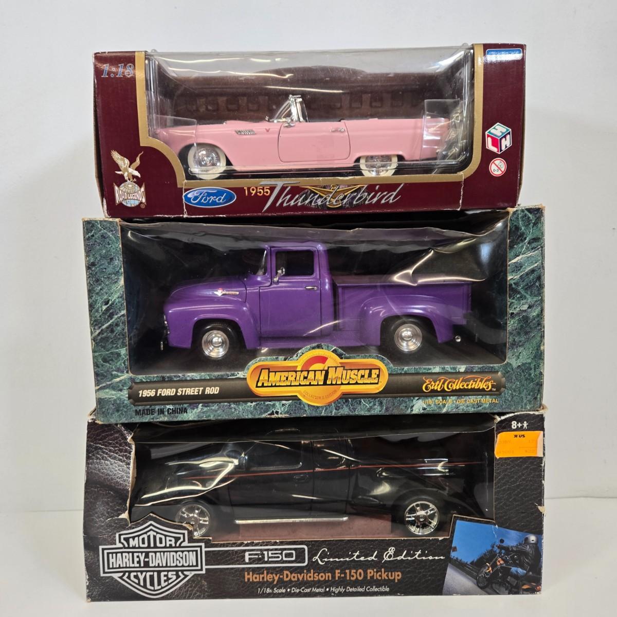 LOT 167: Harley-Davidson Limited Edition F-150 Pickup, American Muscle 1956 Ford Street Rod, and 1955 Pink Ford Thunderbird