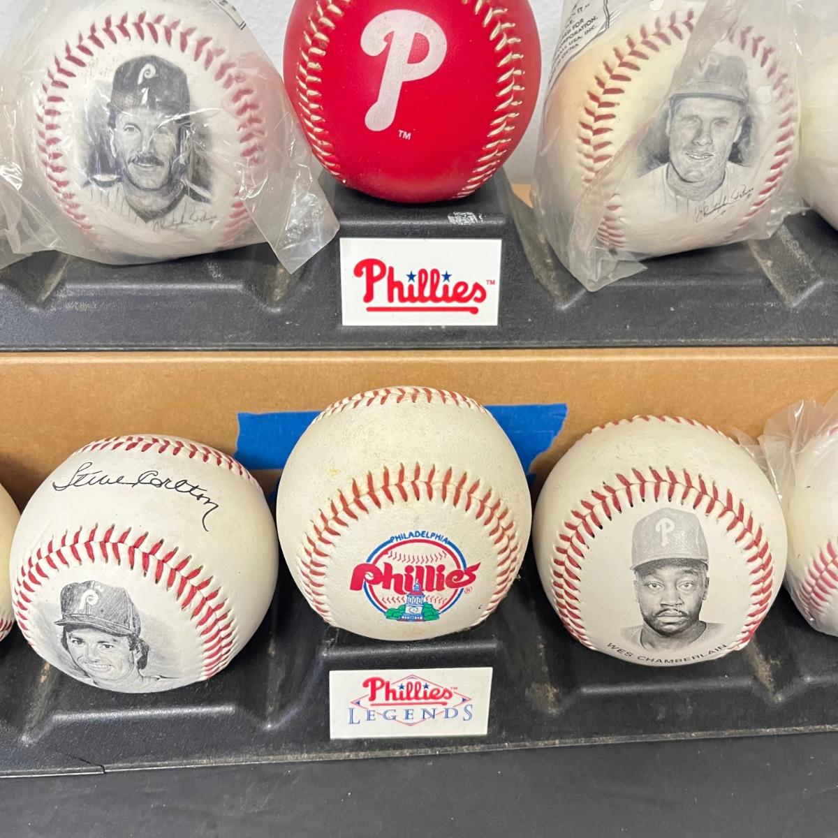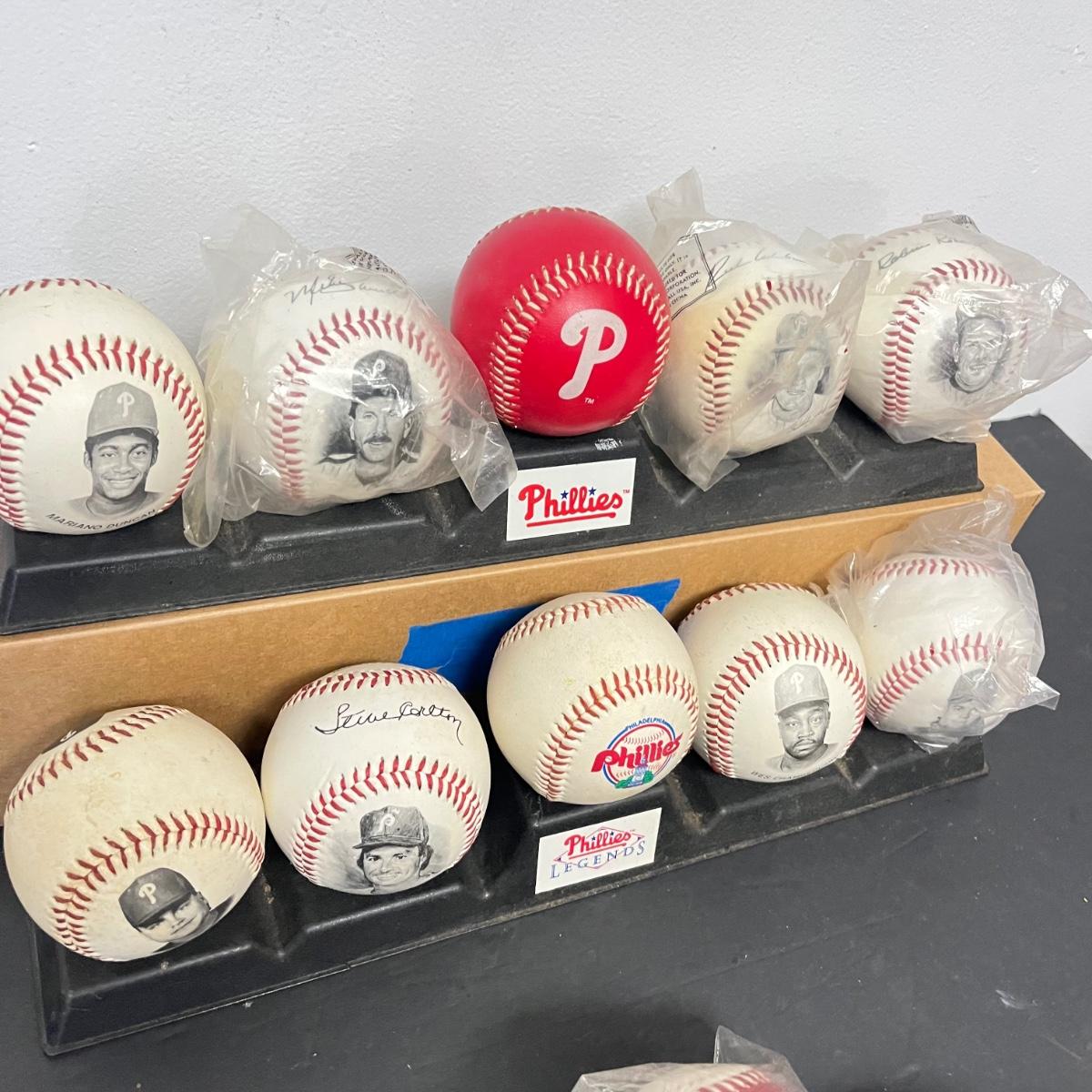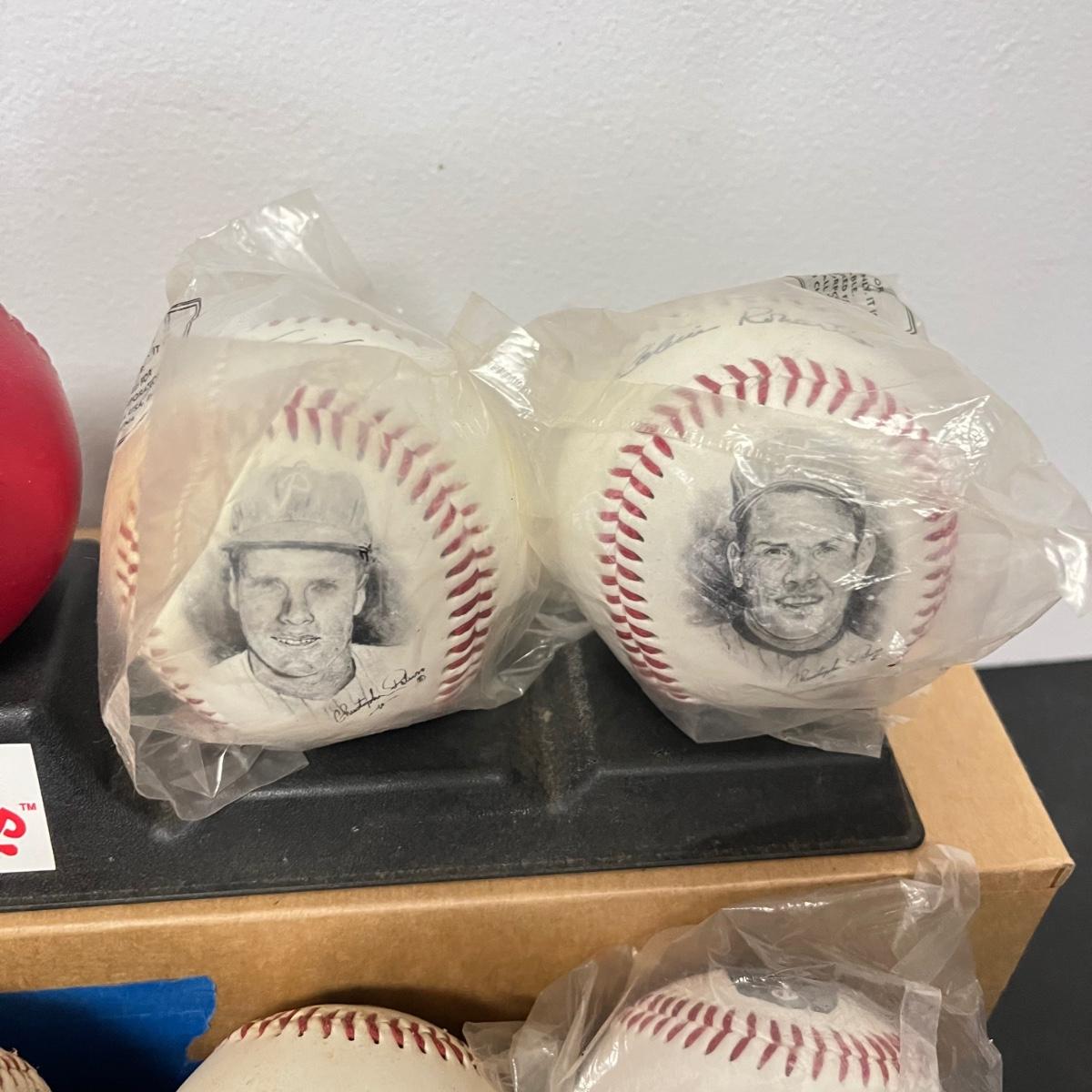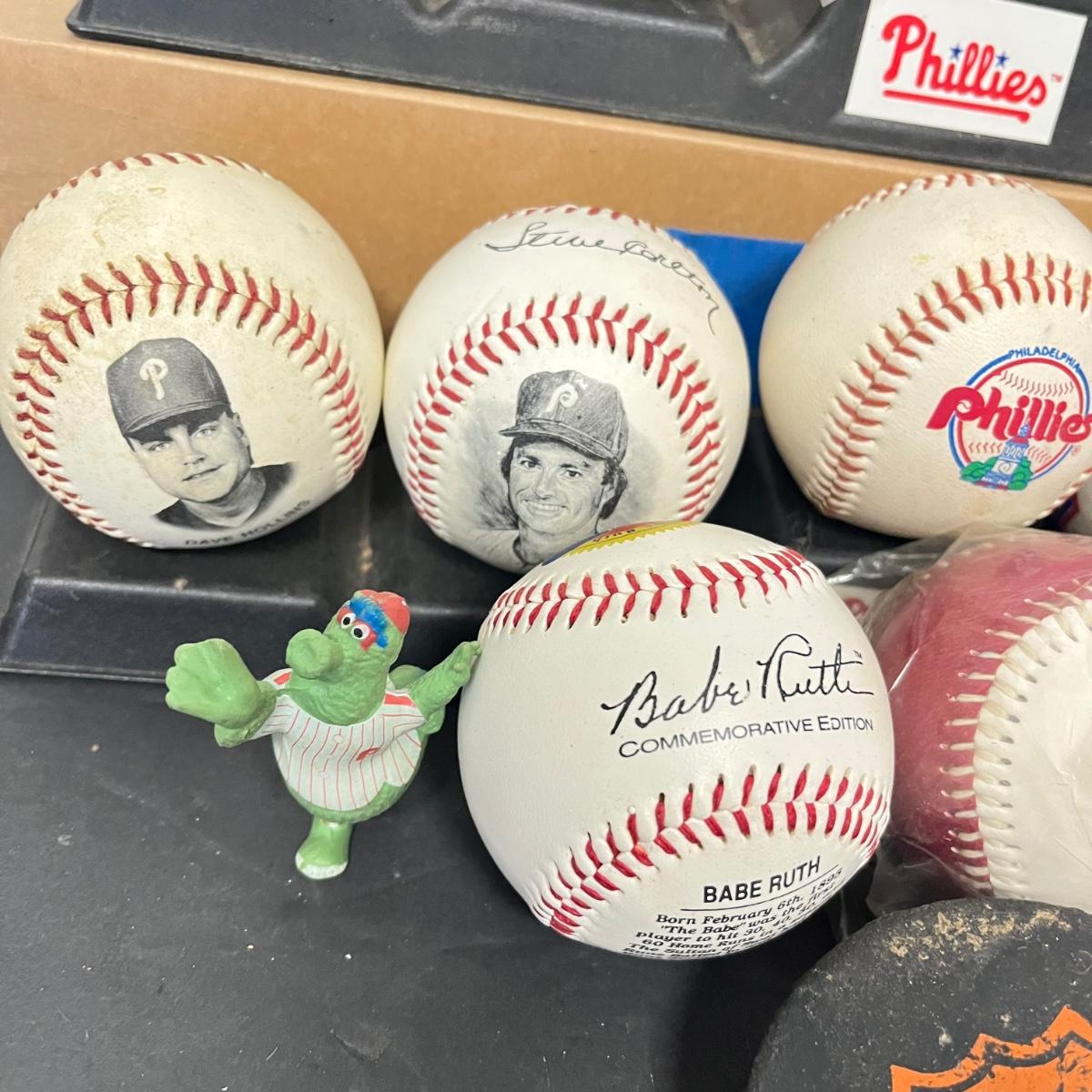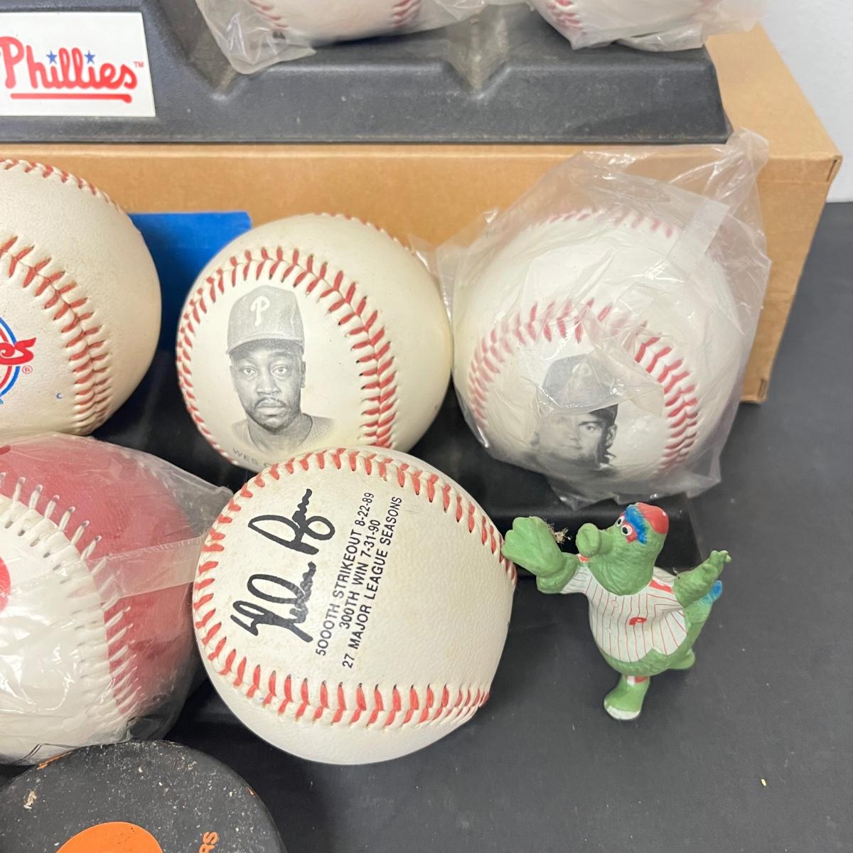 LOT 183: Philadelphia Sports Collection - Phillies Baseballs, Flyers Hockey Pucks
