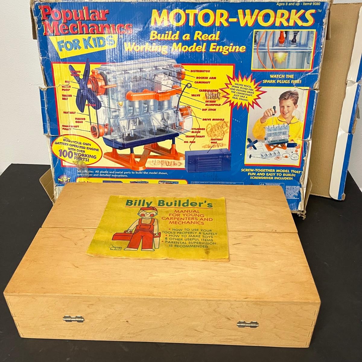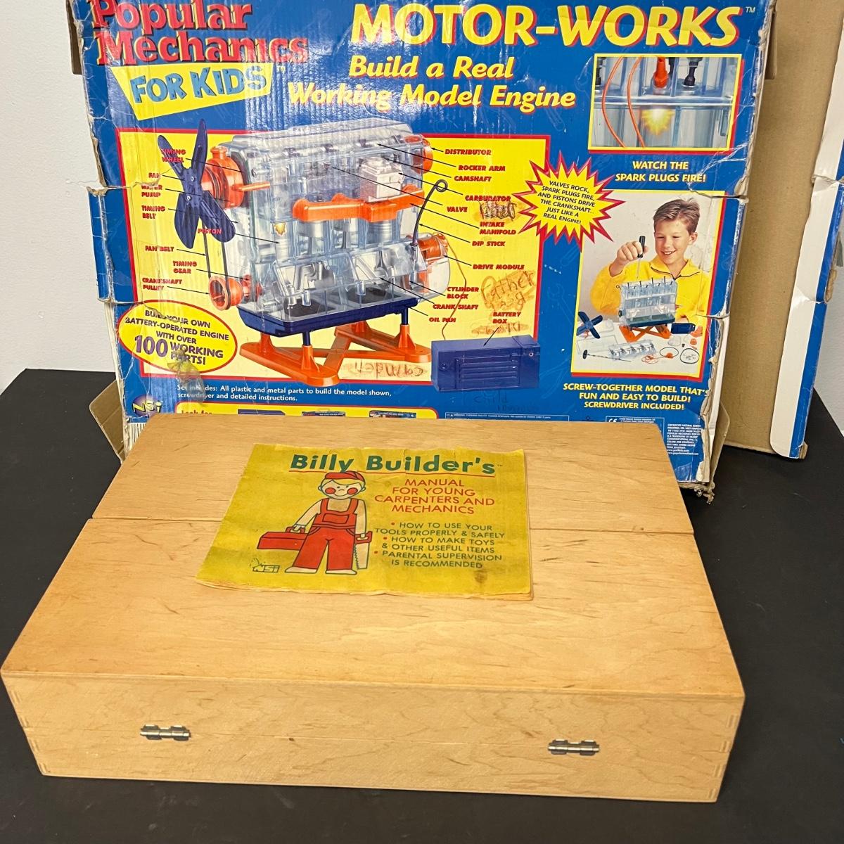 LOT 184: Billy Builder's Tool Box and Popular Mechanics Motor-Works Toy Sets