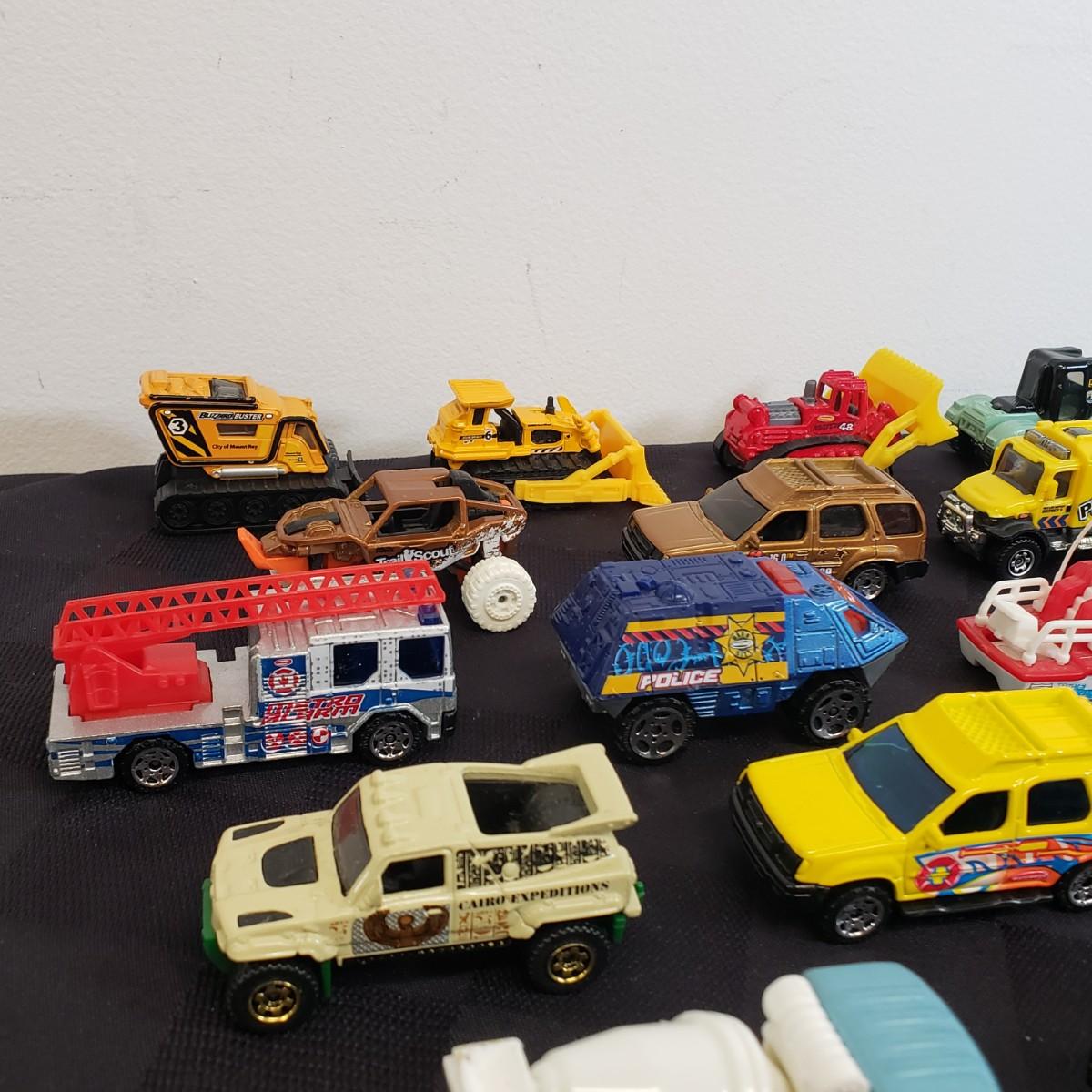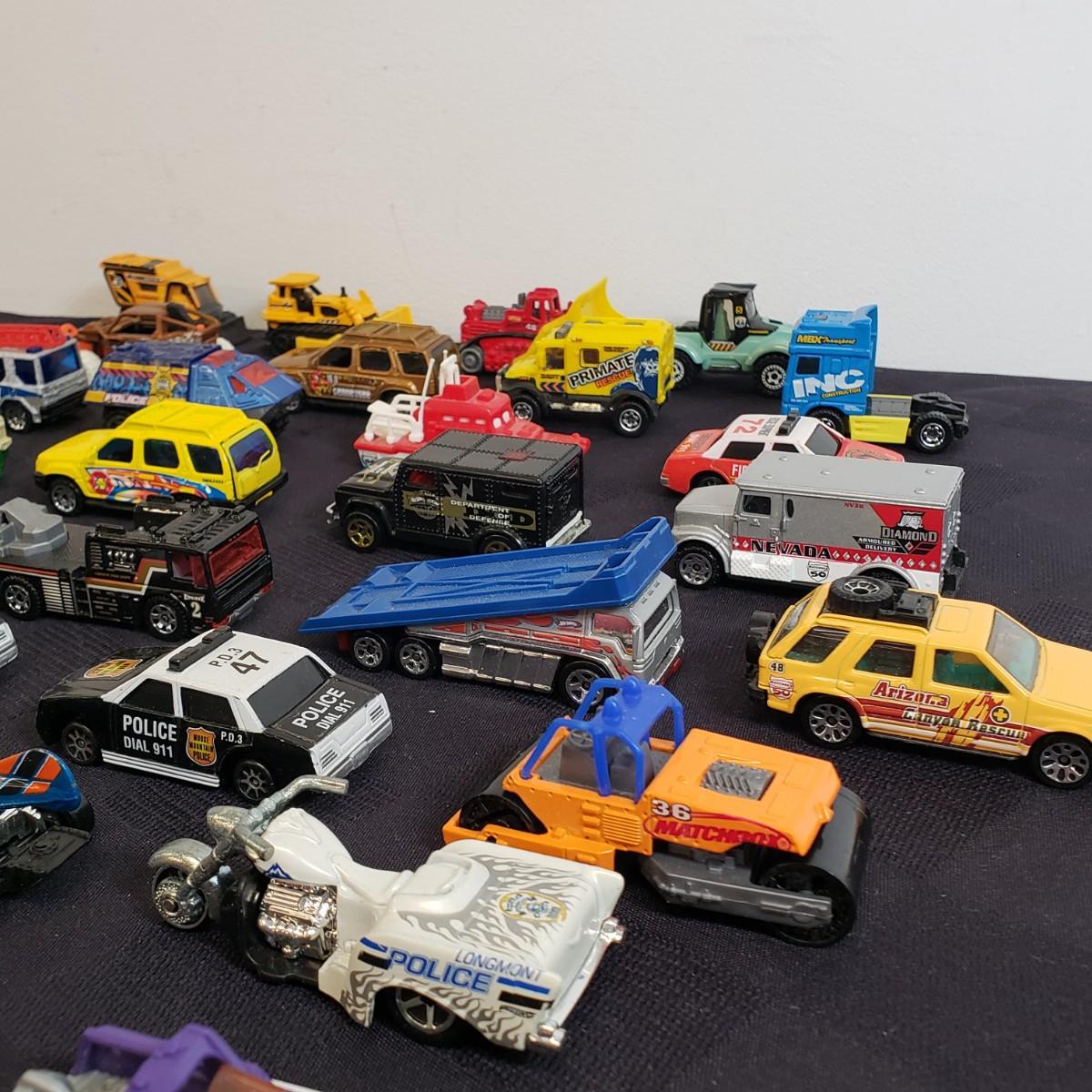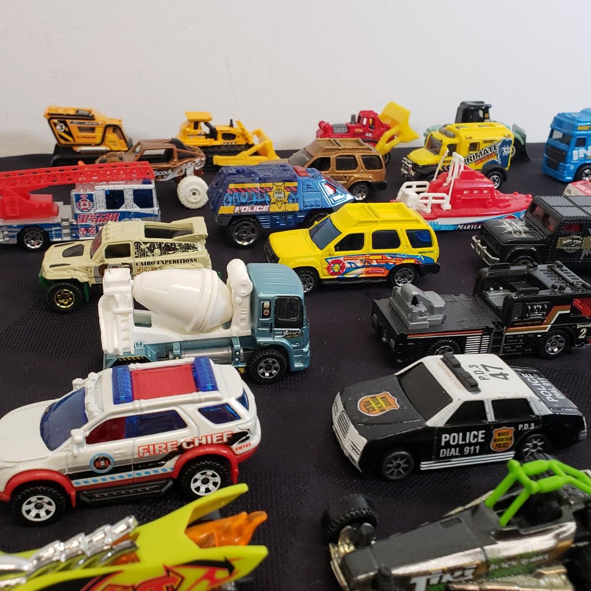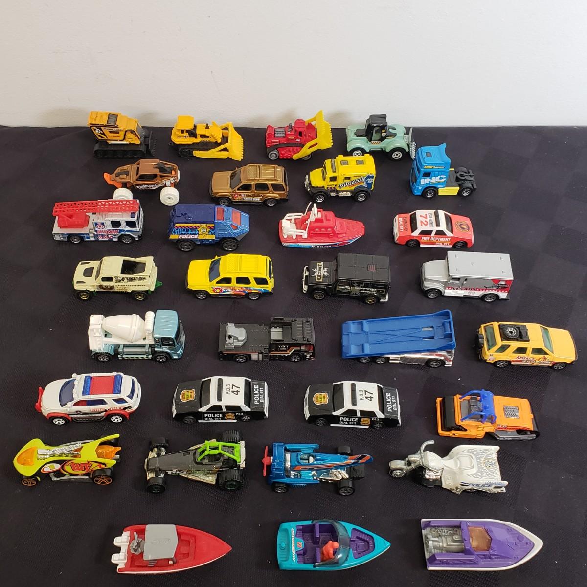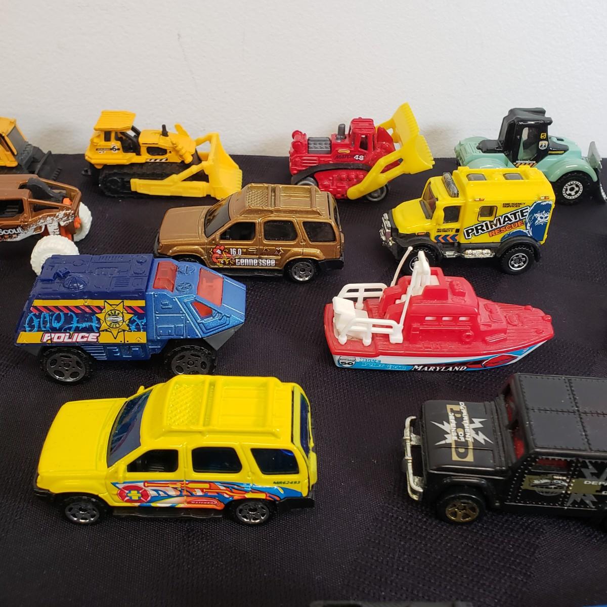 LOT 222: Assortment of Specialty Cars & Trucks with Boats-Matchbox, Hot Wheels & More