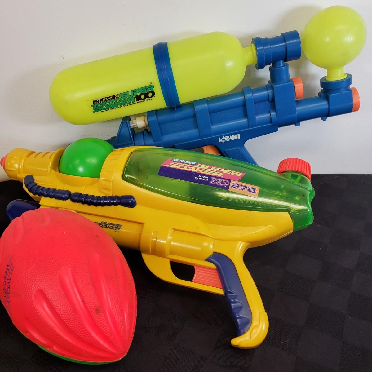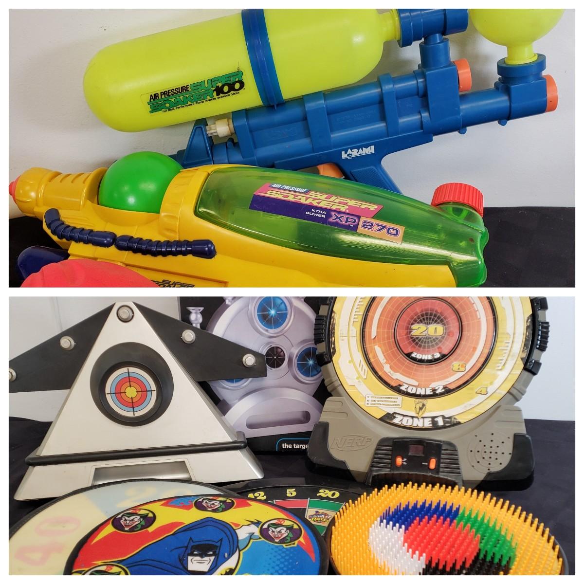 LOT 224: Vintage Larami Super Soakers with Assortment of Target Boards