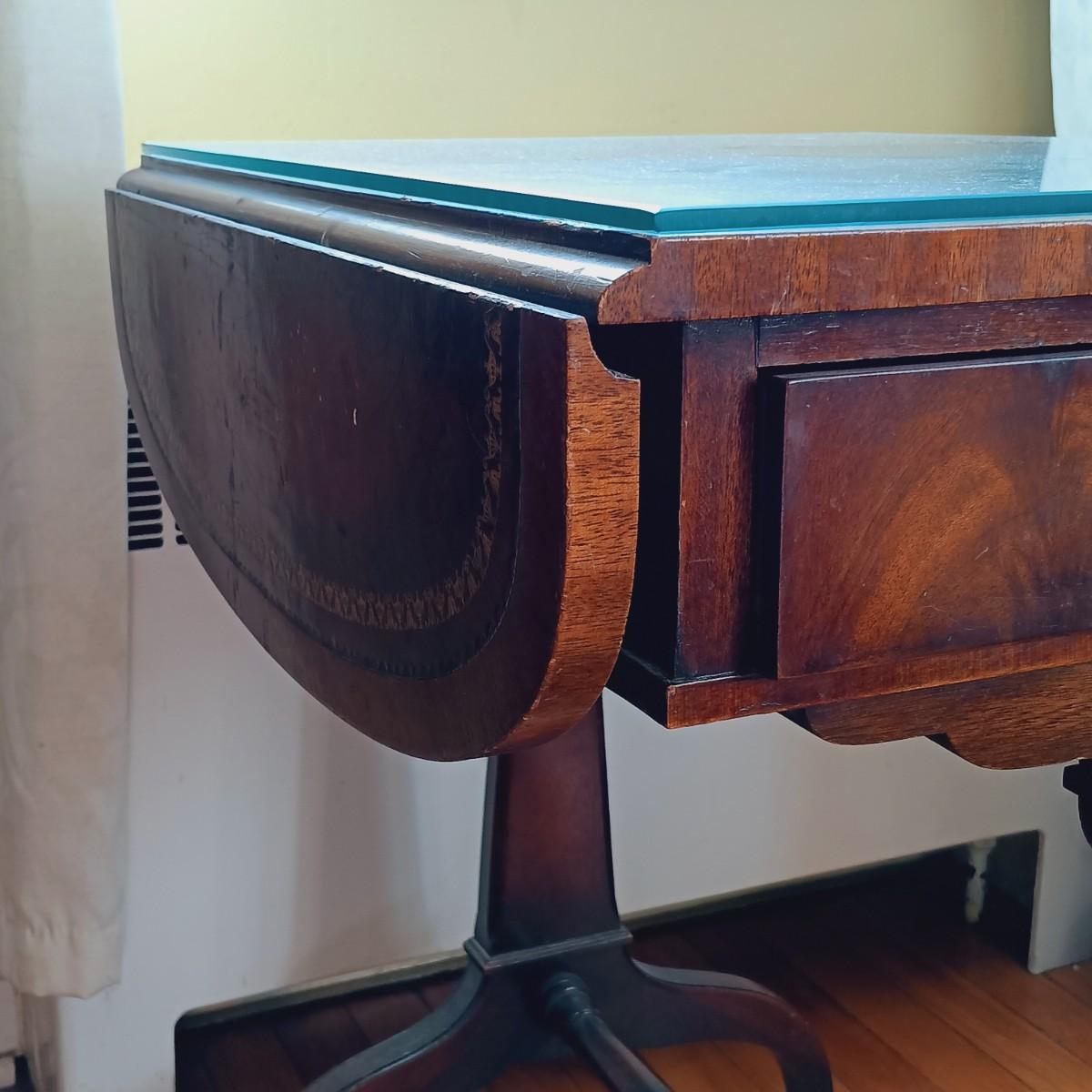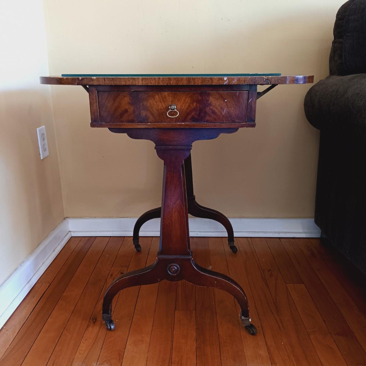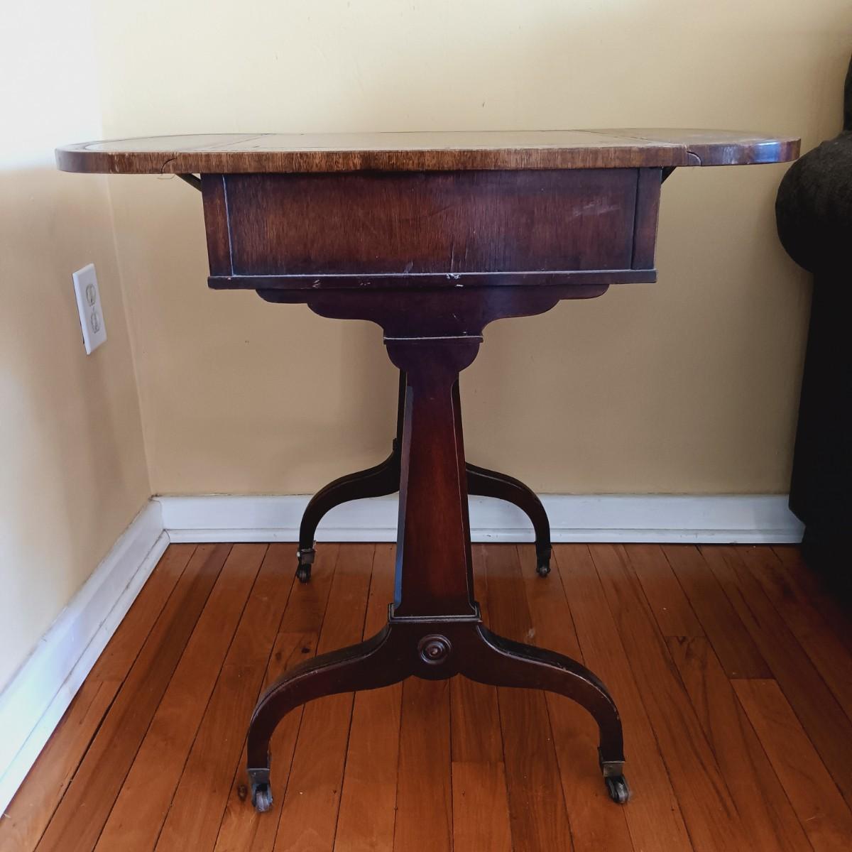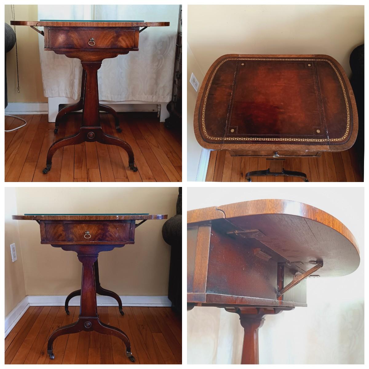 LOT 16: Set of (2) Regency Style Leather Top Drop Leaf Tables
