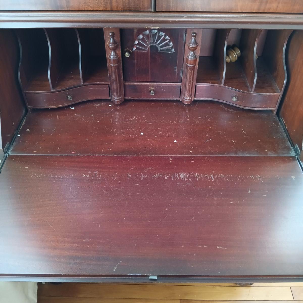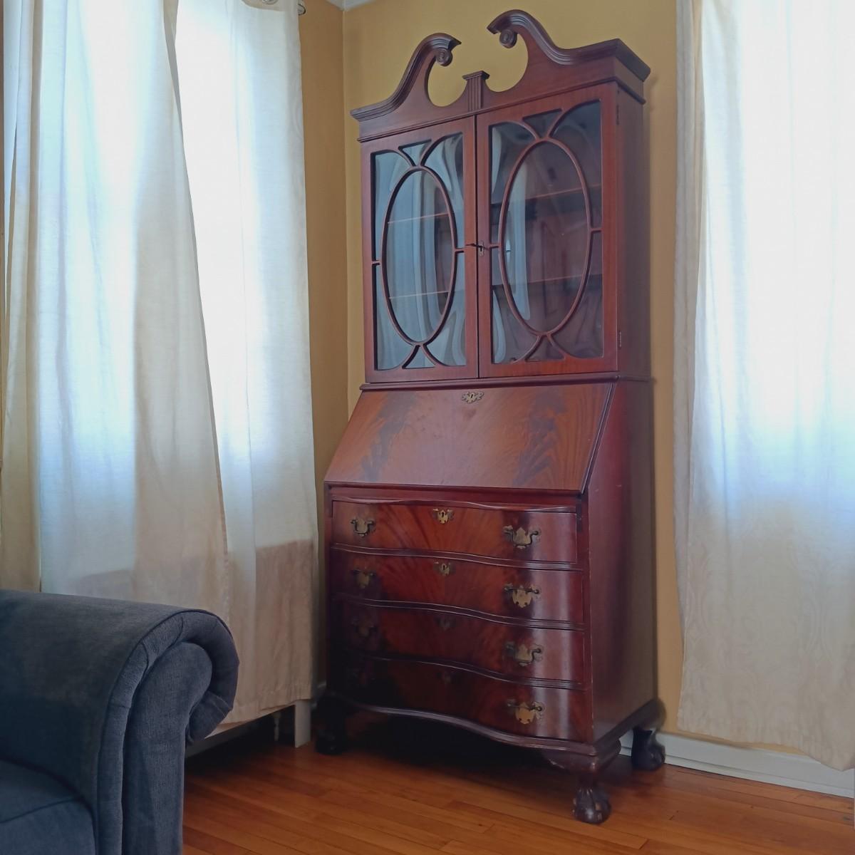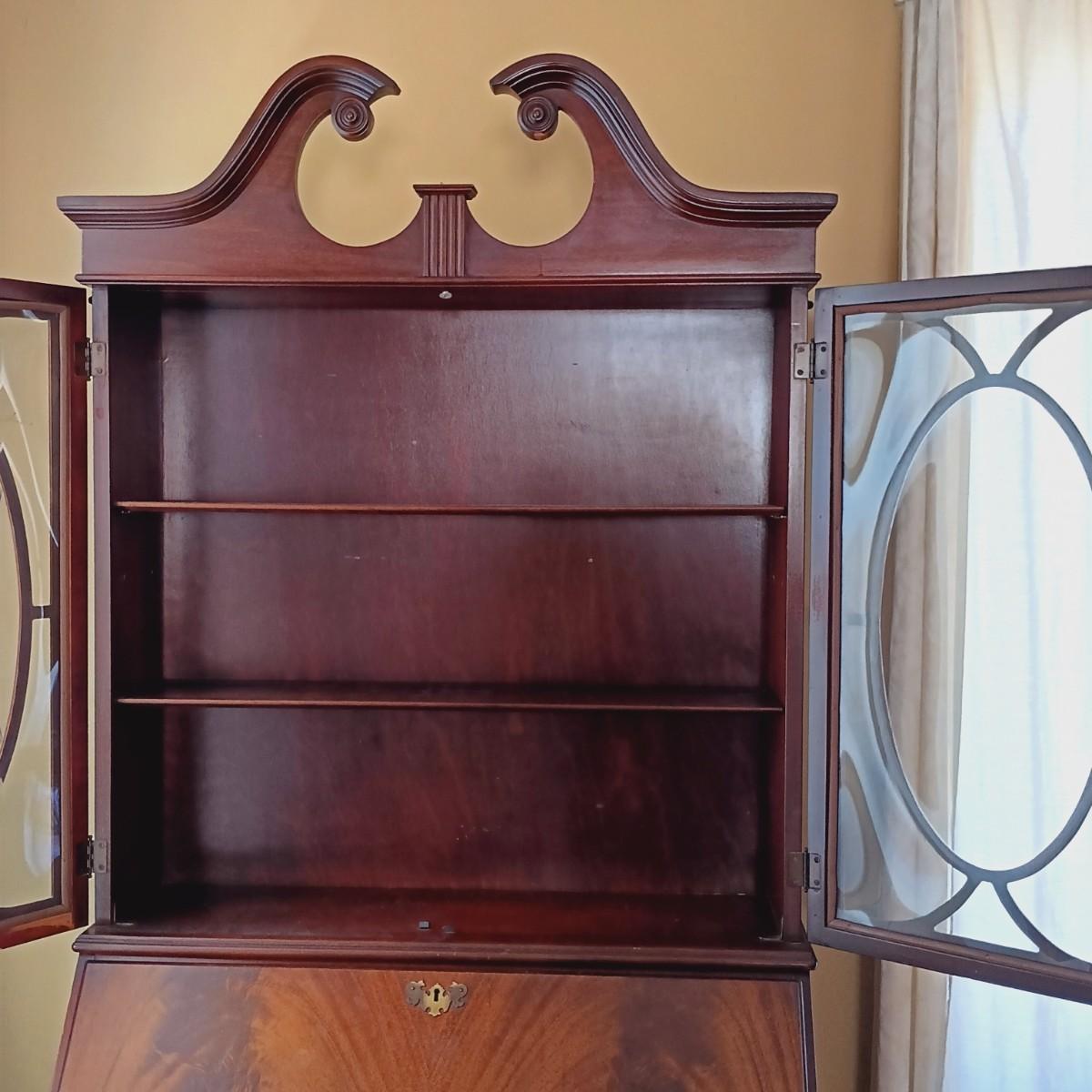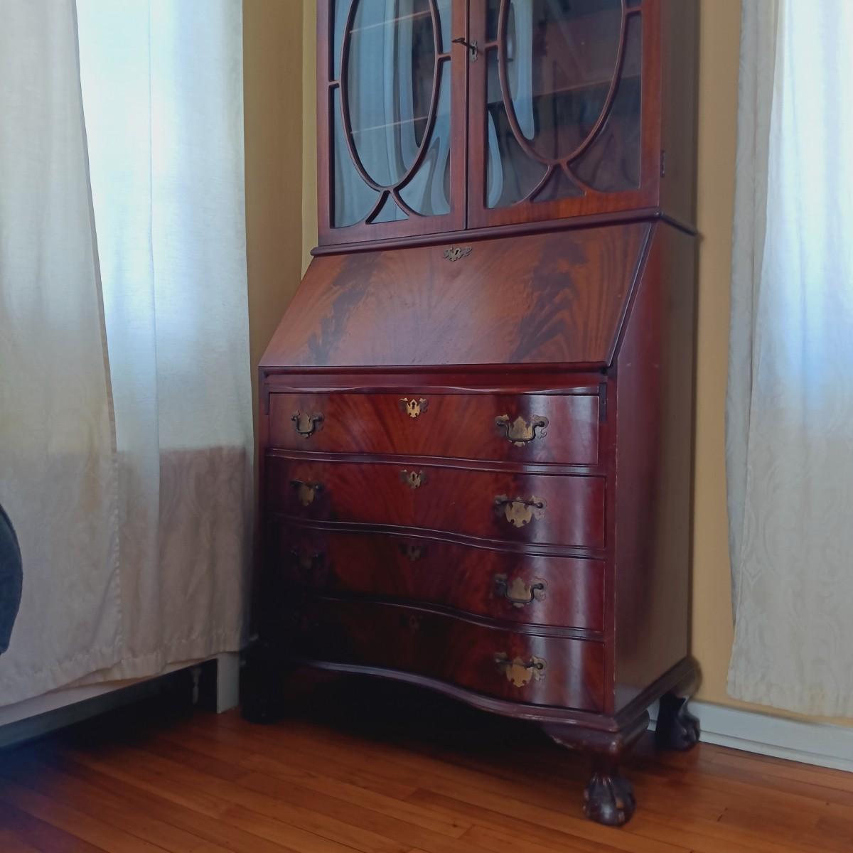LOT 20: Antique Secretary Desk with Bowed Glass Doors