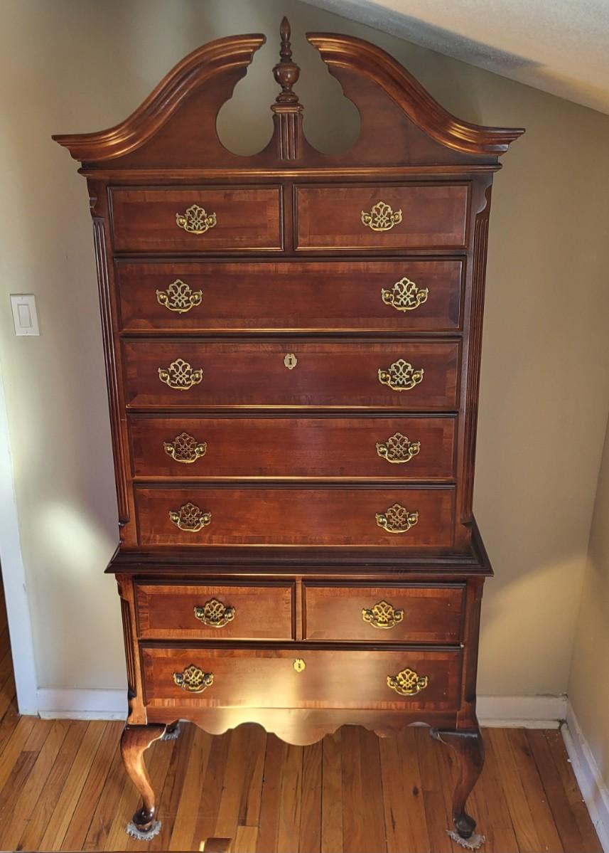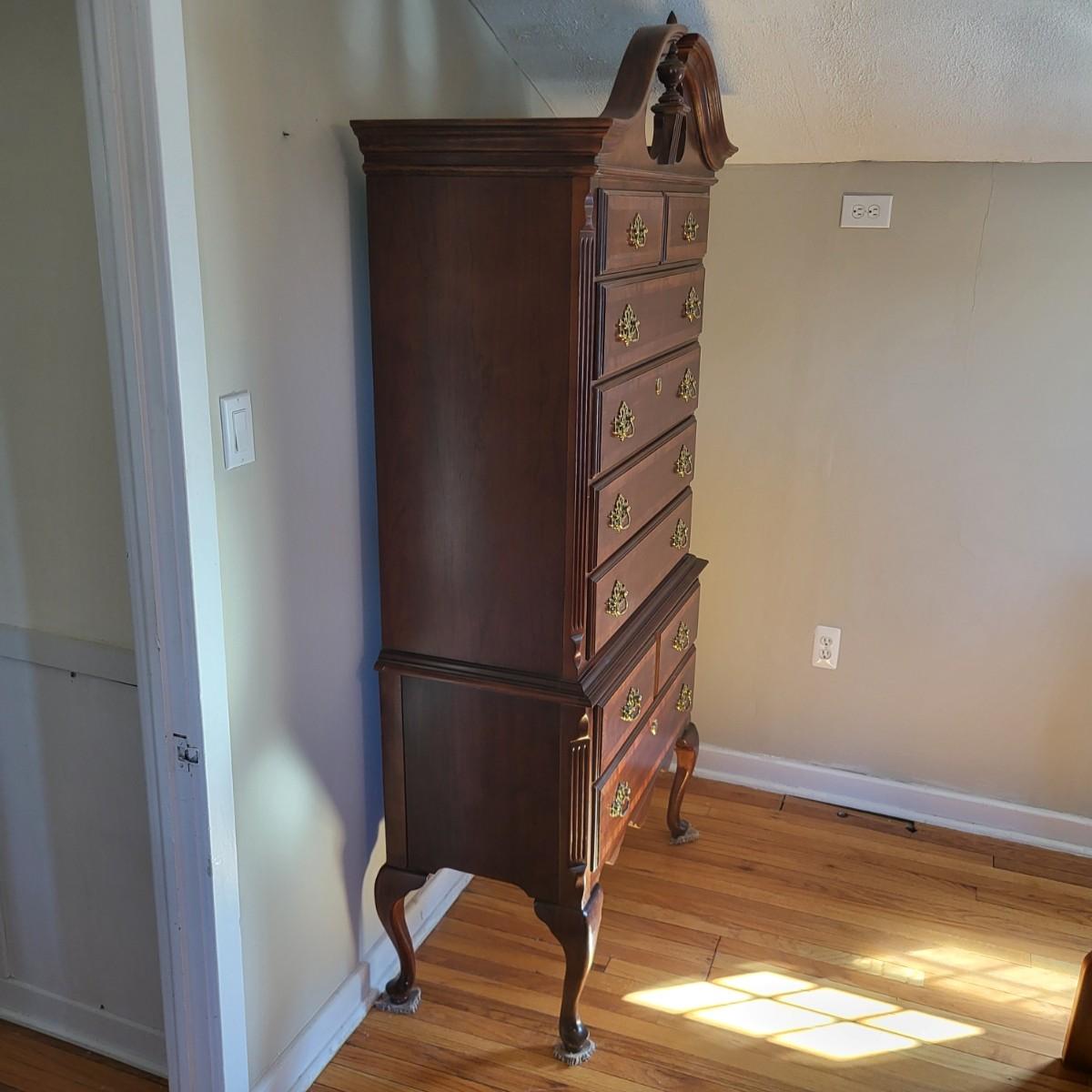 LOT 31: Vintage 9-Drawer Chippendale Style High Chest Dresser