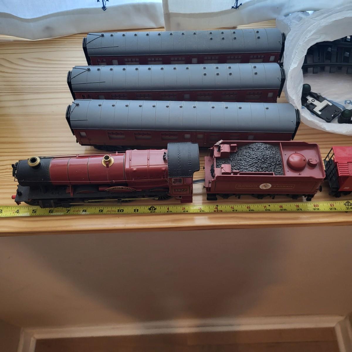 LOT 37: Hogwarts Express Locomotive Model Train, Luggage Cars and OO Scale Tracks, Model Set Hornby R3804 "Hogwarts Castle" 5972