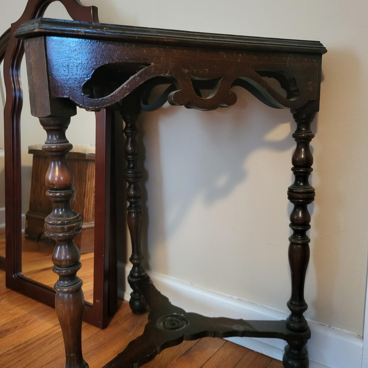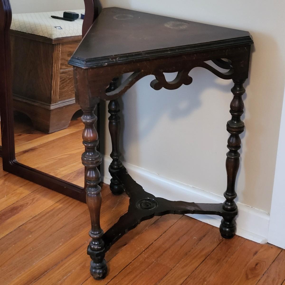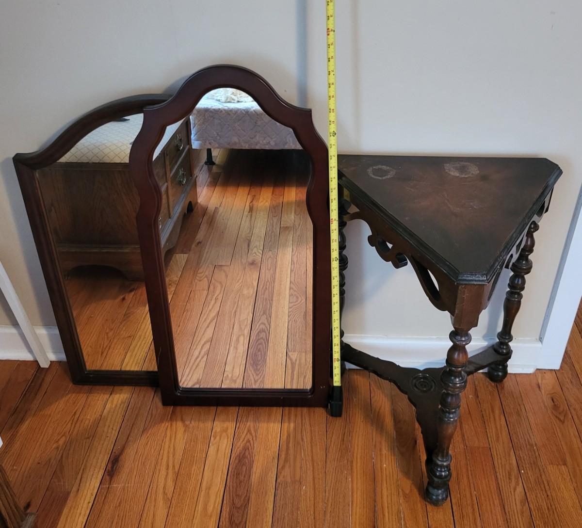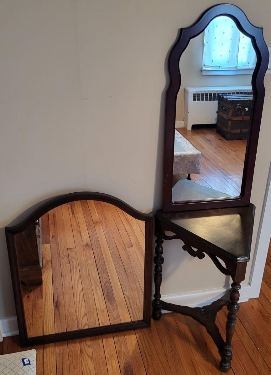 LOT 38: Vintage Wall Mirrors with Wooden 3-Leg Corner Table